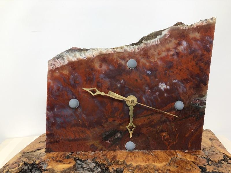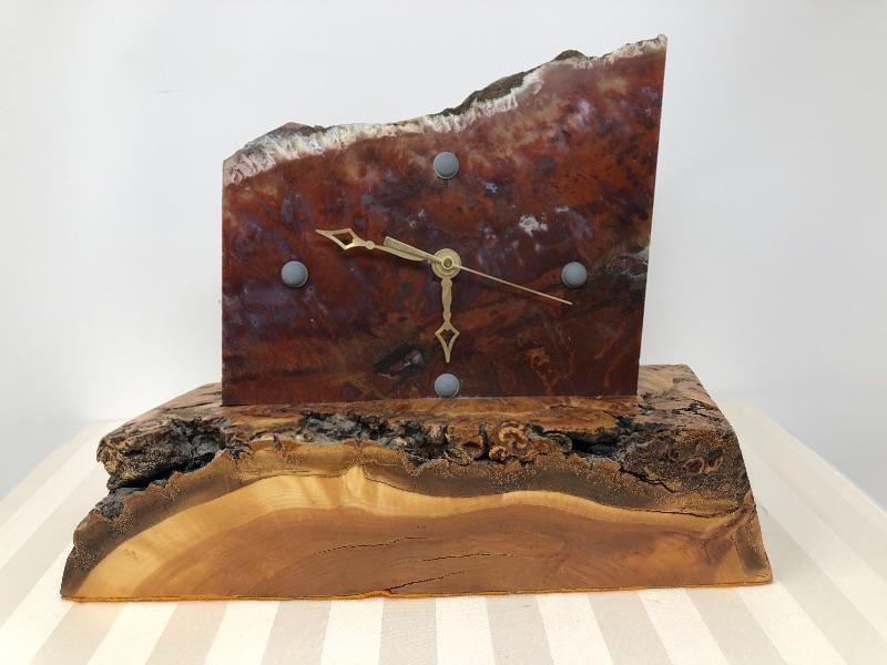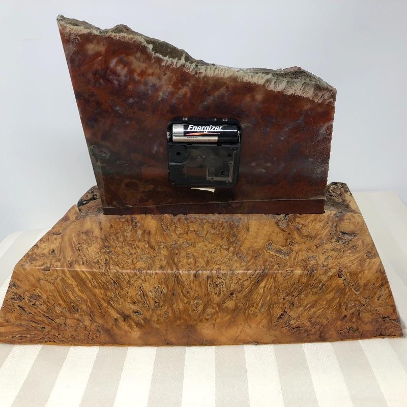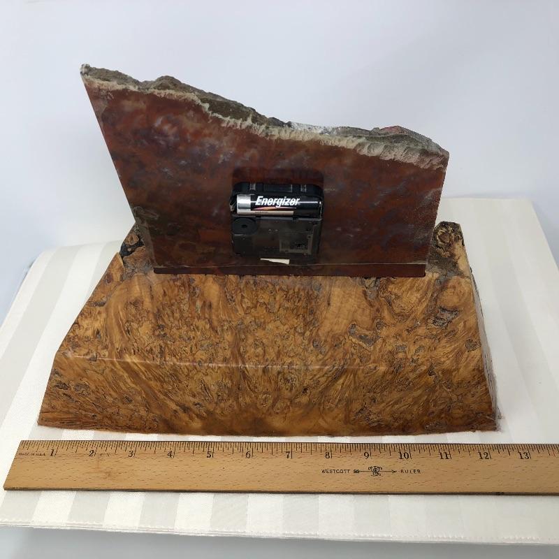 131: Hand Crafted Wood and Petrified Wood Piece Mantle Clock