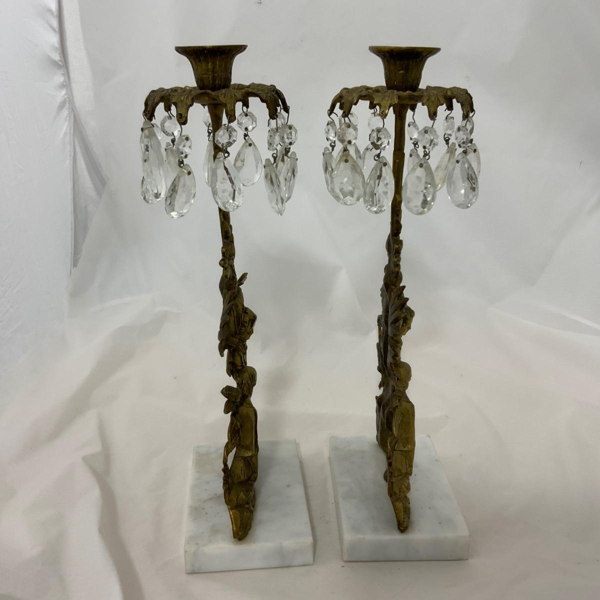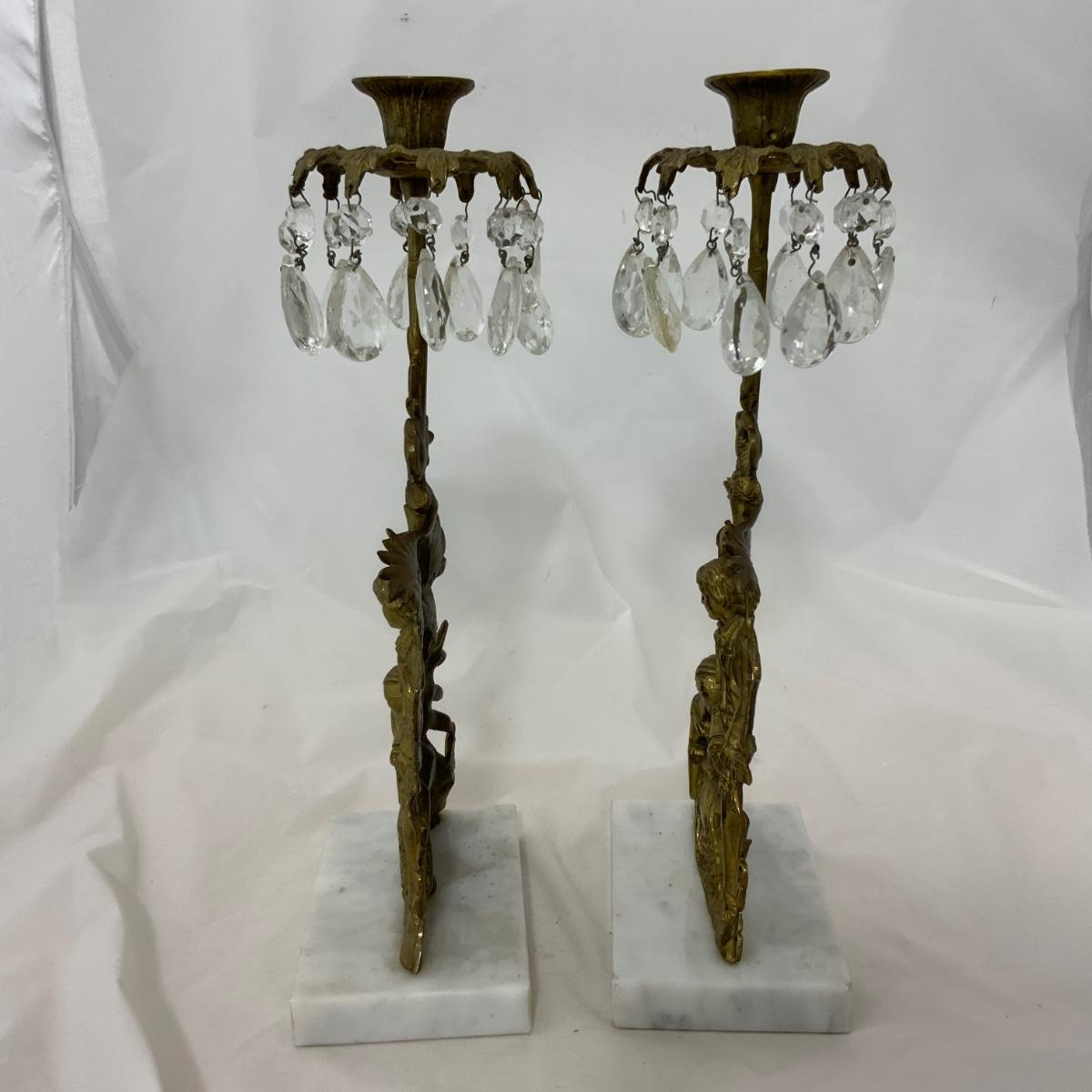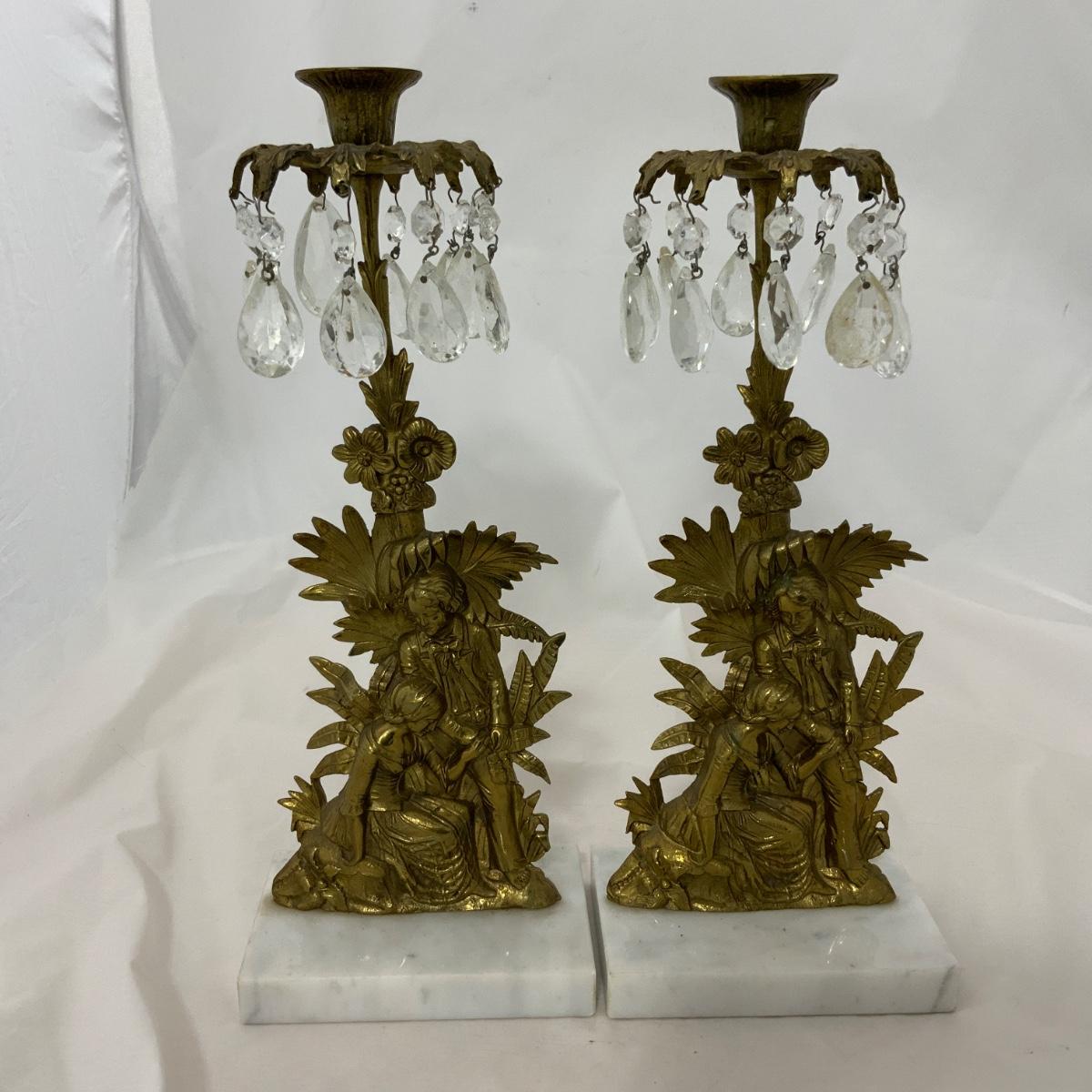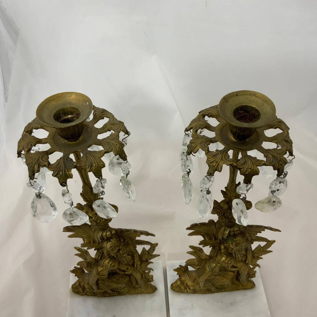 Beautiful Set of Brass and Marble Girandoles, or Candlesticks, as my grandmother used to call them. These are in impressive condition with matching crystals. These will certainly impress all your friends. Each measure 15 inches tall. Please see photos for details and condition. ::: Shipping is available on this lot. If you require shipping you must let us know at the close of the auction. We will coordinate with you after the item has been won. Shipping fees will include insurance up to or exceeding the value of all items being mailed. If you have any questions regarding this lot please contact the auctioneer either via this website, by direct email or by phone. PICK UP TIMES and other important information can be found in the TERMS and DESCRIPTION of the auction. Please take a look for pertinent information. Thanks!