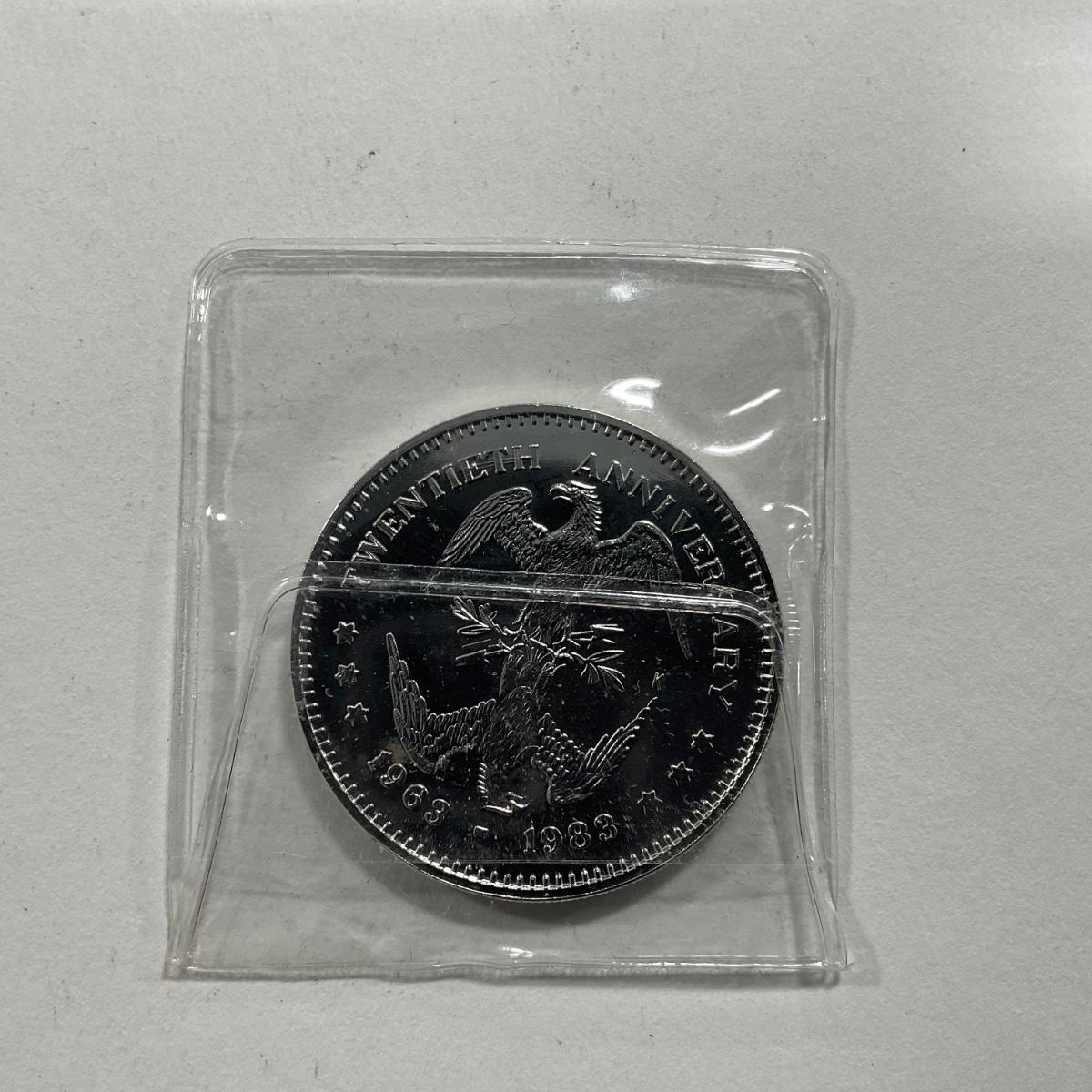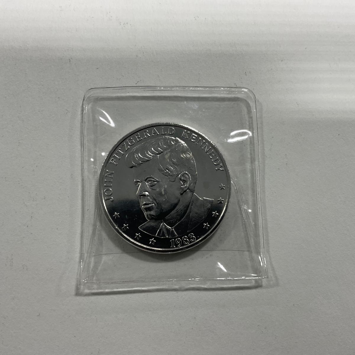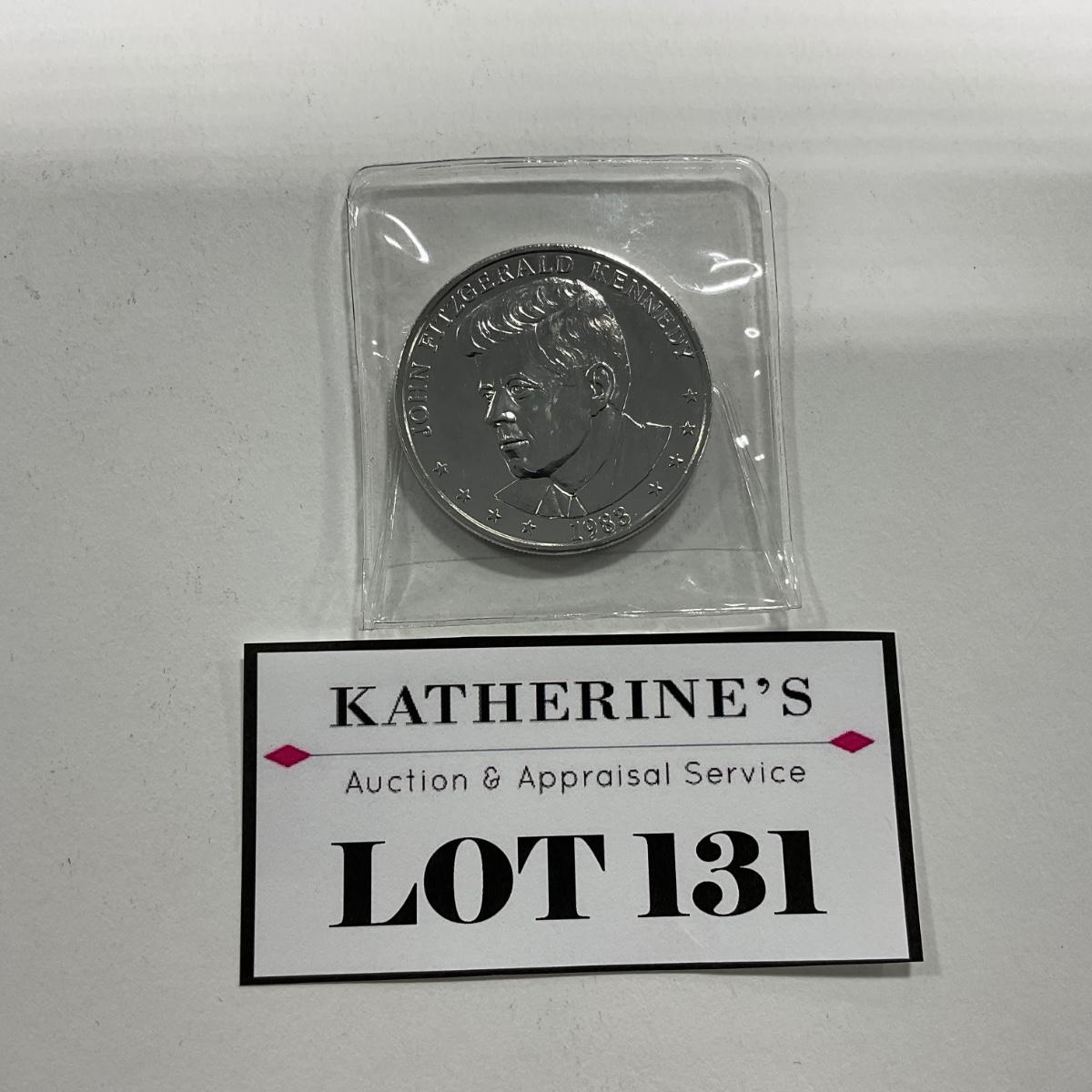 One Kennedy 20th Anniversary Commemorative Double Eagle Reverse coin. Please see photos for details and condition. ::: Shipping is available on this lot. If you require shipping you must let us know at the close of the auction. We will coordinate with you after the item has been won. Shipping fees will include insurance up to or exceeding the value of all items being mailed. If you have any questions regarding this lot please contact the auctioneer either via this website, by direct email or by phone. PICK UP TIMES and other important information can be found in the TERMS and DESCRIPTION of the auction. Please take a look for pertinent information. Thanks!