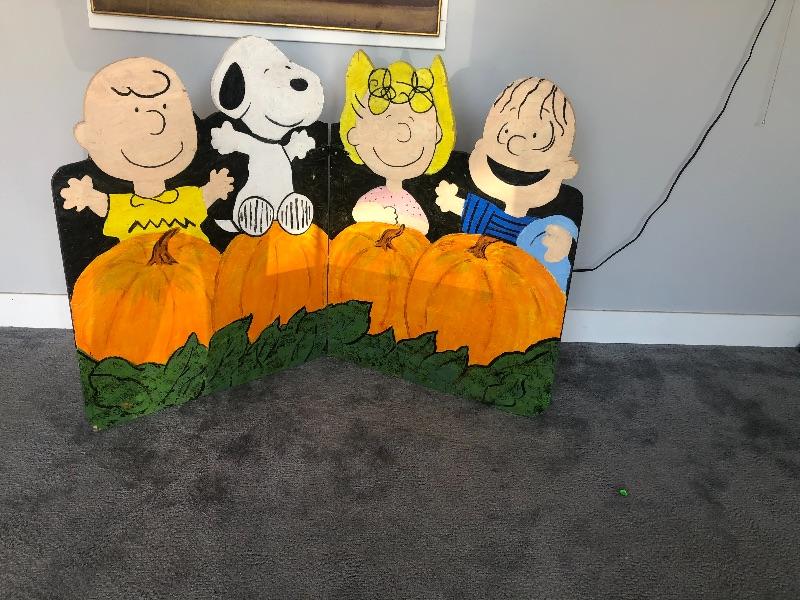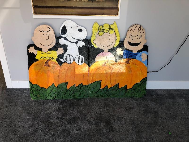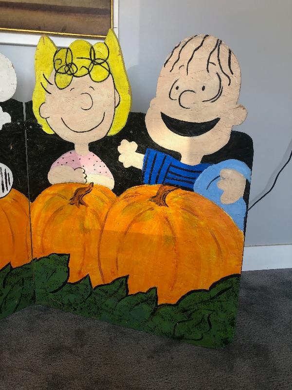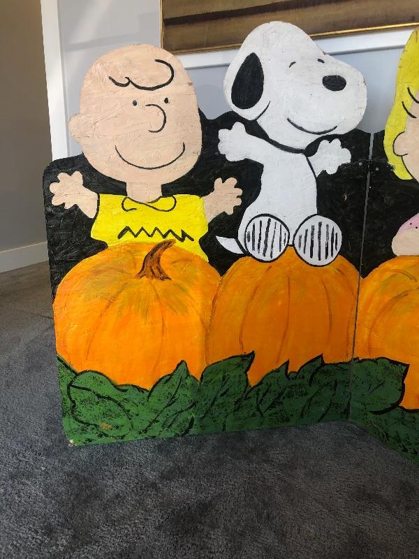 Measures 3' x 5' features the Peanuts gang in the pumpkin patch foldable with hinge. Handmade vintage used condition.