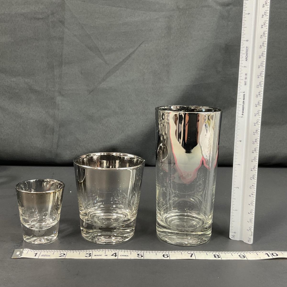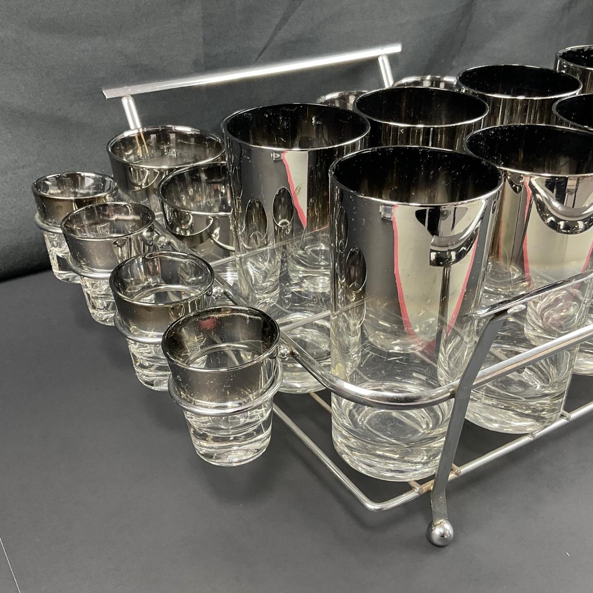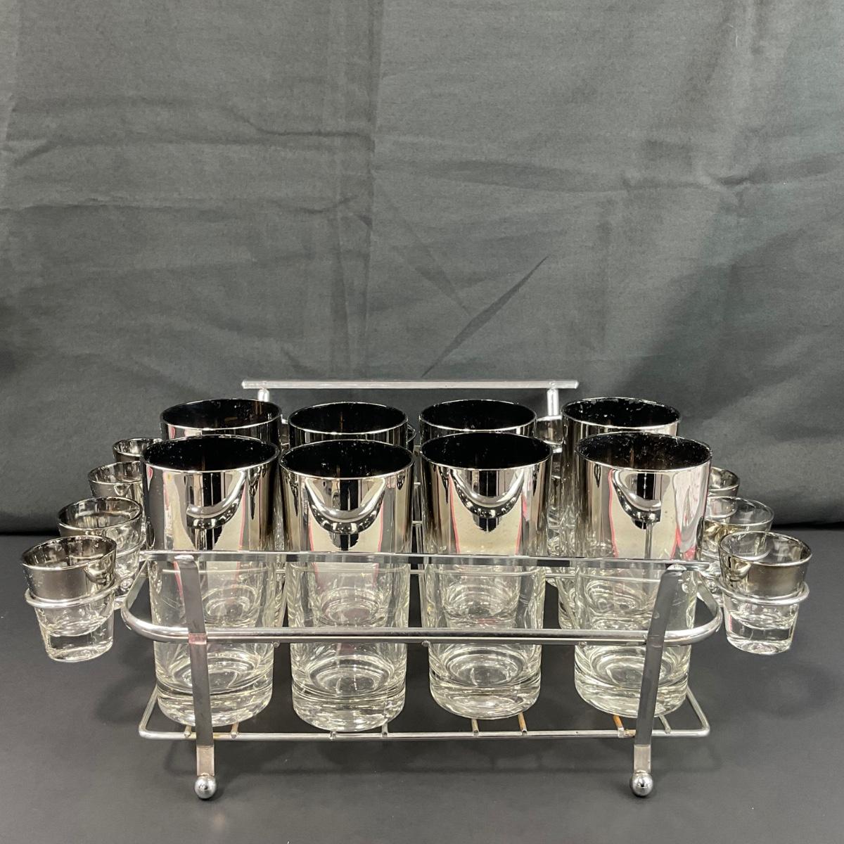 -131- MID CENTURY | 1950’s Mercury Fade Glasses & Chrome Caddy
