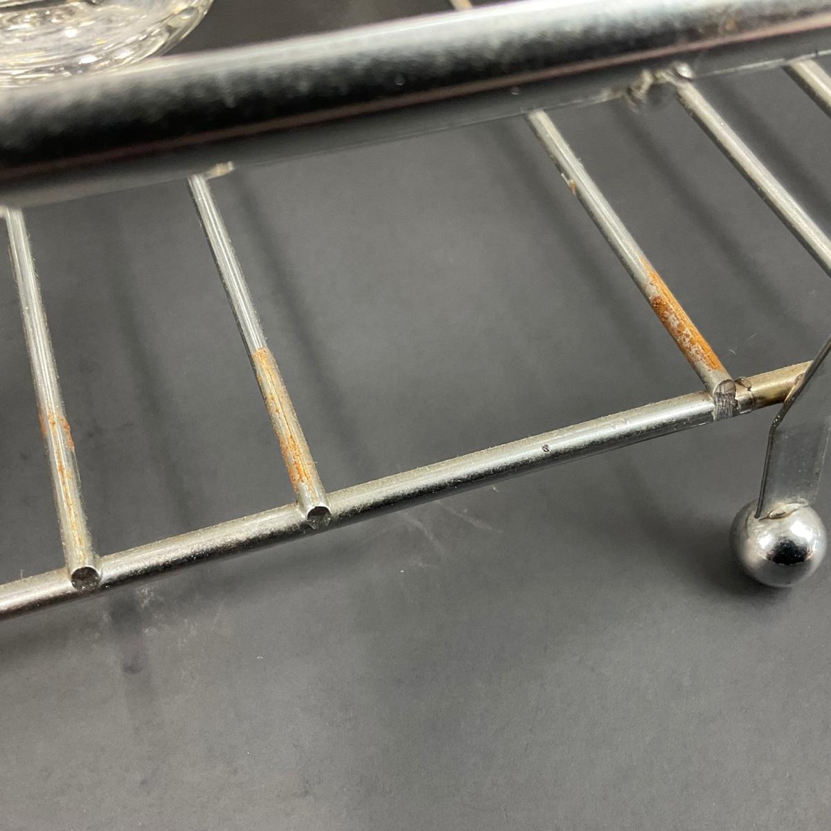 One vintage 1950’s mercury fade glasses and chrome caddy. This piece does have some scuffs, scratches, marks, or slight damage, but otherwise appears to be in great shape. Please see photos for details and condition. Any condition statement is given as a courtesy to a client, is an opinion, and should not be treated as a statement of fact. Reference to condition written, oral or within a condition report shall not be regarded as a full account of condition and may not include all defects, alterations, or restorations. Absence of a condition report does not imply a lot is flawless or lacking imperfections or damage. Katherine’s Auction & Appraisal Service shall have no responsibility for any error or omission. Returns shall not be accepted on the basis of condition. ::: Shipping is available on this lot. If you require shipping you must let us know at the close of the auction. We will coordinate with you after the item has been won. Shipping fees will include insurance up to or exceeding the value of all items being mailed. If you have any questions regarding this lot please contact the auctioneer either via this website, by direct email or by phone. PICK UP TIMES and other important information can be found in the TERMS and DESCRIPTION of the auction. Please take a look for pertinent information. Thanks!