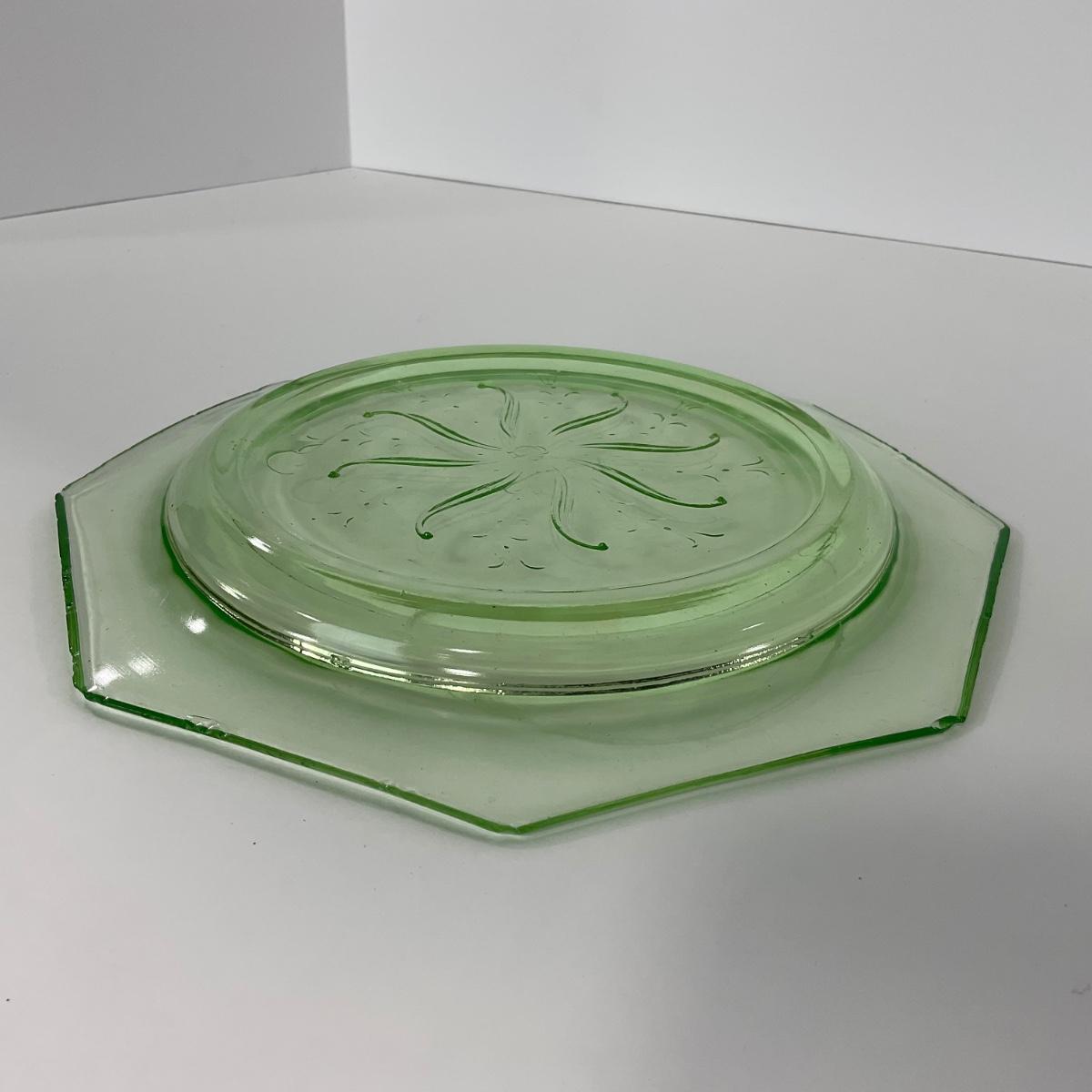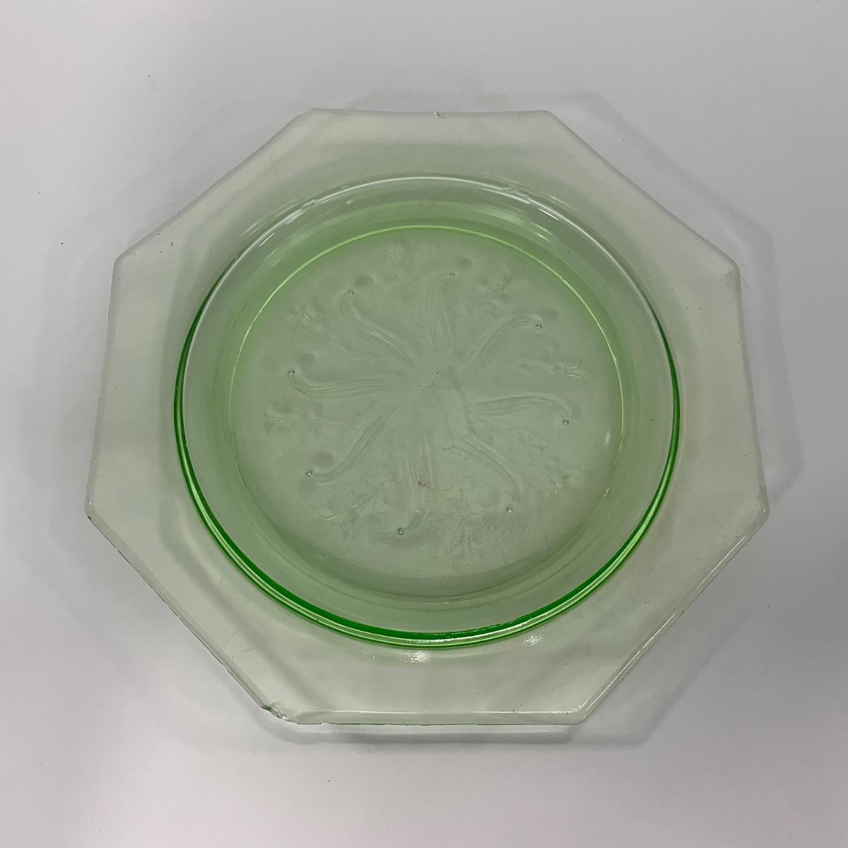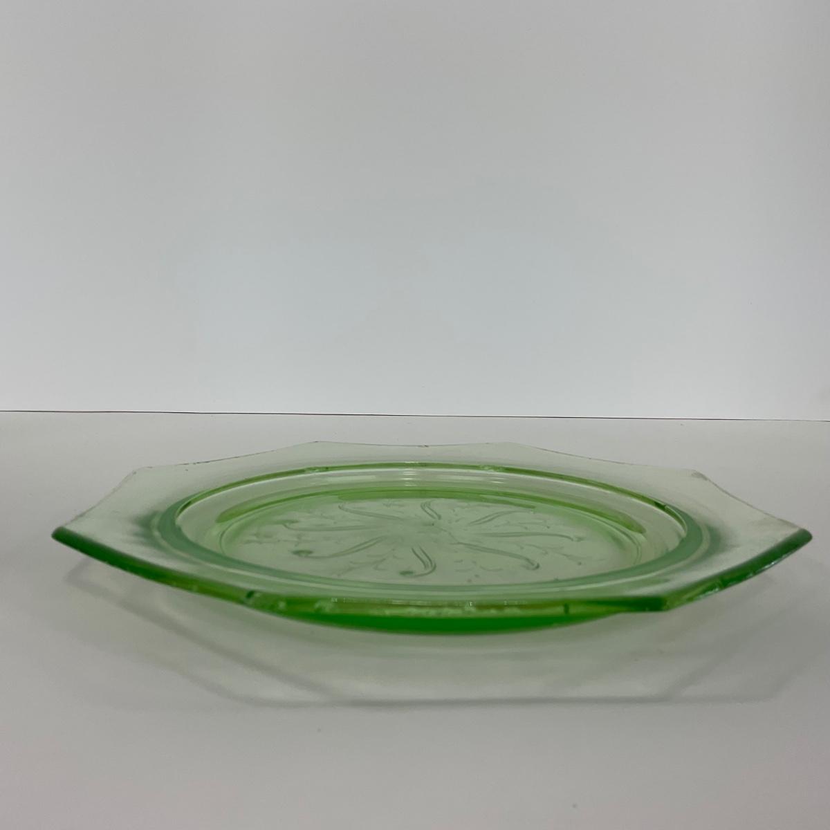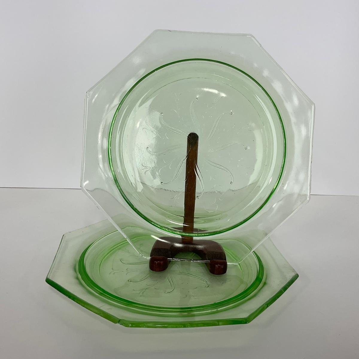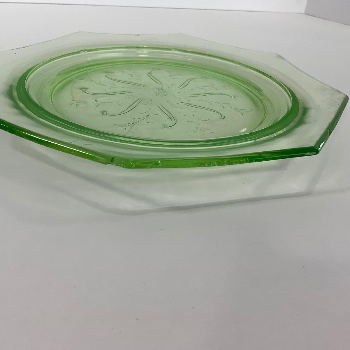 Two green depression glass trays with design. Both pieces have quite a few chips and damage. I am Uranium glass so I DO GLOW under blacklight. Please see photos for details and condition. ::: Shipping is available on this lot. If you require shipping you must let us know at the close of the auction. We will coordinate with you after the item has been won. Shipping fees will include insurance up to or exceeding the value of all items being mailed. If you have any questions regarding this lot please contact the auctioneer either via this website, by direct email or by phone. PICK UP TIMES and other important information can be found in the TERMS and DESCRIPTION of the auction. Please take a look for pertinent information. Thanks!