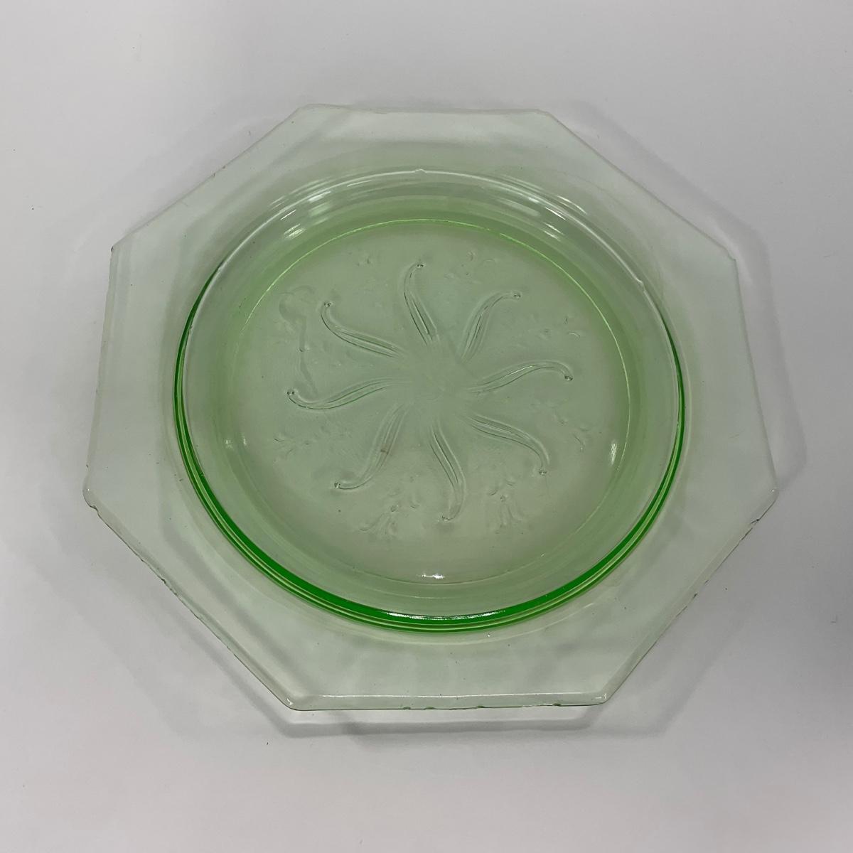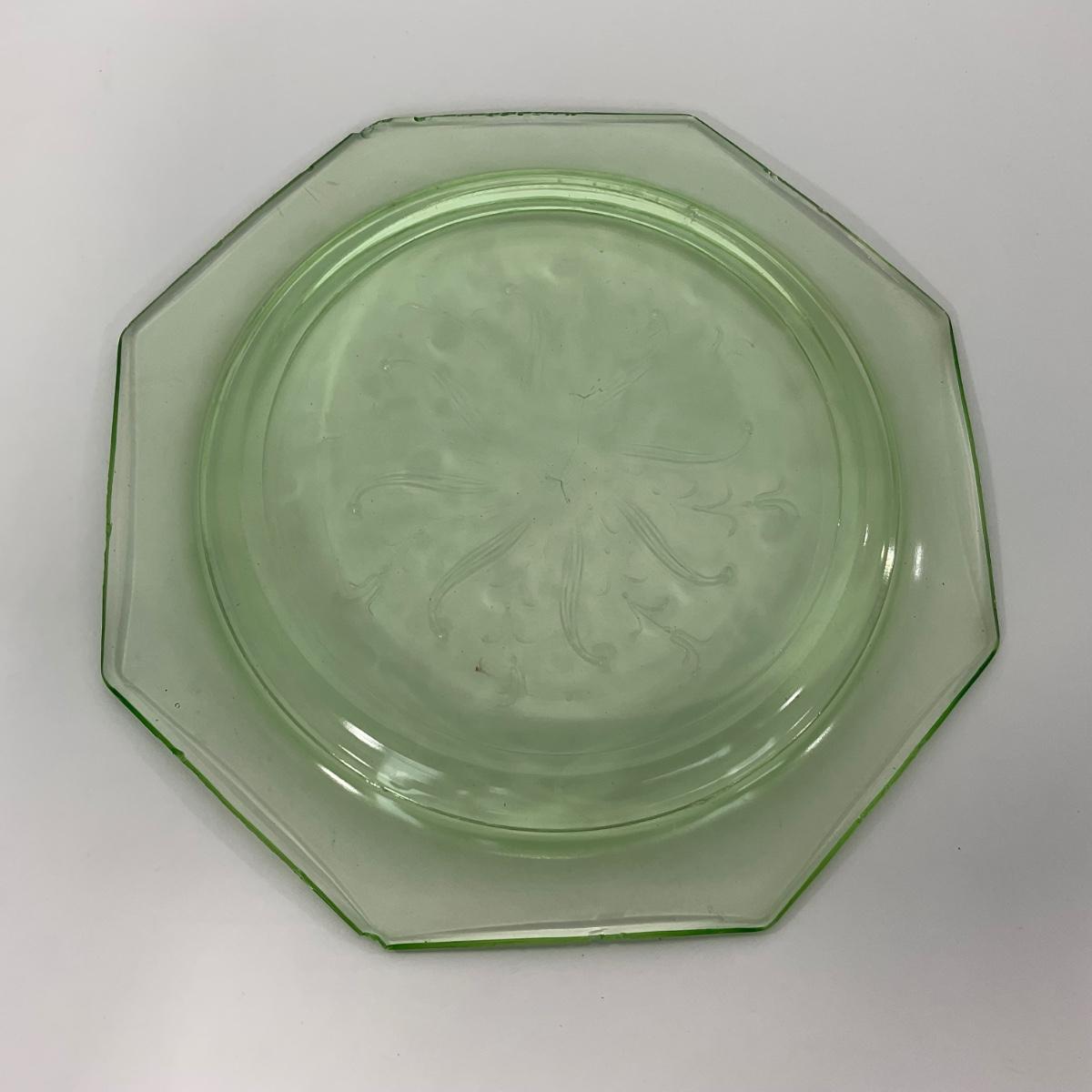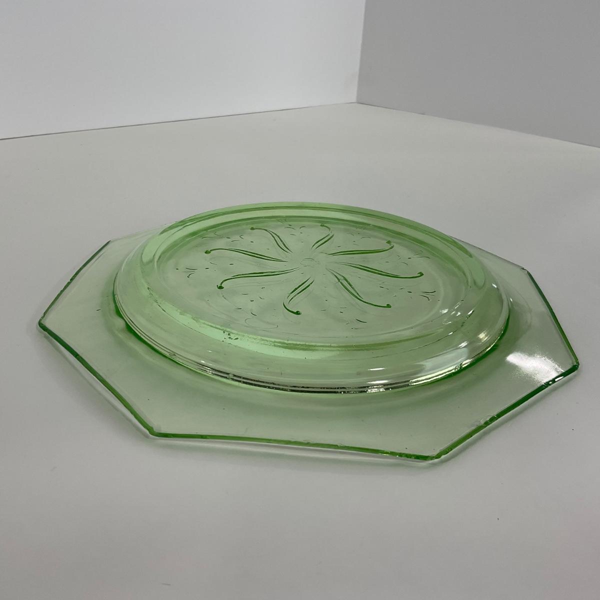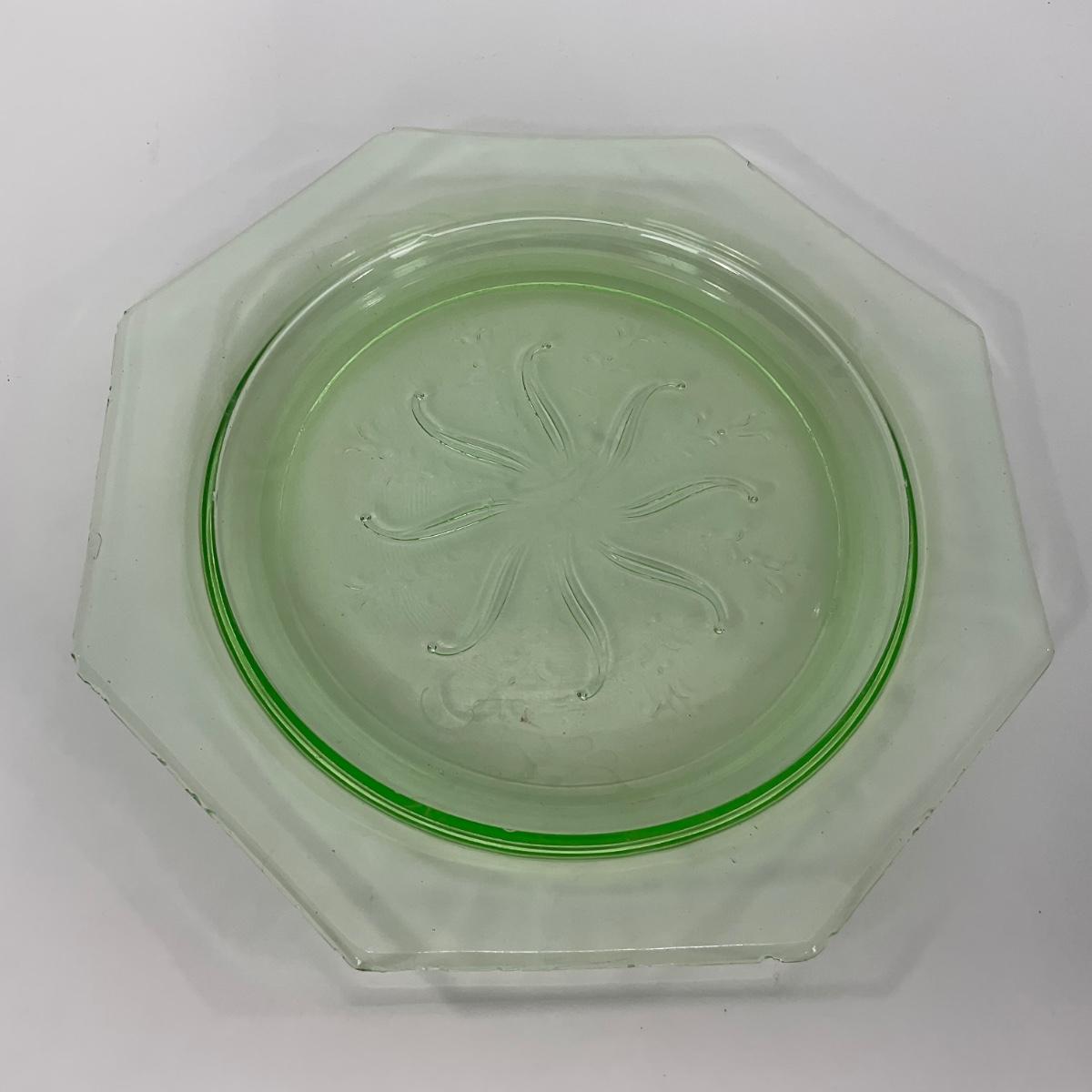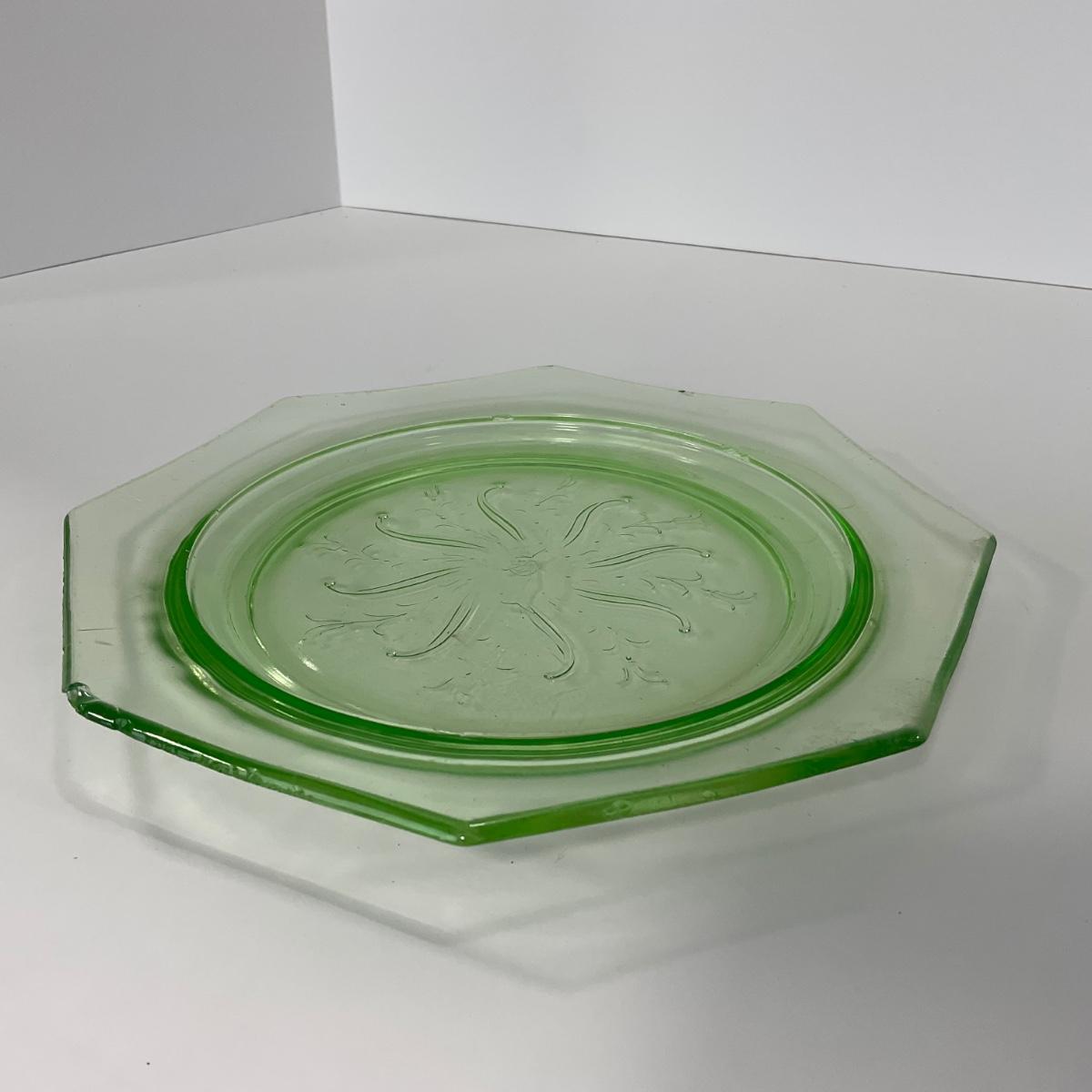 Two green depression glass trays with design. Both pieces have quite a few chips and damage. I am Uranium glass so I DO GLOW under blacklight. Please see photos for details and condition. ::: Shipping is available on this lot. If you require shipping you must let us know at the close of the auction. We will coordinate with you after the item has been won. Shipping fees will include insurance up to or exceeding the value of all items being mailed. If you have any questions regarding this lot please contact the auctioneer either via this website, by direct email or by phone. PICK UP TIMES and other important information can be found in the TERMS and DESCRIPTION of the auction. Please take a look for pertinent information. Thanks!