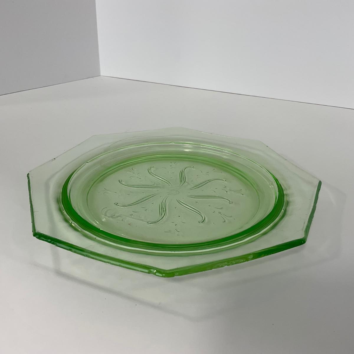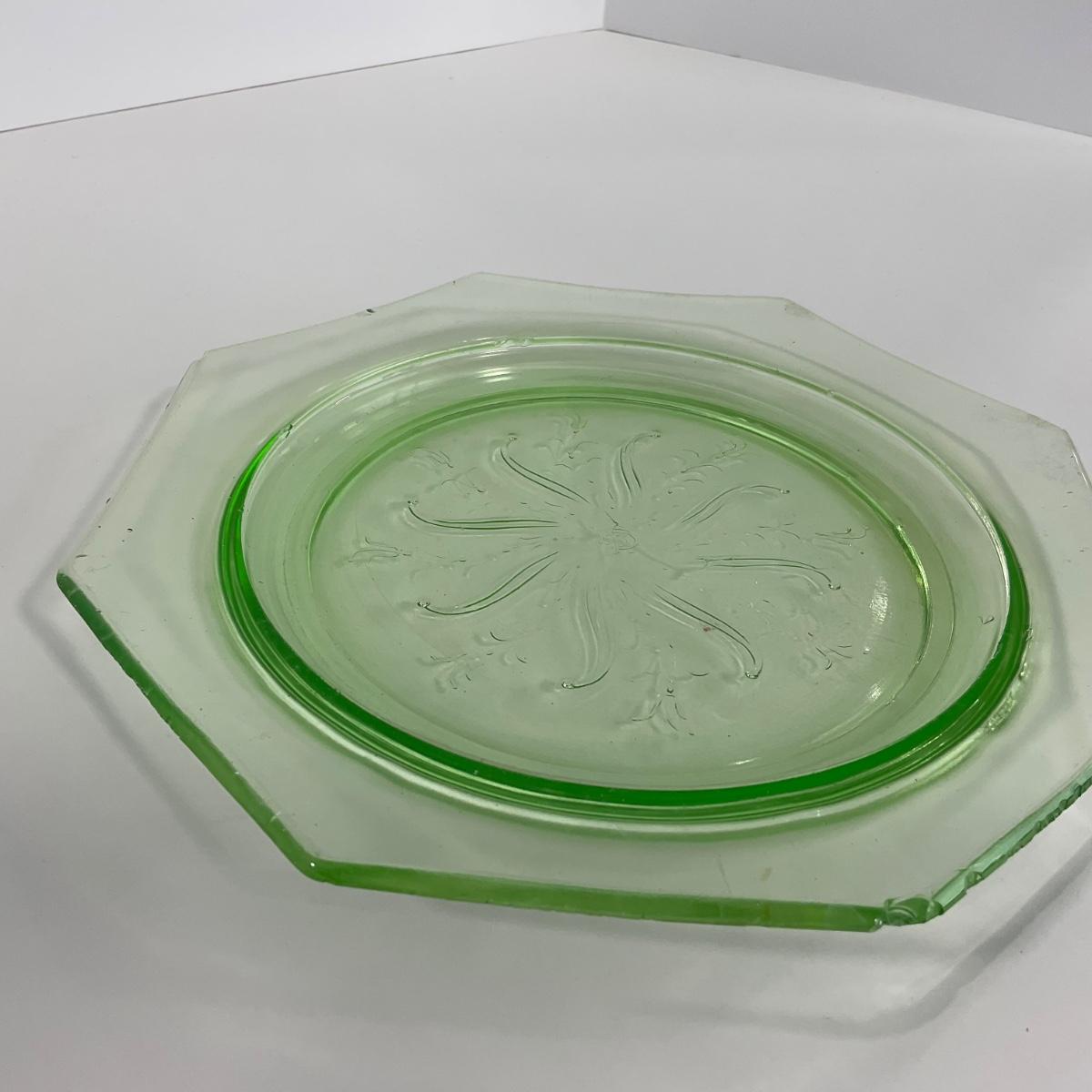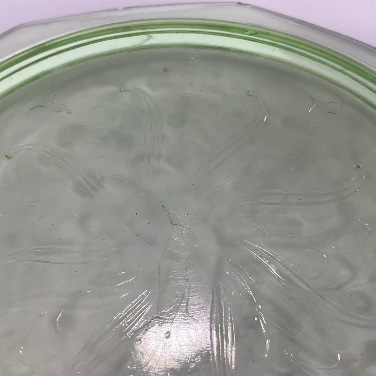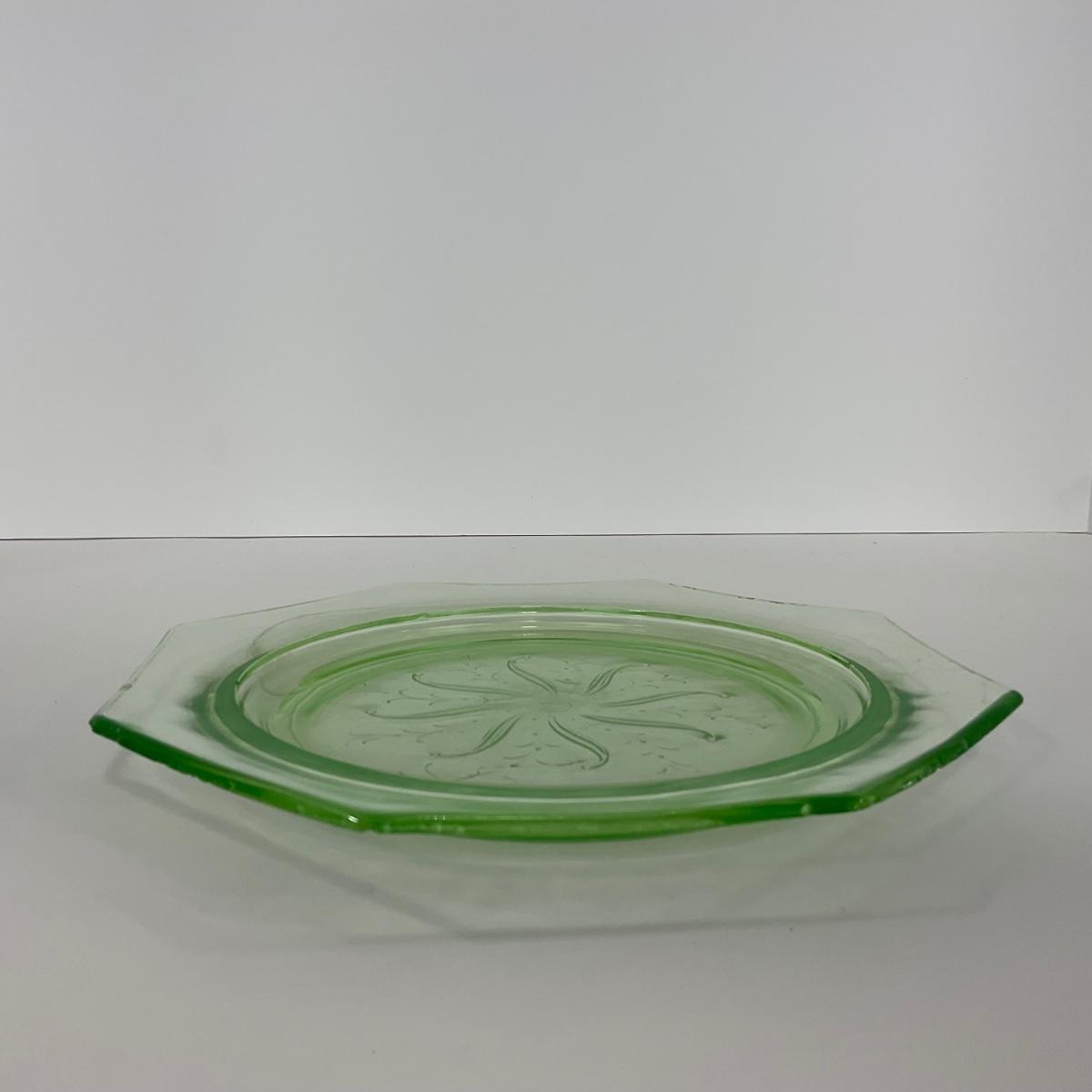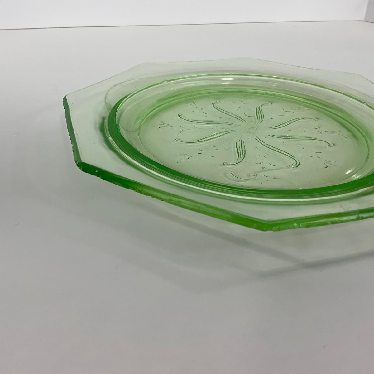 Two green depression glass trays with design. Both pieces have quite a few chips and damage. I am Uranium glass so I DO GLOW under blacklight. Please see photos for details and condition. ::: Shipping is available on this lot. If you require shipping you must let us know at the close of the auction. We will coordinate with you after the item has been won. Shipping fees will include insurance up to or exceeding the value of all items being mailed. If you have any questions regarding this lot please contact the auctioneer either via this website, by direct email or by phone. PICK UP TIMES and other important information can be found in the TERMS and DESCRIPTION of the auction. Please take a look for pertinent information. Thanks!