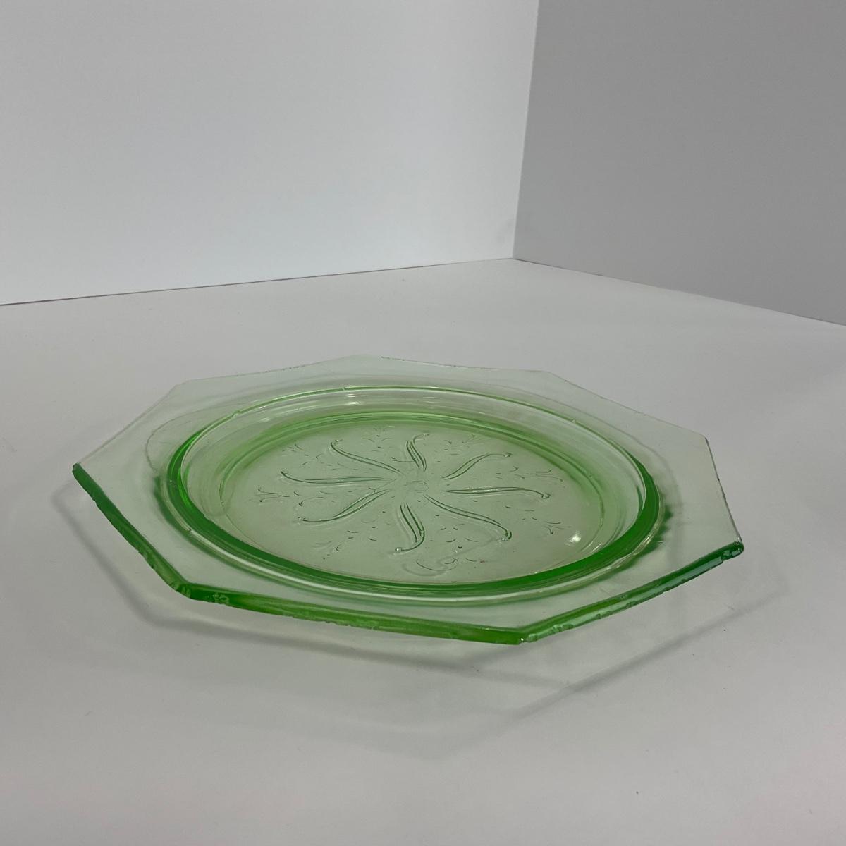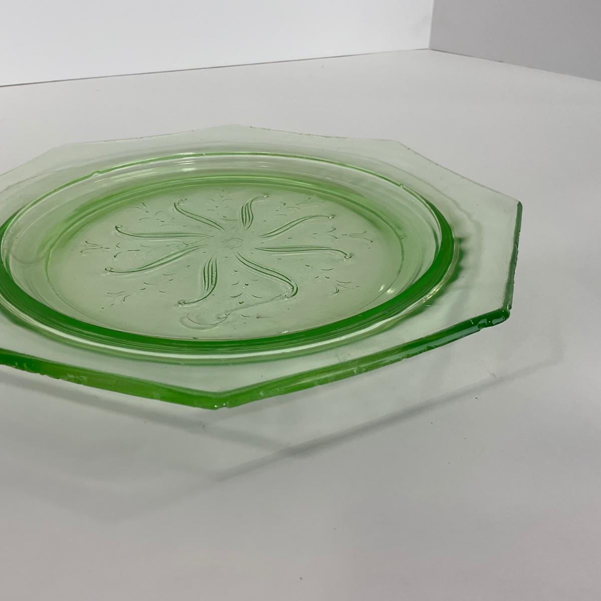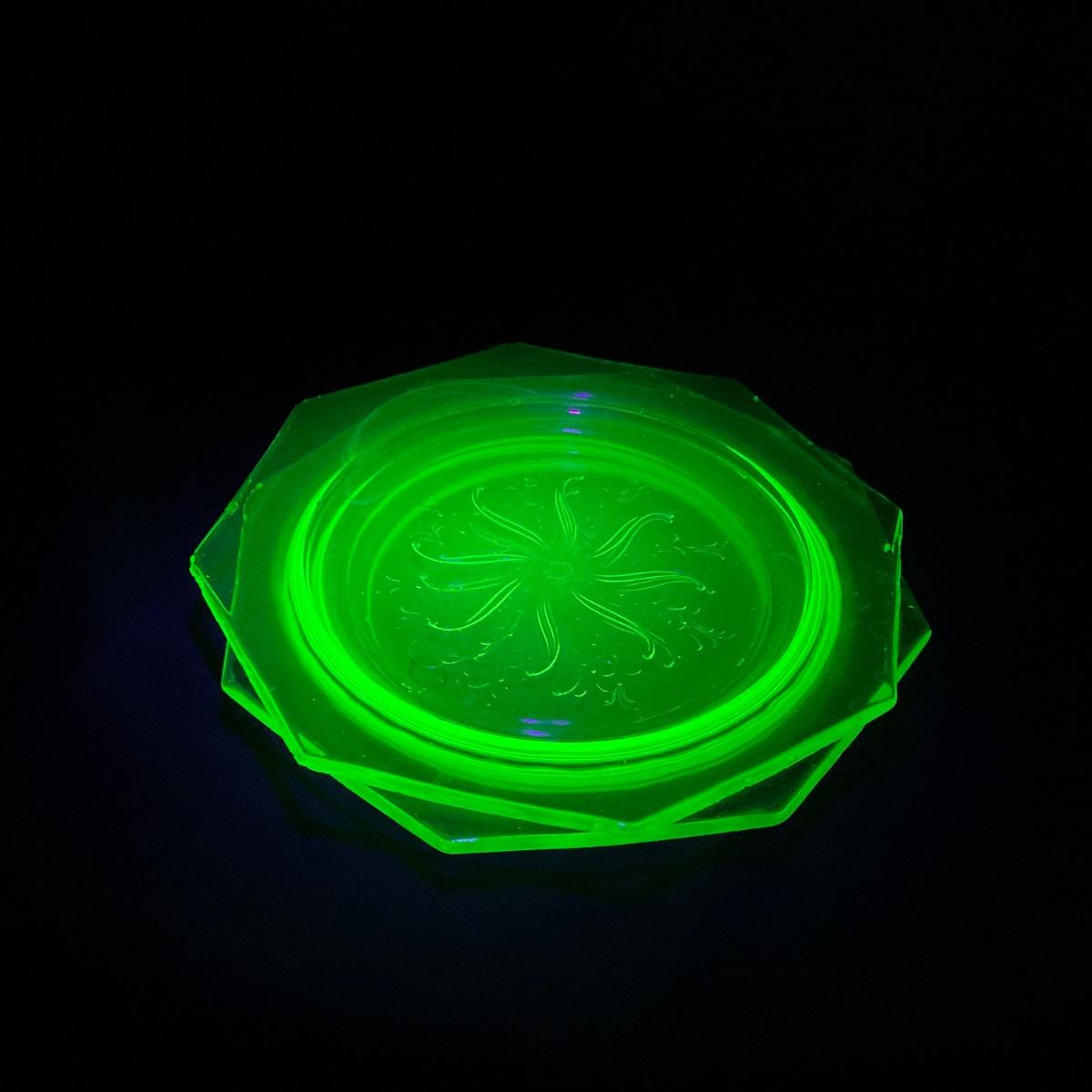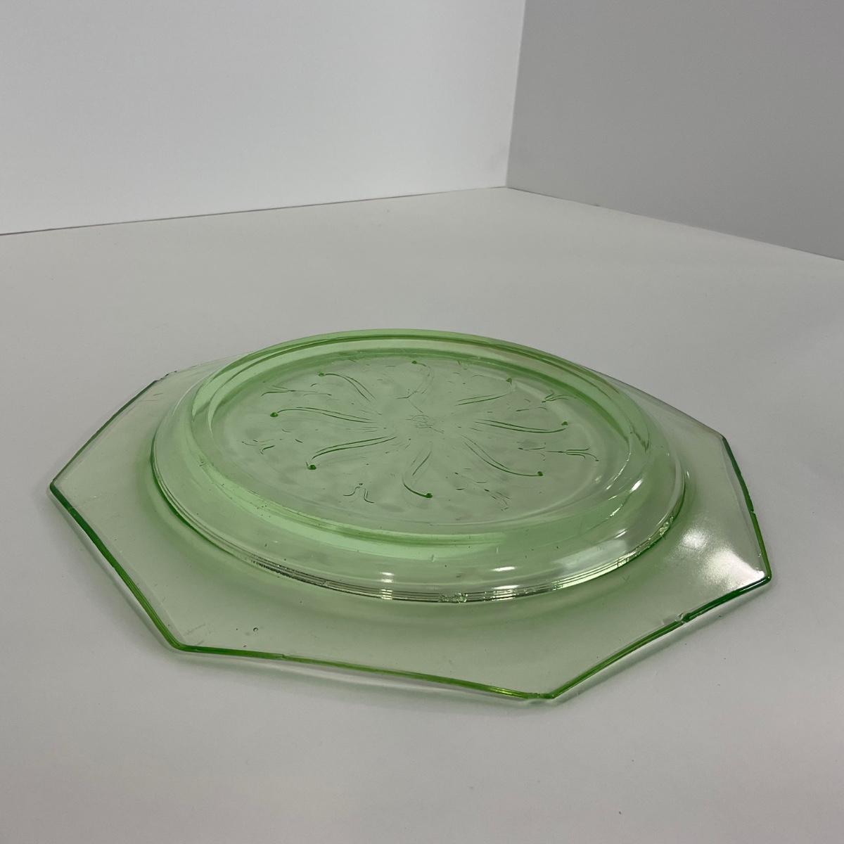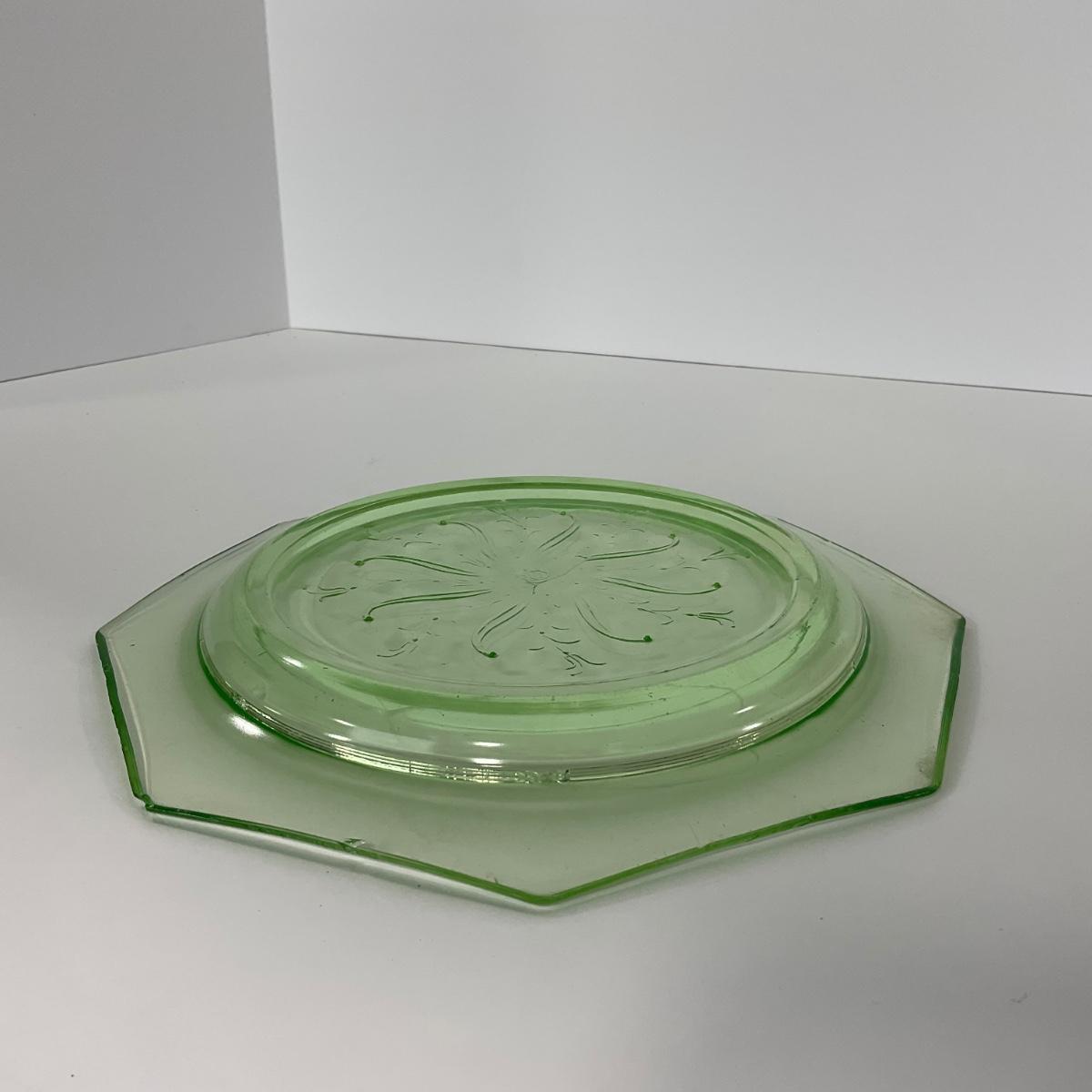 Two green depression glass trays with design. Both pieces have quite a few chips and damage. I am Uranium glass so I DO GLOW under blacklight. Please see photos for details and condition. ::: Shipping is available on this lot. If you require shipping you must let us know at the close of the auction. We will coordinate with you after the item has been won. Shipping fees will include insurance up to or exceeding the value of all items being mailed. If you have any questions regarding this lot please contact the auctioneer either via this website, by direct email or by phone. PICK UP TIMES and other important information can be found in the TERMS and DESCRIPTION of the auction. Please take a look for pertinent information. Thanks!