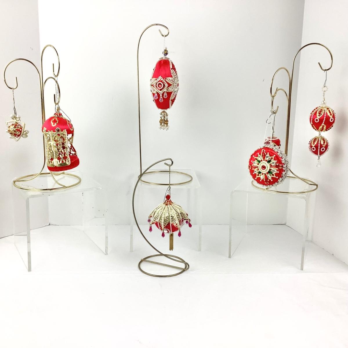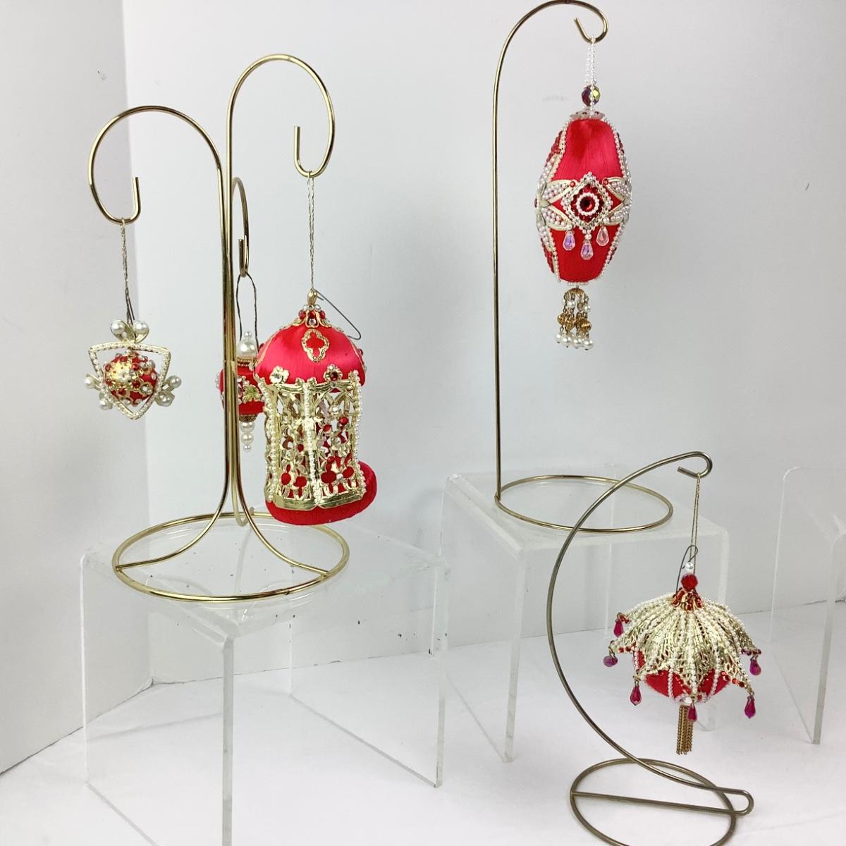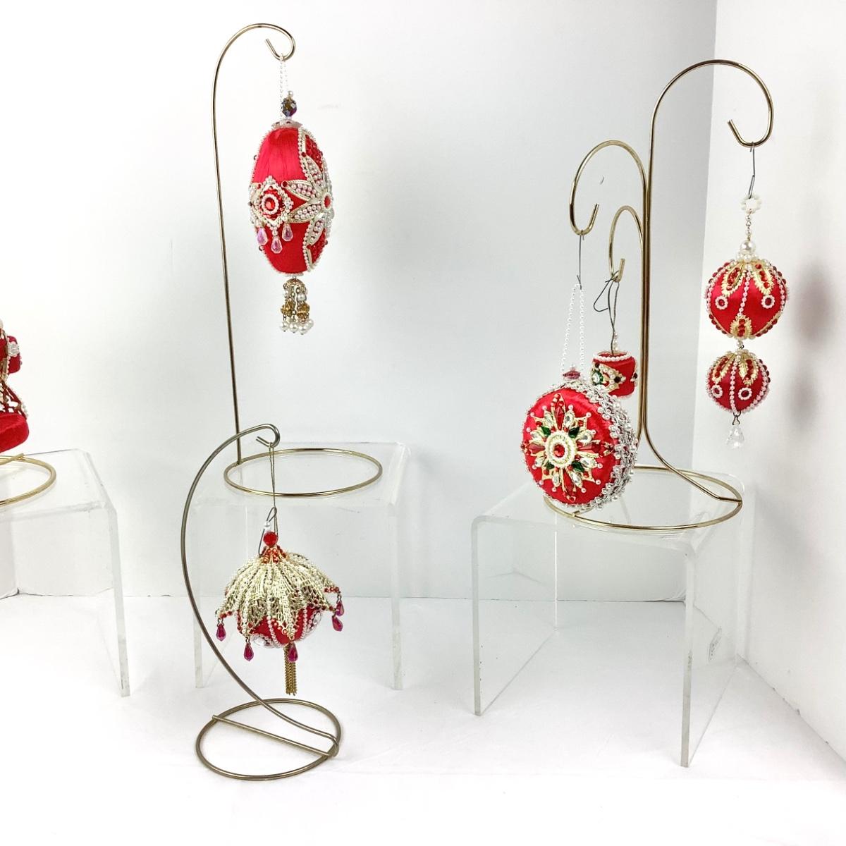 131 Vintage Red Satin Beaded Handcrafted Ornaments