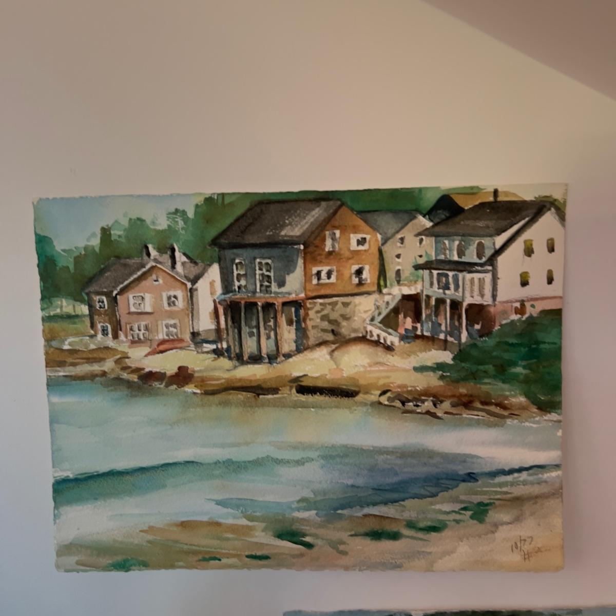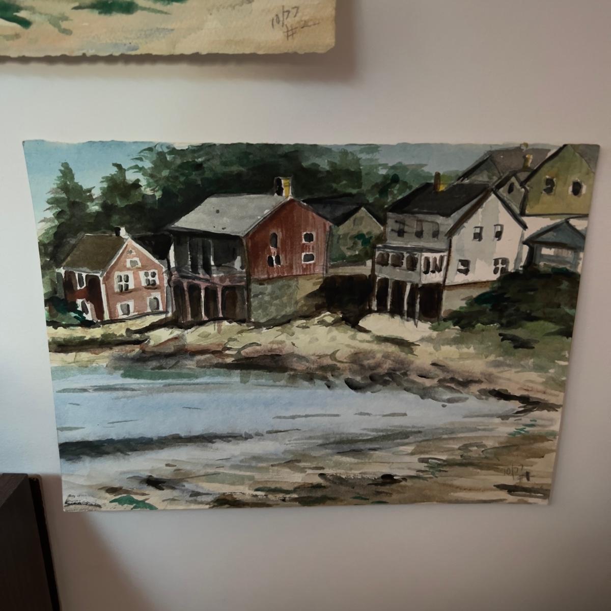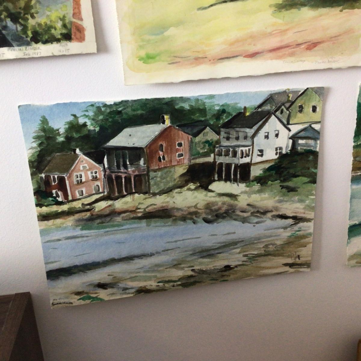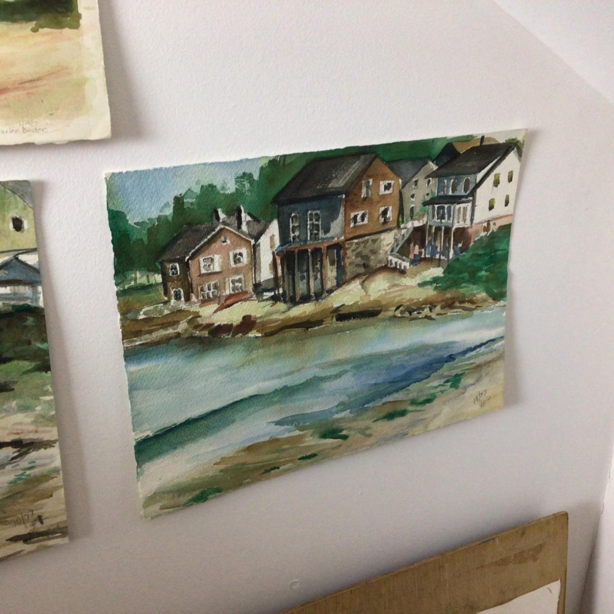 Lot contains 4 original one of a kind watercolor landscapes by local artist Marlen Binder. They are 10” x 12” with subjects of seaside, church and city.