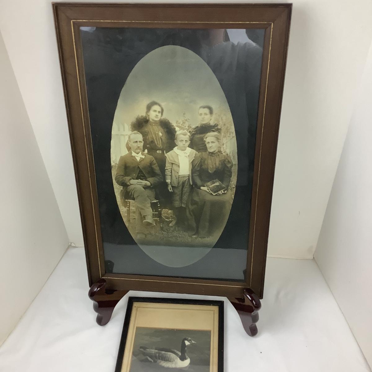 Framed family portrait. Black and white goose photo is by local photographer Don Edwards.