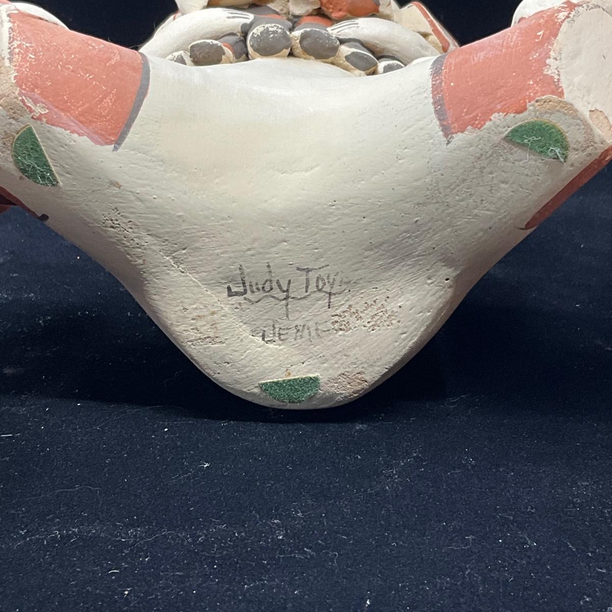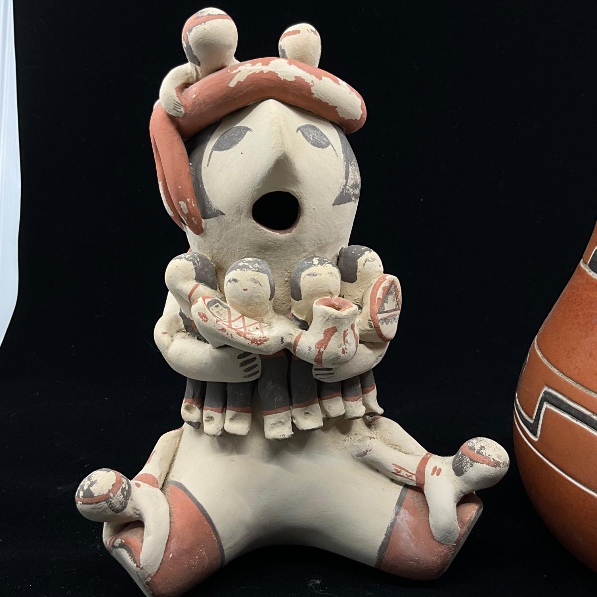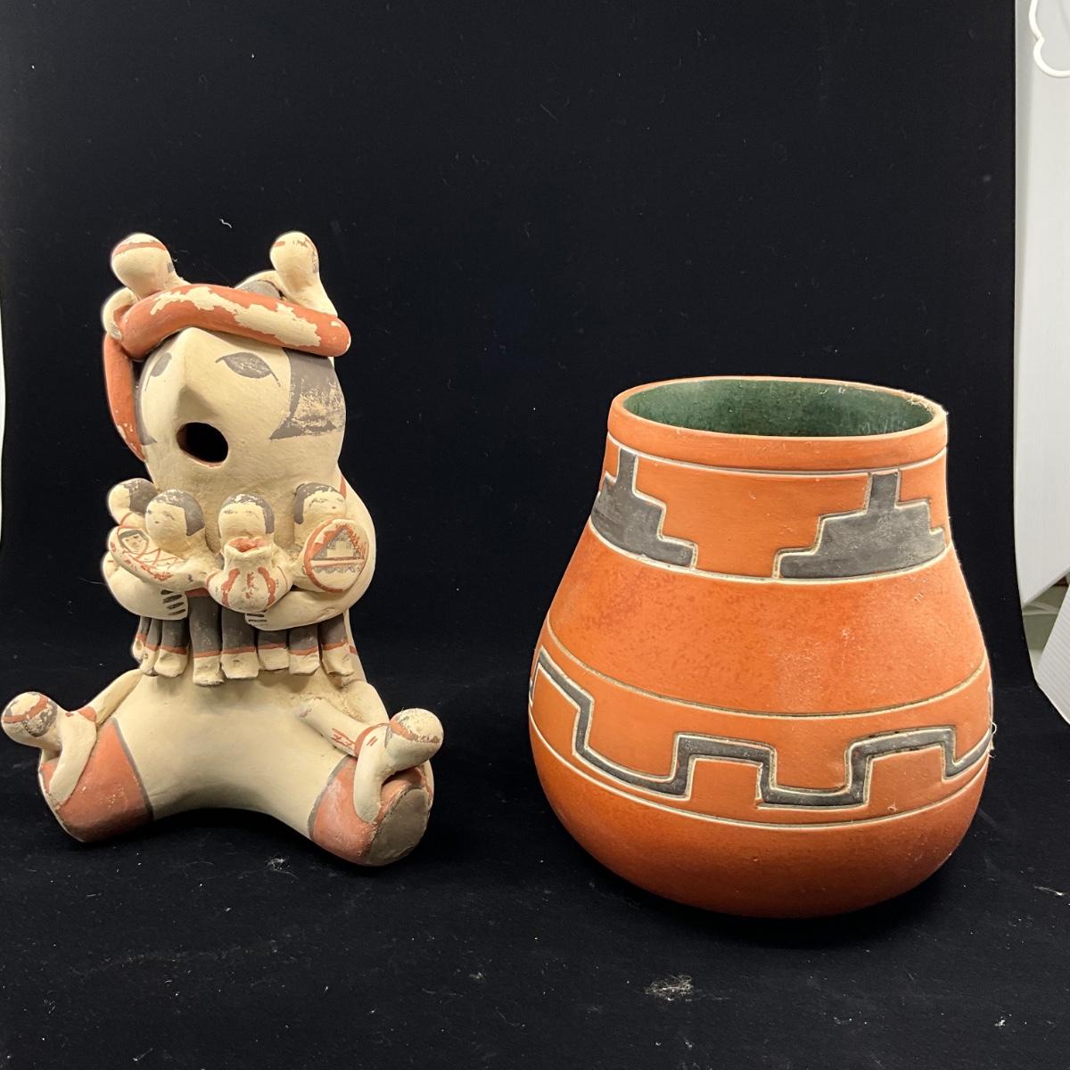1315 Vintage Judy Toya Terracotta Figure with Leopoldo De Mexico Folk Art Vase