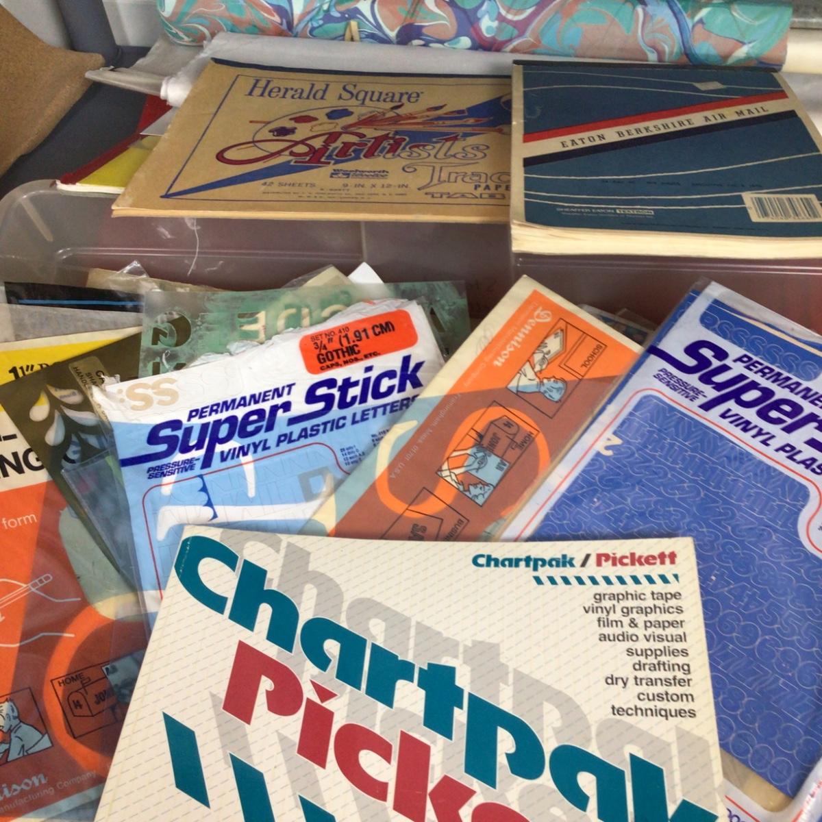 Large lot of assorted stencils of all sizes and themes, several different types of paper in the lot as well as vintage tracing paper.