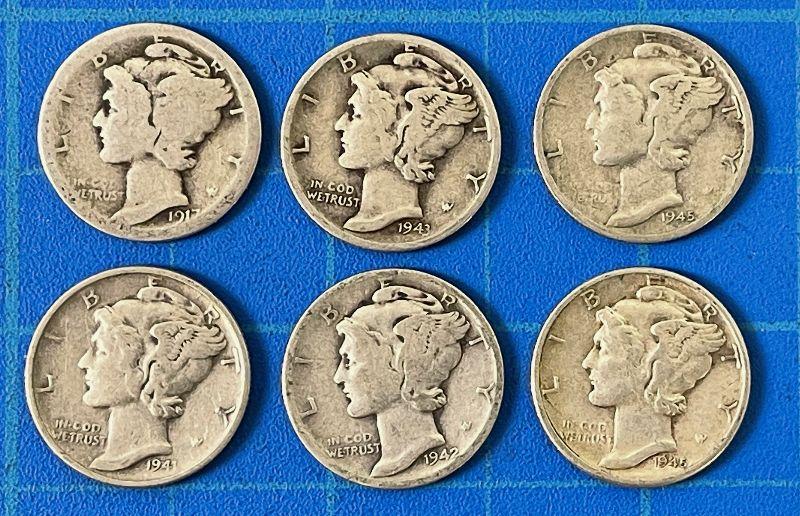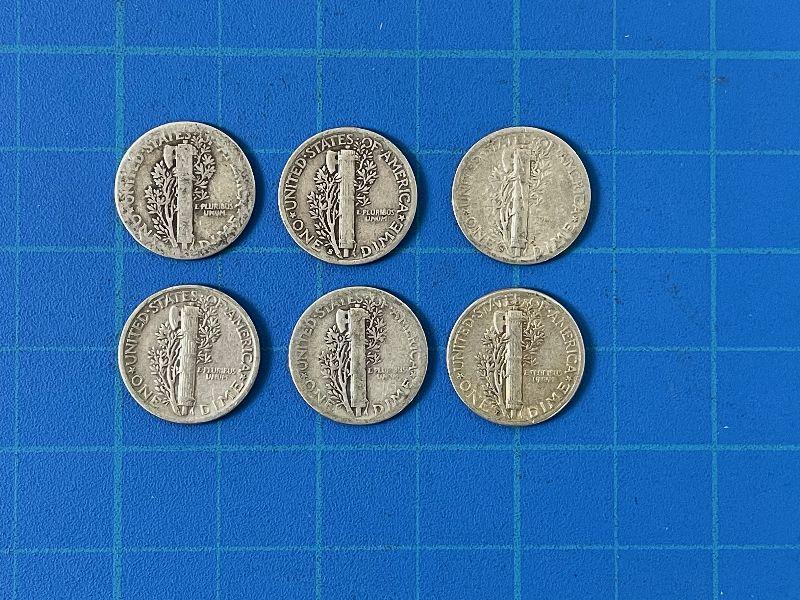 #132 (6) Mercury dimes - Circulated