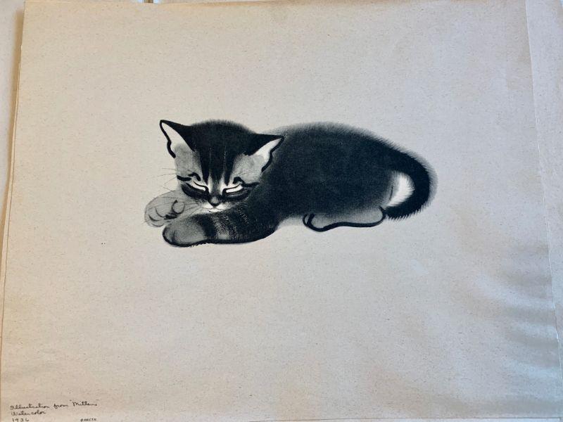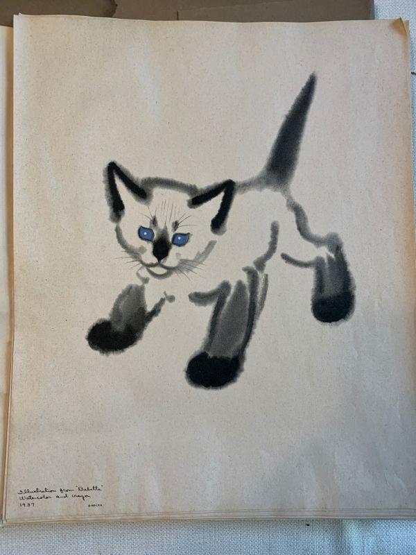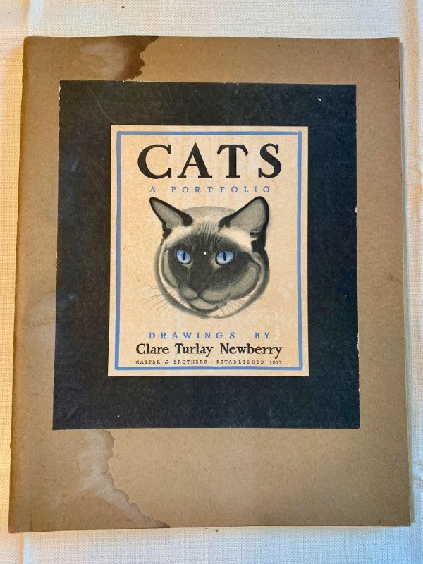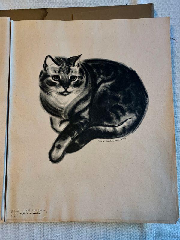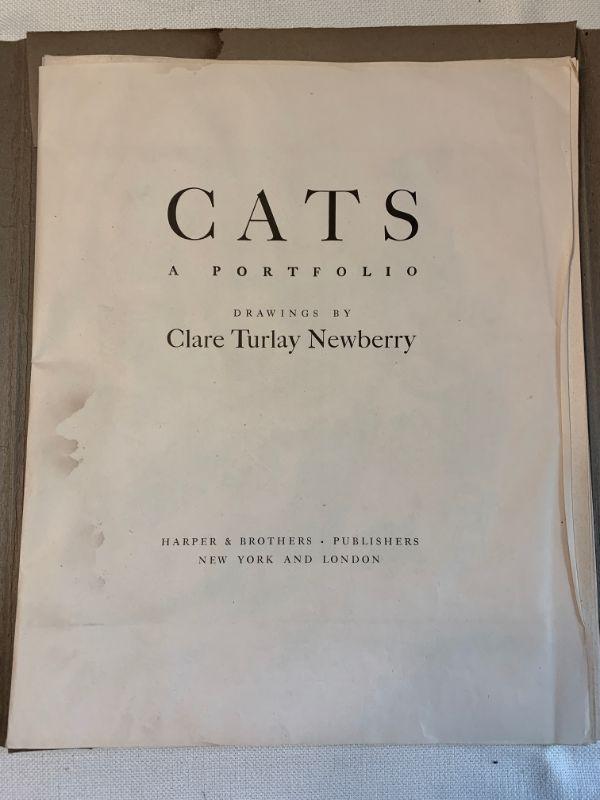 Cats Portfolio by Clare Turlay Newberry pub. 1943 Loose leaf pages of her famous cat illustrations. Water damage to the folio jacket.