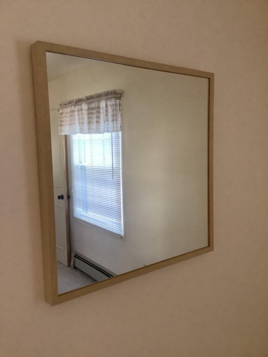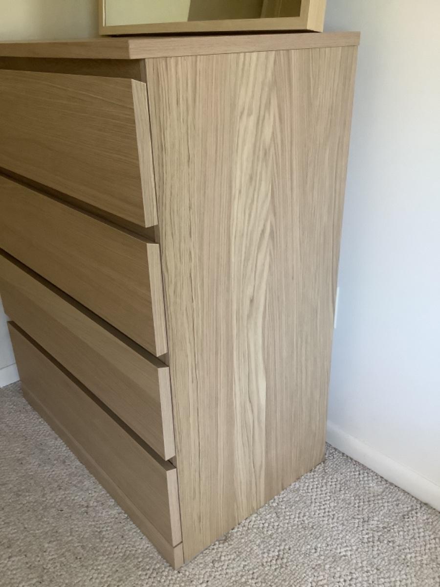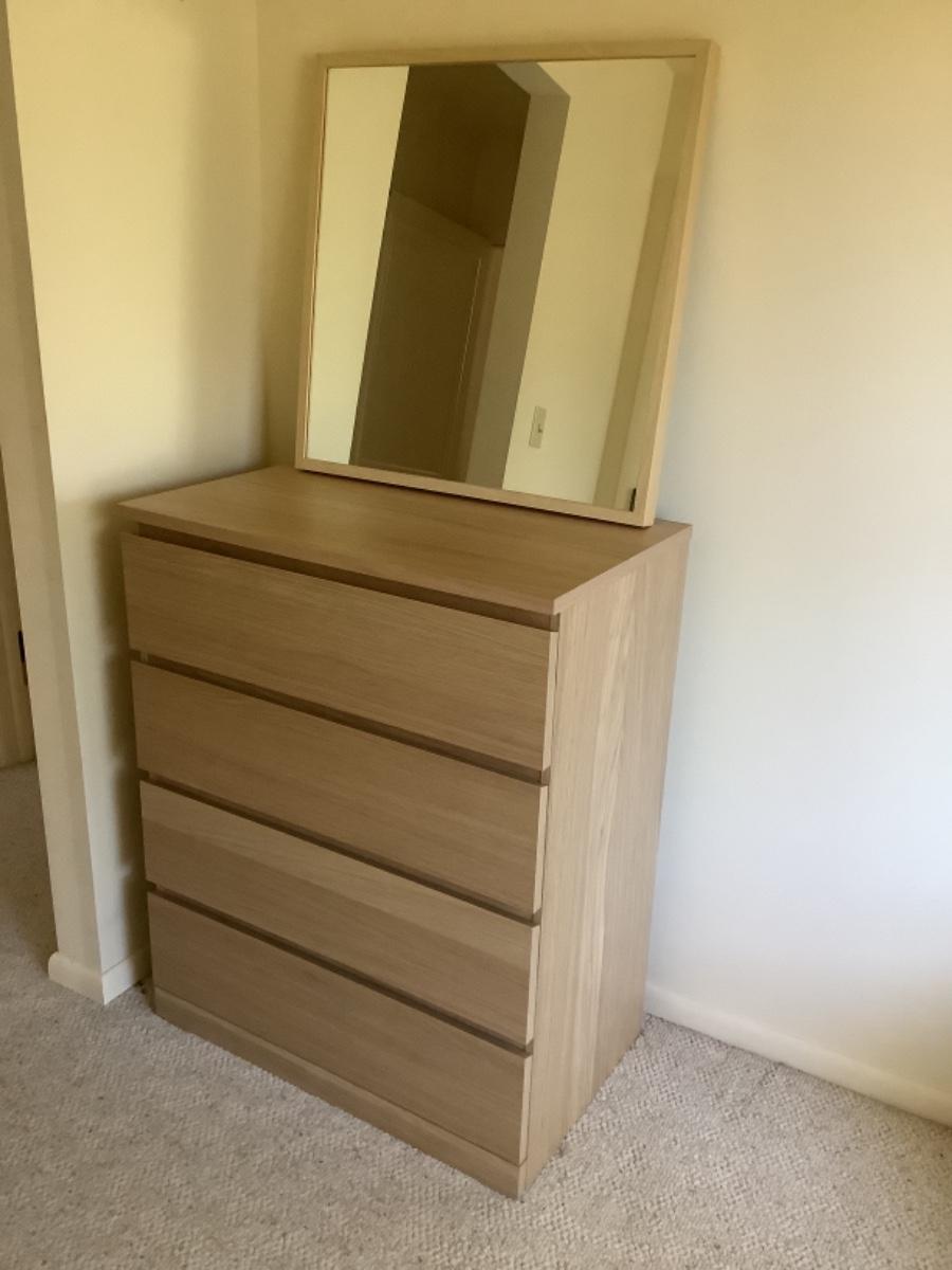 132 IKEA Four Drawer Woodgrain Formica Dresser & mirror