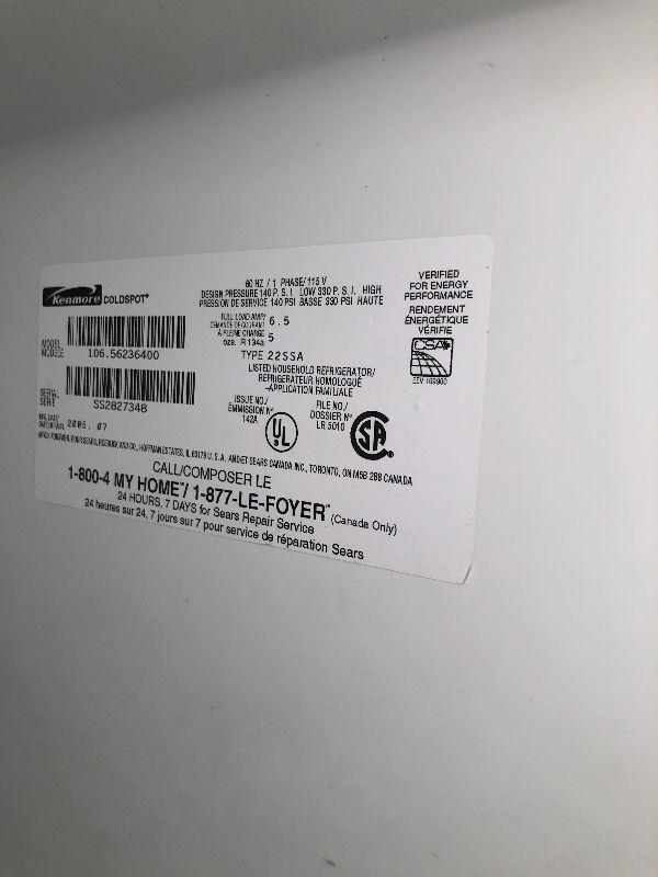 MUST BRING HELP WE are unable to assist with this. Manufactured in 2005 - KENMORE COLDSPOT. Appears to be cold and freezing features work. Used, good working condition, with ice and water. Water is not hooked up to test.