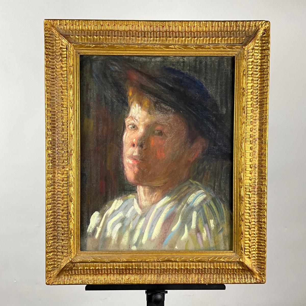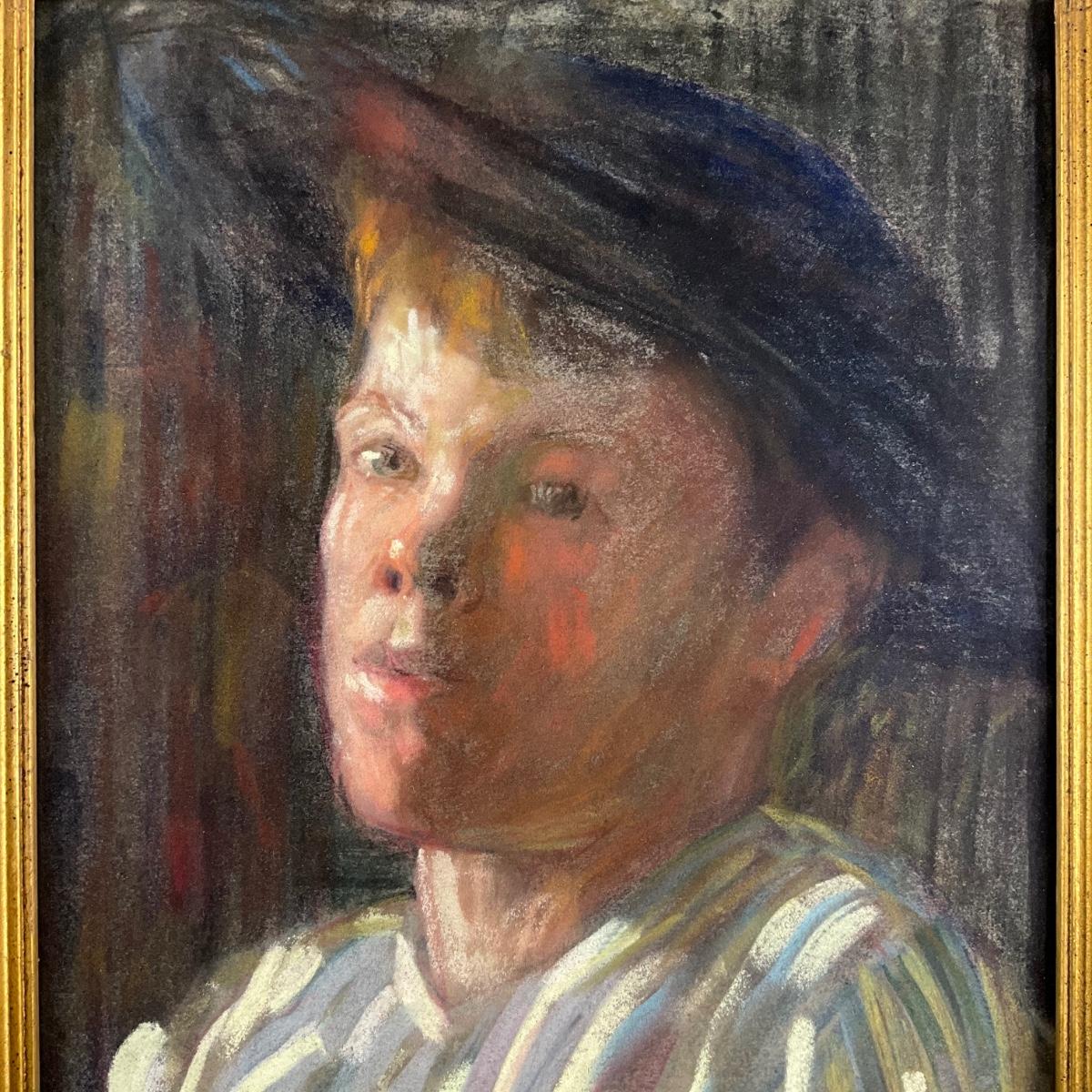 034 American School, Pastel Portrait "Boy From The Racetrack" Circa 1920-1930