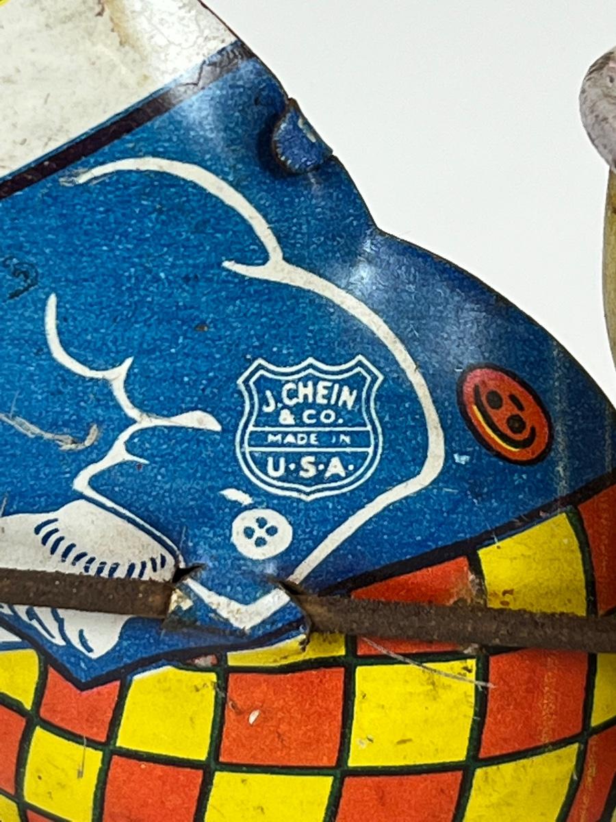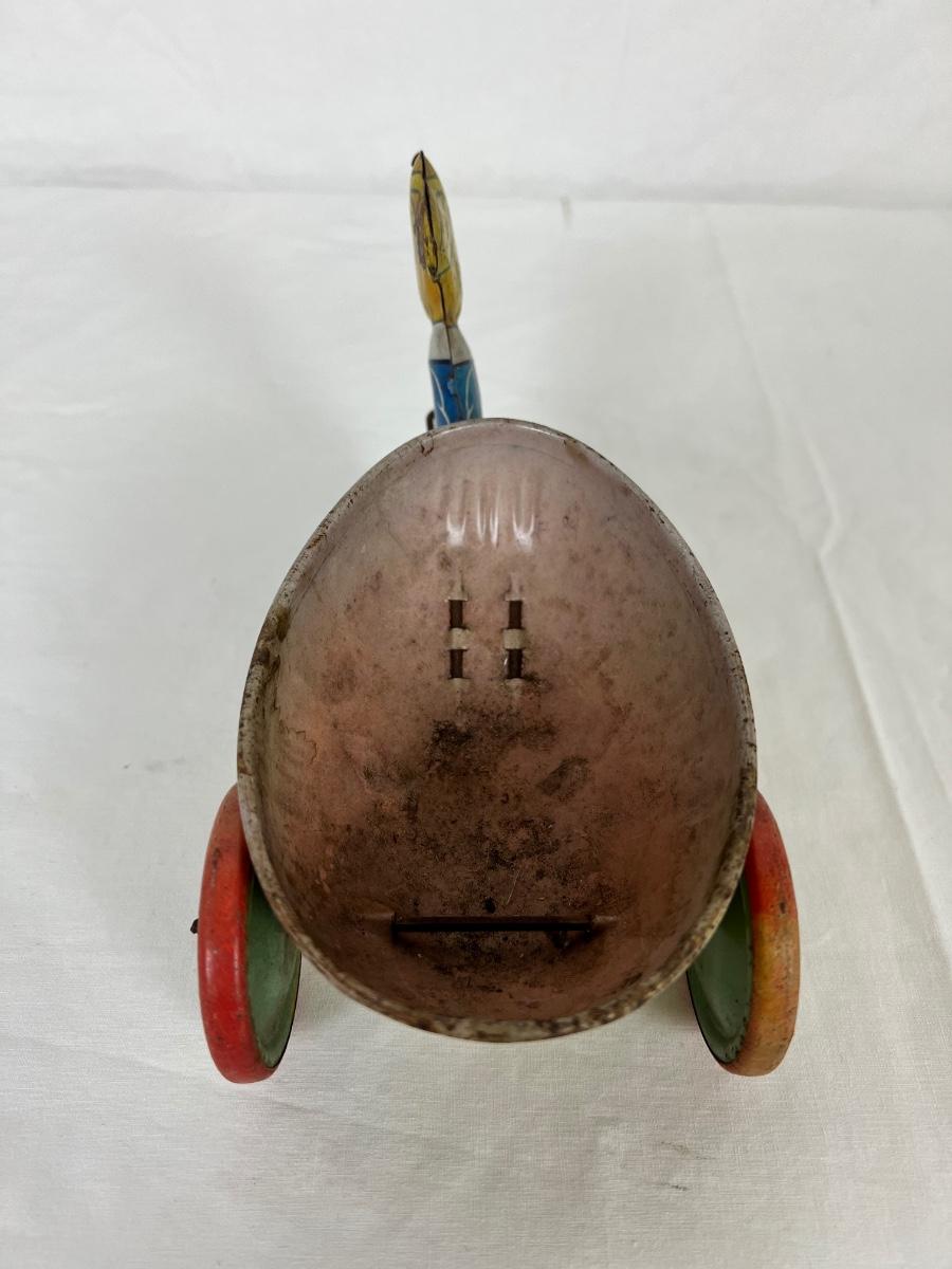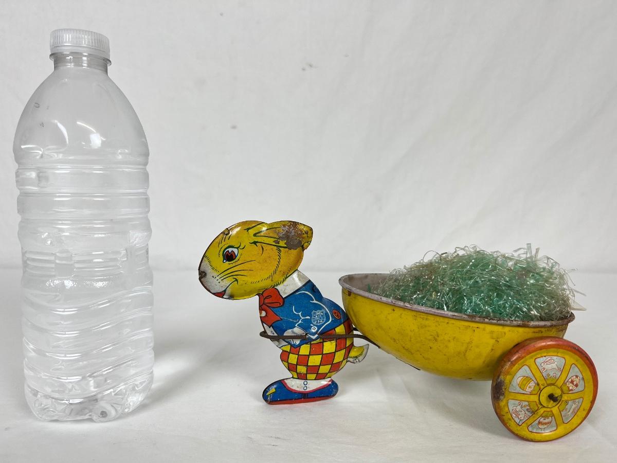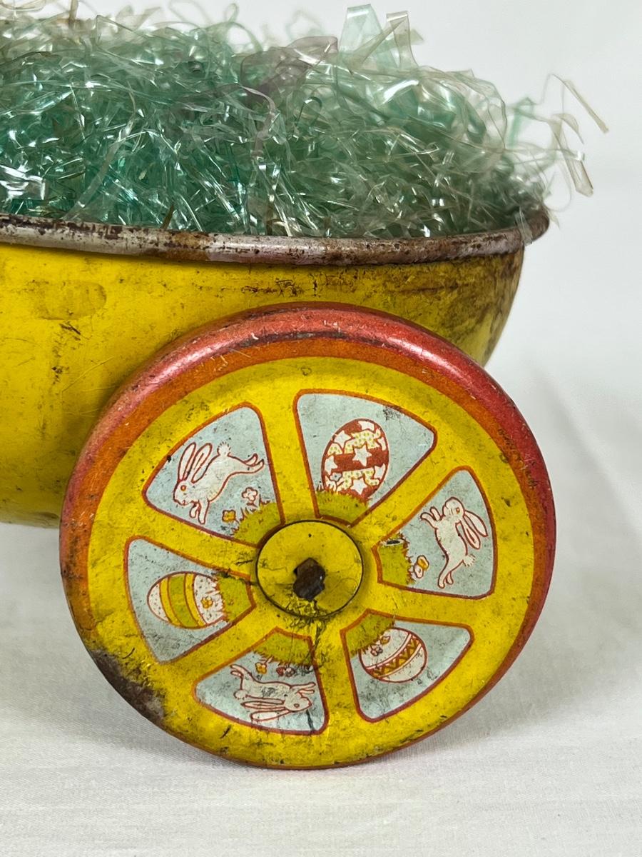 132 Vintage Tin Lithographed Toy Bunny Pulling Egg cart