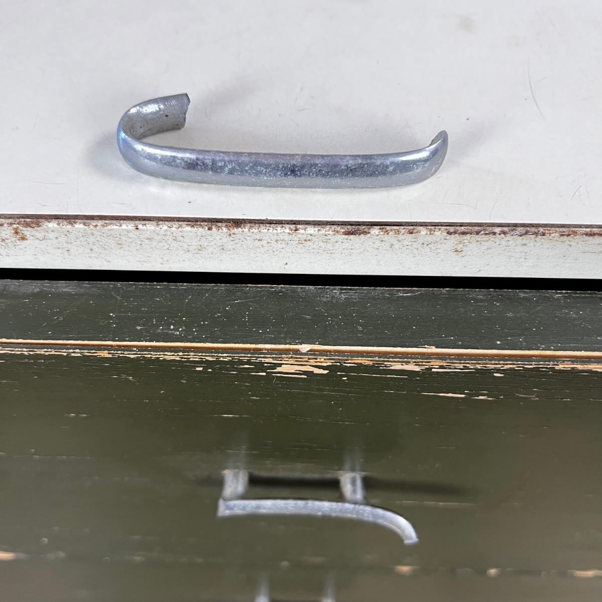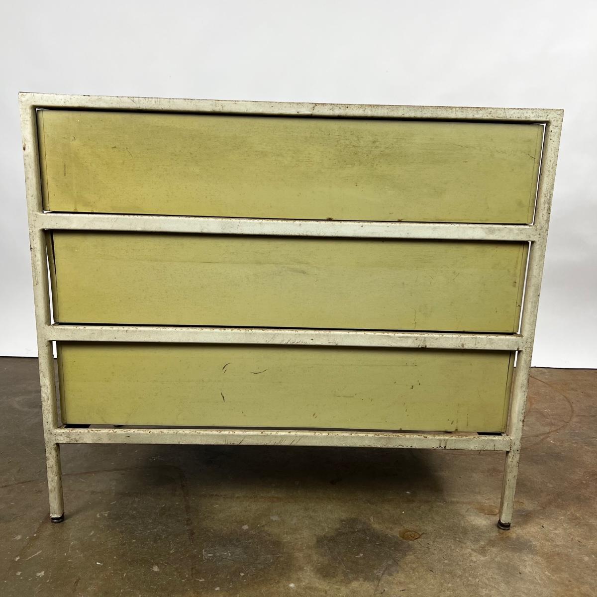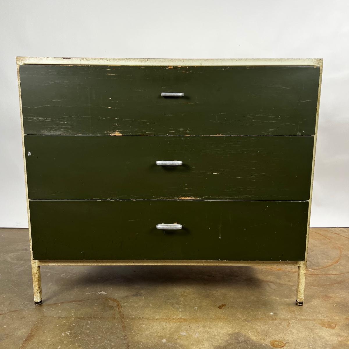 Mid Century Modern Herman Miller Steel Frame Laminated Dresser designed by George Nelson. Dresser is in weathered condition, one pull is broken but broke piece is included.