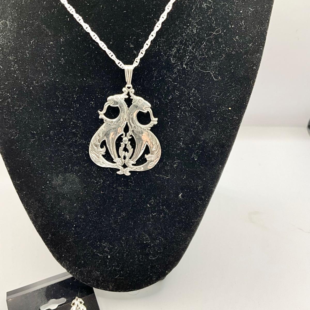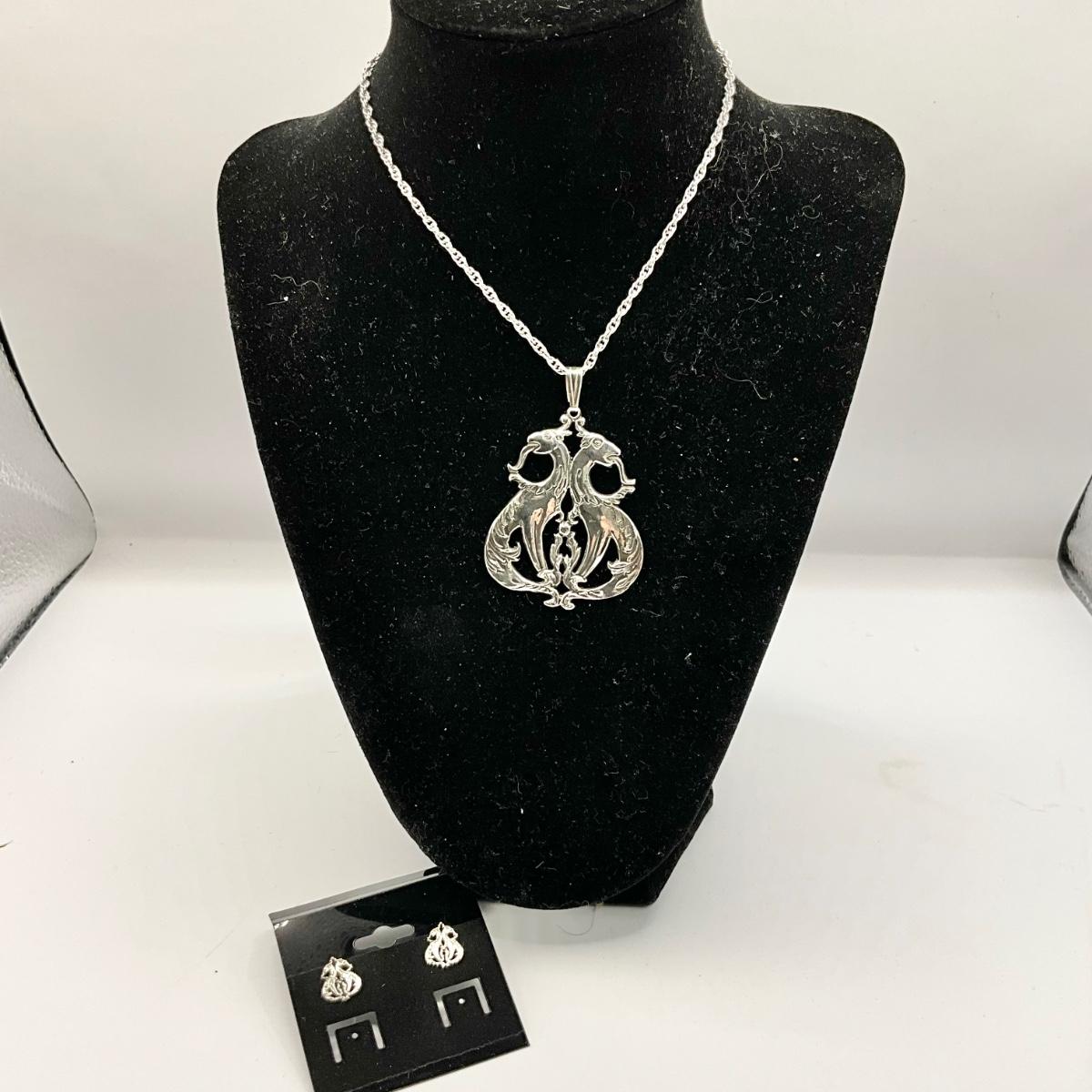 1329 Vintage Sterling Double Dragon Sea Griffin with matching Earrings