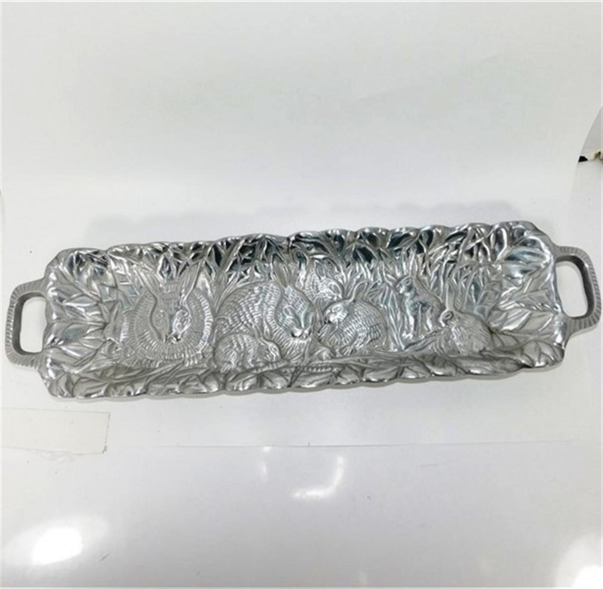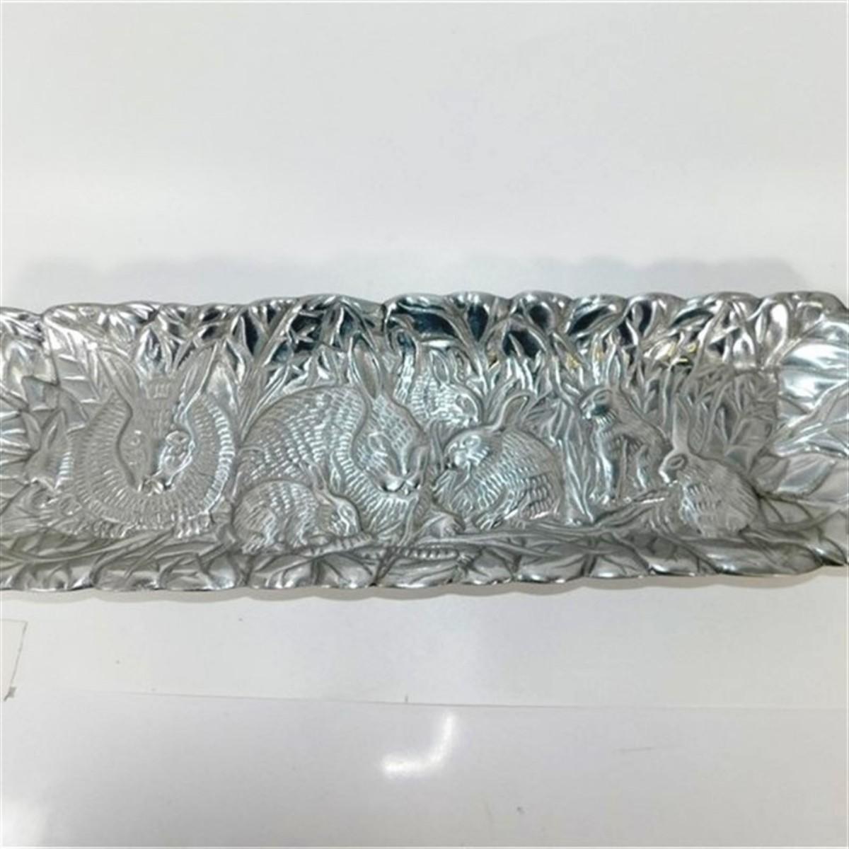 133 21" Decorative Rabbit Tray Long Silver Metal (Not marked)