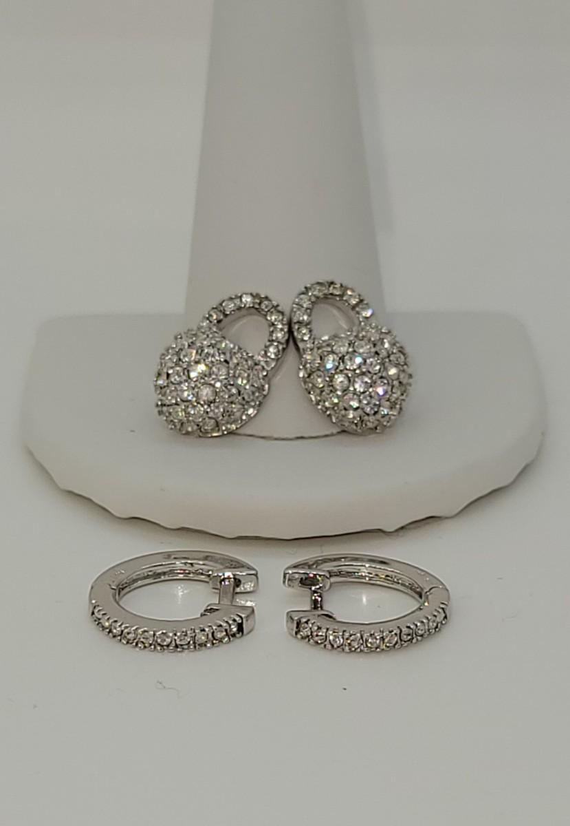 126: 925 Cubic Zirconia Hoop earrings with removable heart danglers