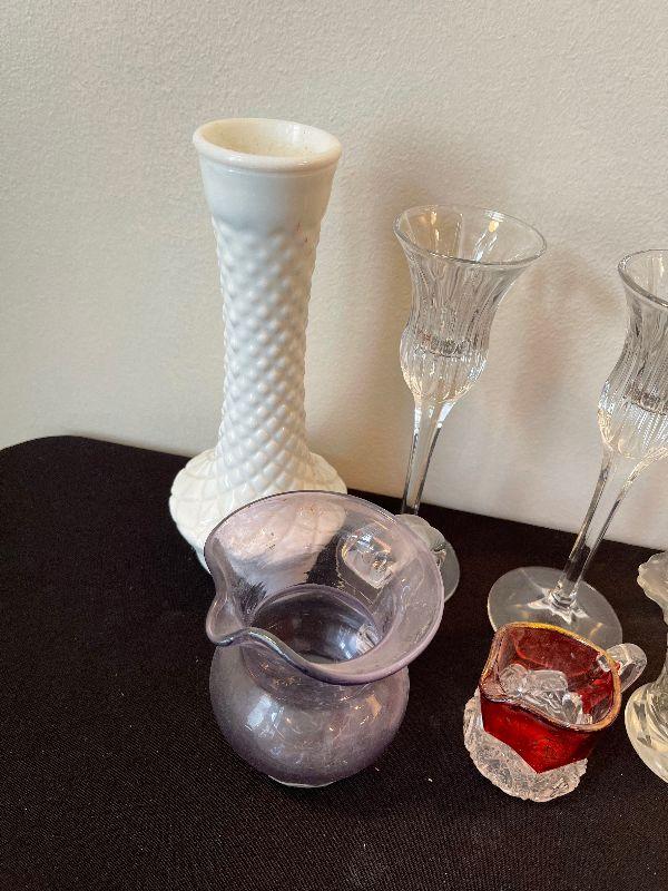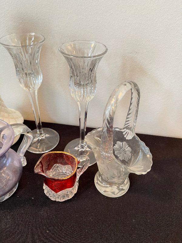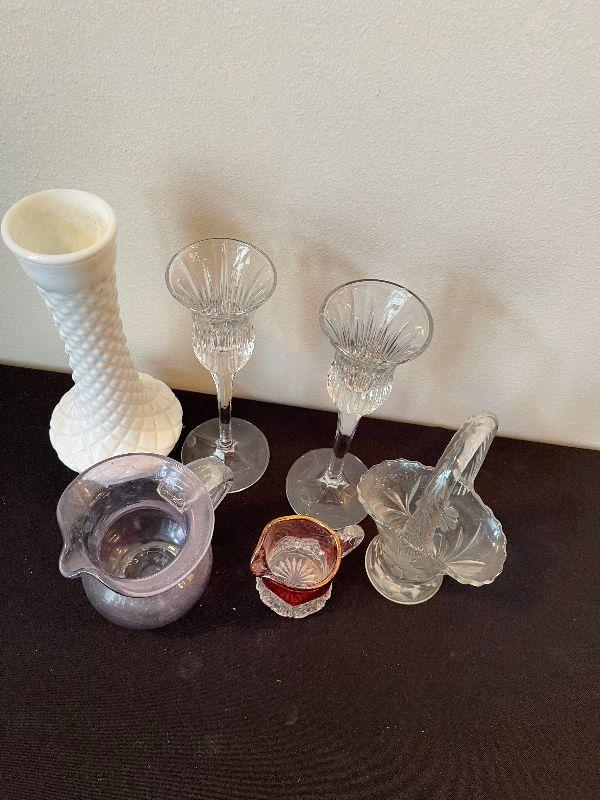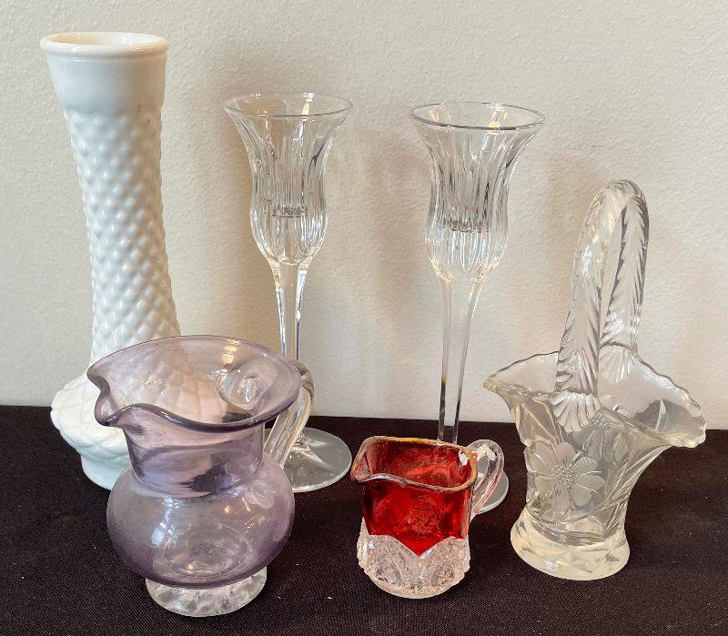 #133 Crystal and Glass: Brides Basket and Milk Glass Mixed Lot