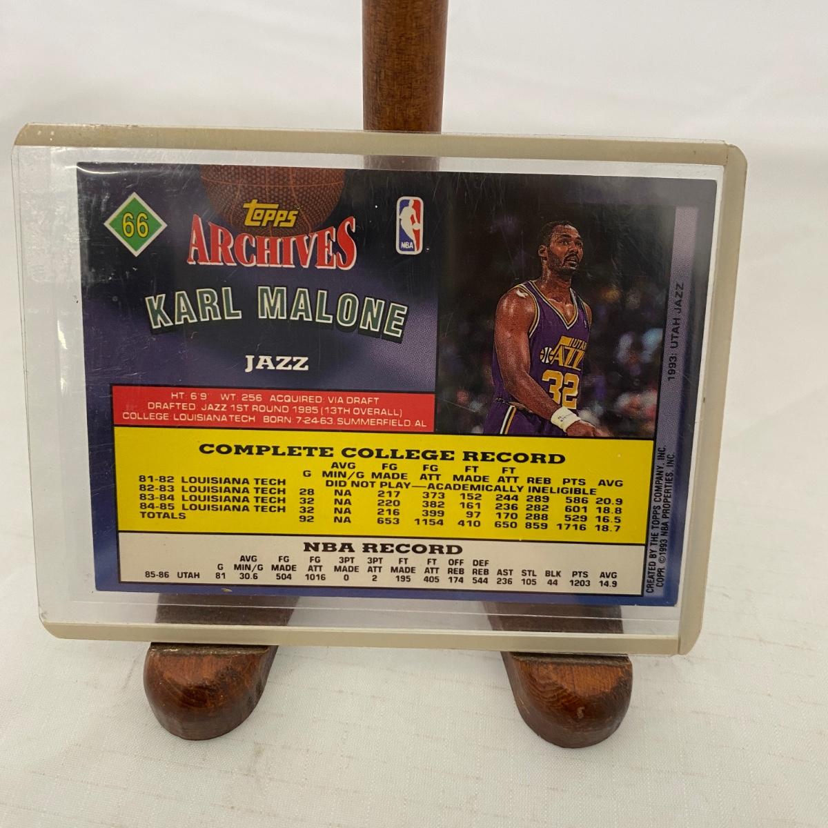 1993 Utah Jazz Basketball card of Karl Malone. Please see photos for details and condition. ::: Shipping is available on this lot. If you require shipping you must let us know at the close of the auction. We will coordinate with you after the item has been won. Shipping fees will include insurance up to or exceeding the value of all items being mailed. If you have any questions regarding this lot please contact the auctioneer either via this website, by direct email or by phone. PICK UP TIMES and other important information can be found in the TERMS and DESCRIPTION of the auction. Please take a look for pertinent information. Thanks!