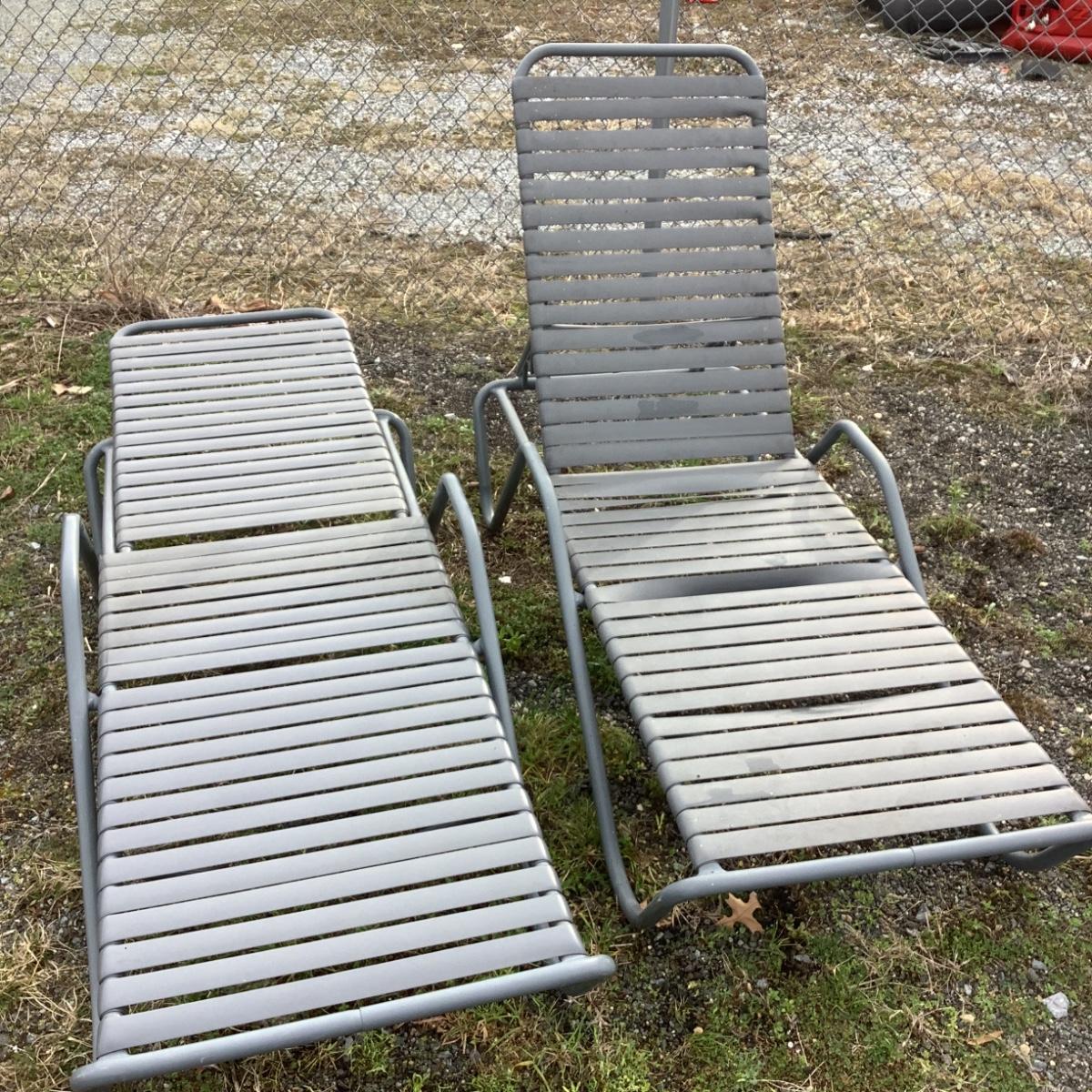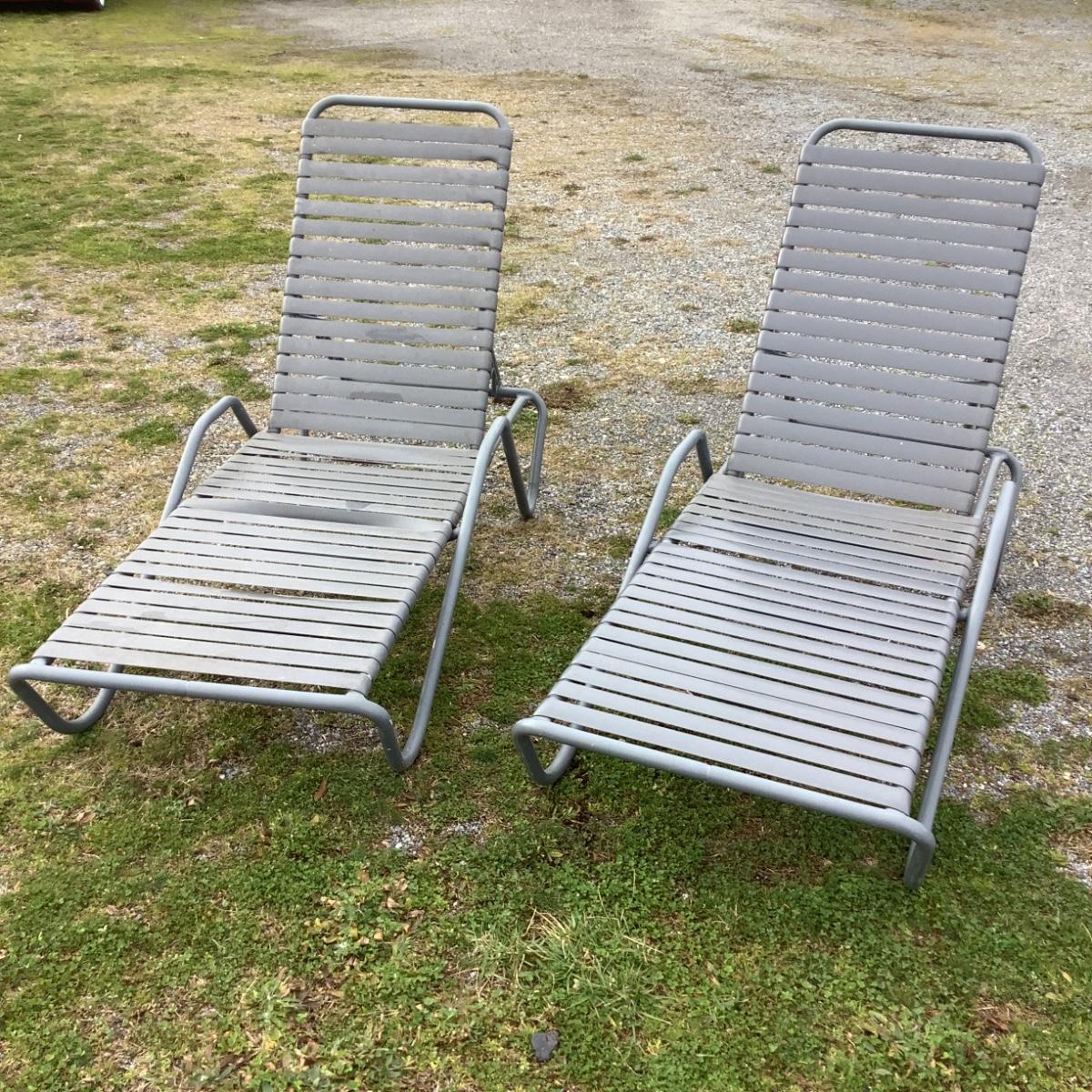 Pair of Outdoor Pool Patio Chaise Lounge Chairs with Covers.