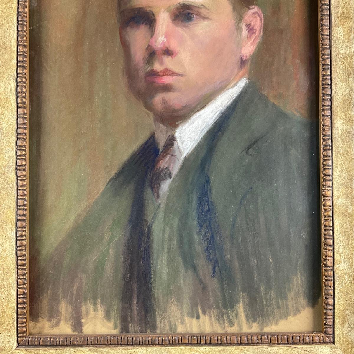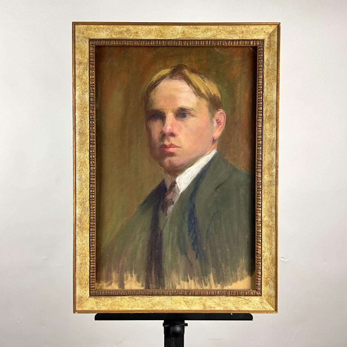 035 American School, Portrait Pastel On Paper "Young Gentleman" Circa 1920-1930