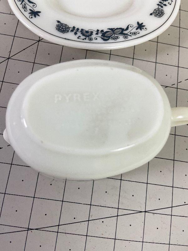 #133 Pyrex Gravy Boat with Tray Old Town Blue