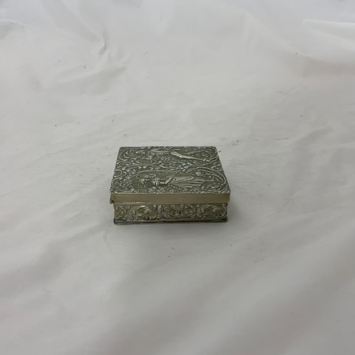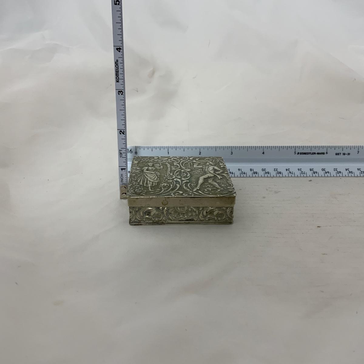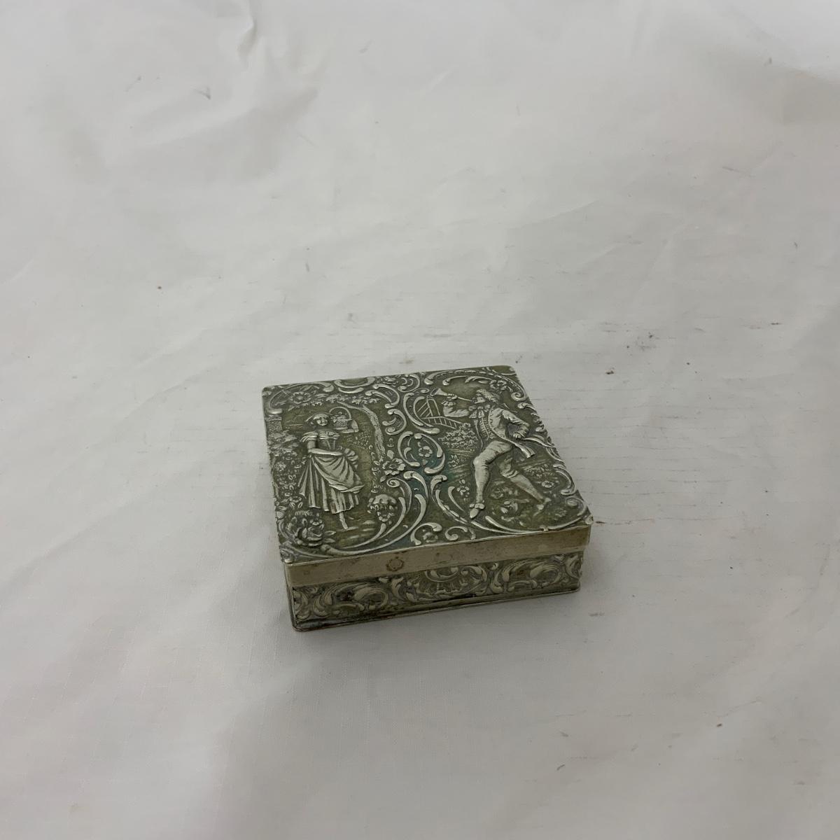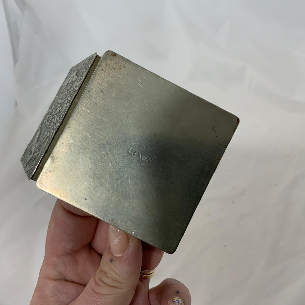 Attractive square Silver trinket Box. TW: 73g. Acid tested. Well taken care of and in nice condition. Please see photos for details and condition. ::: Shipping is available on this lot. If you require shipping you must let us know at the close of the auction. We will coordinate with you after the item has been won. Shipping fees will include insurance up to or exceeding the value of all items being mailed. If you have any questions regarding this lot please contact the auctioneer either via this website, by direct email or by phone. PICK UP TIMES and other important information can be found in the TERMS and DESCRIPTION of the auction. Please take a look for pertinent information. Thanks!