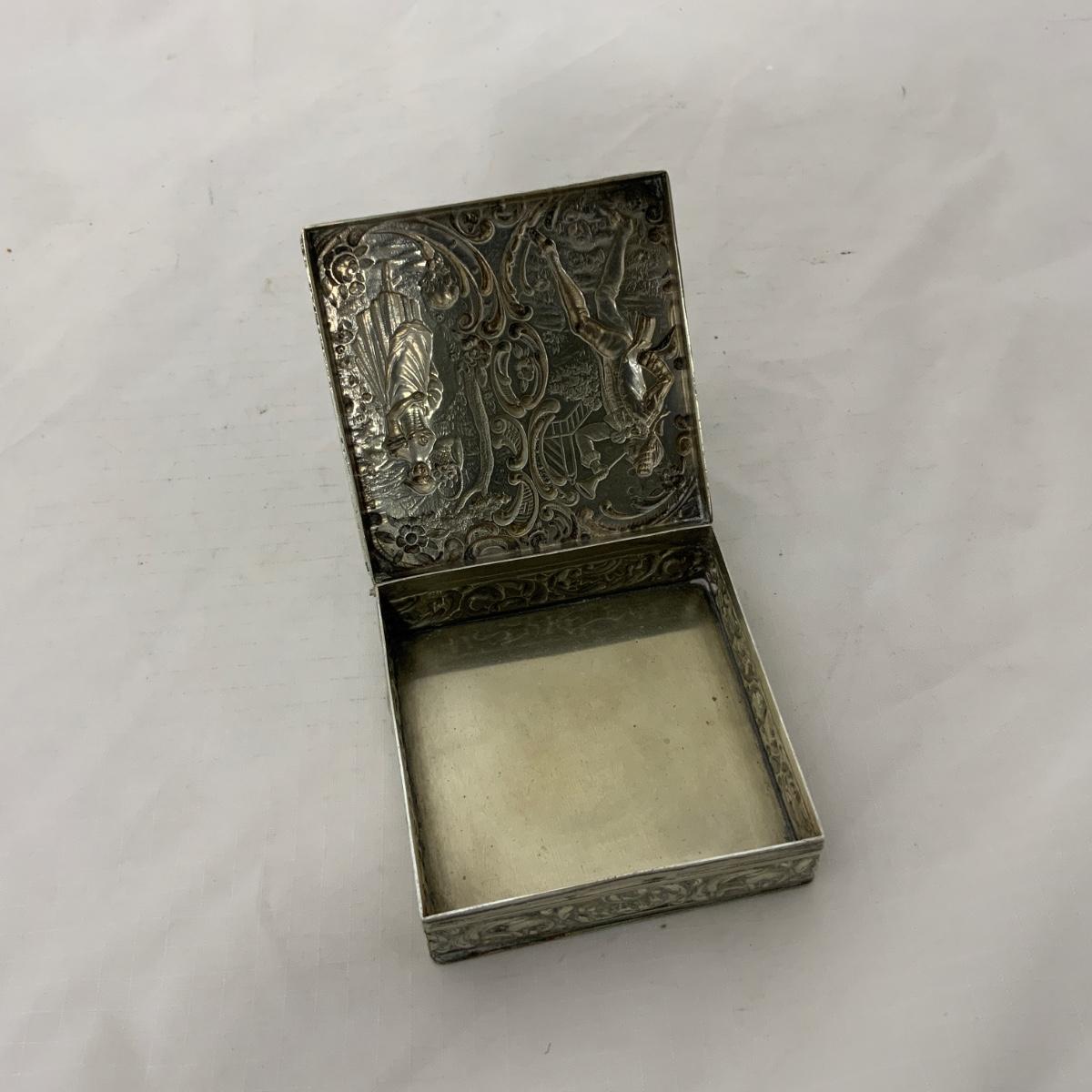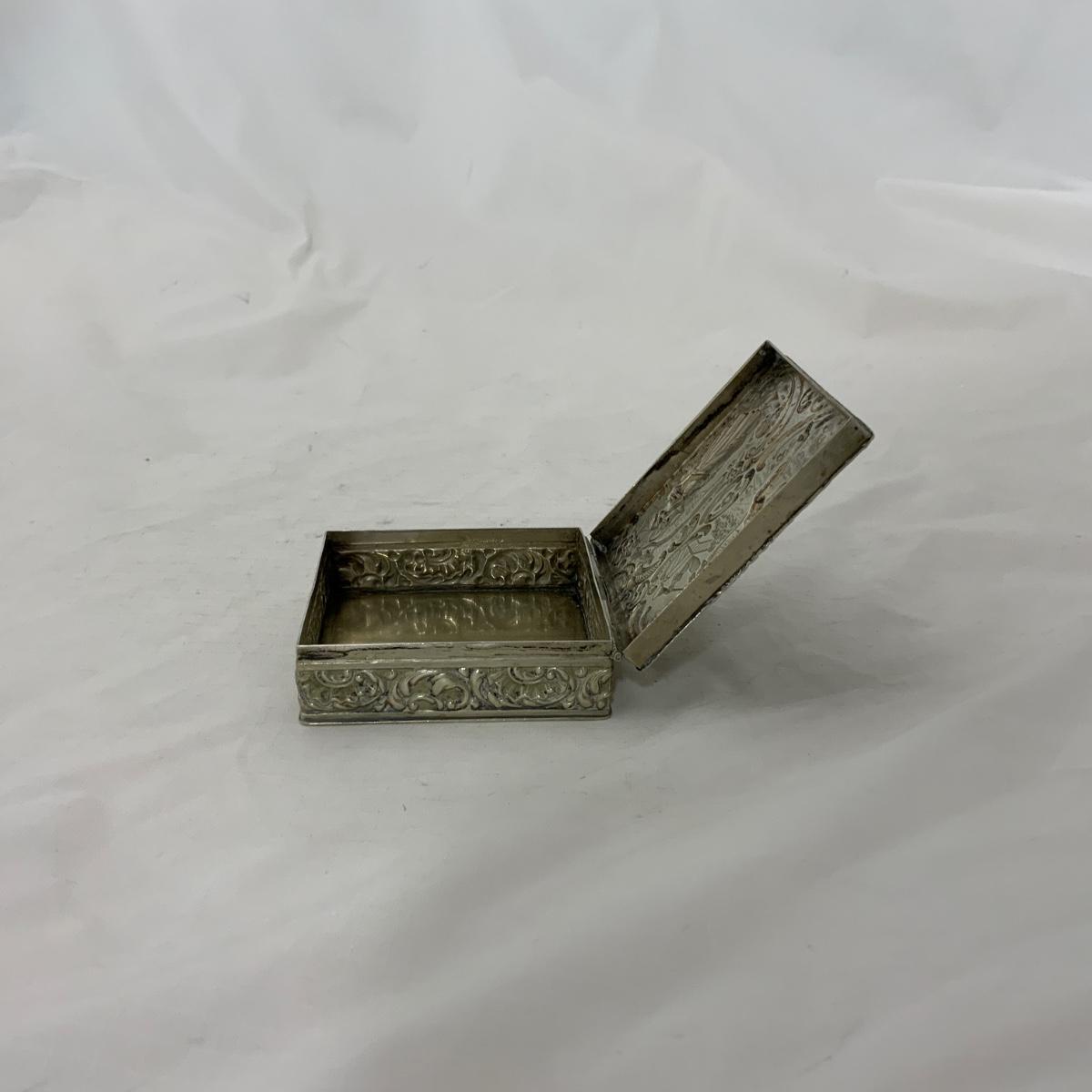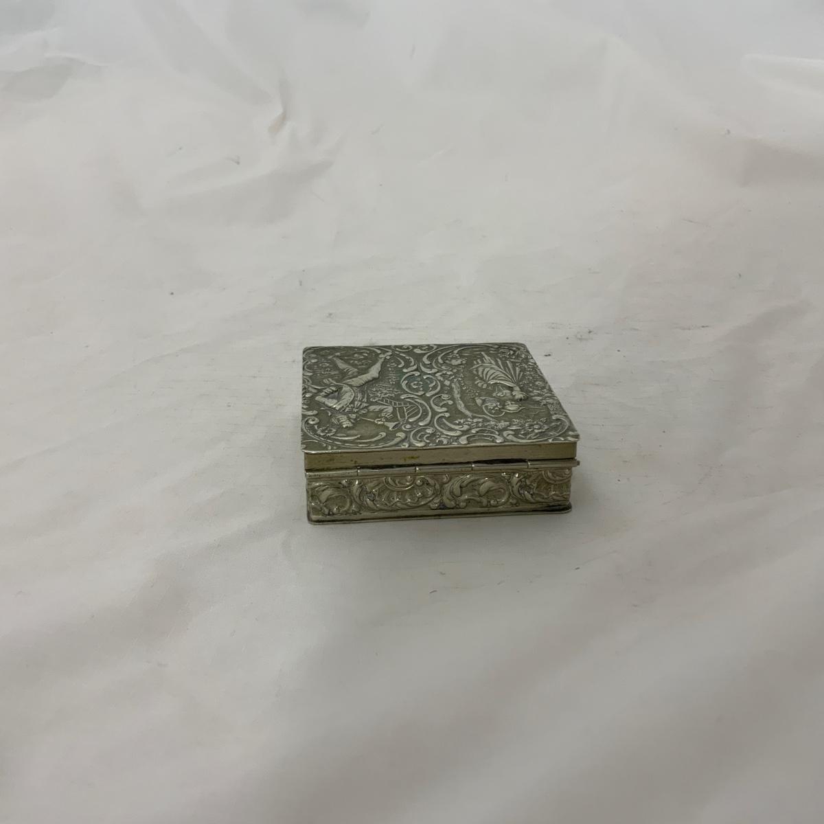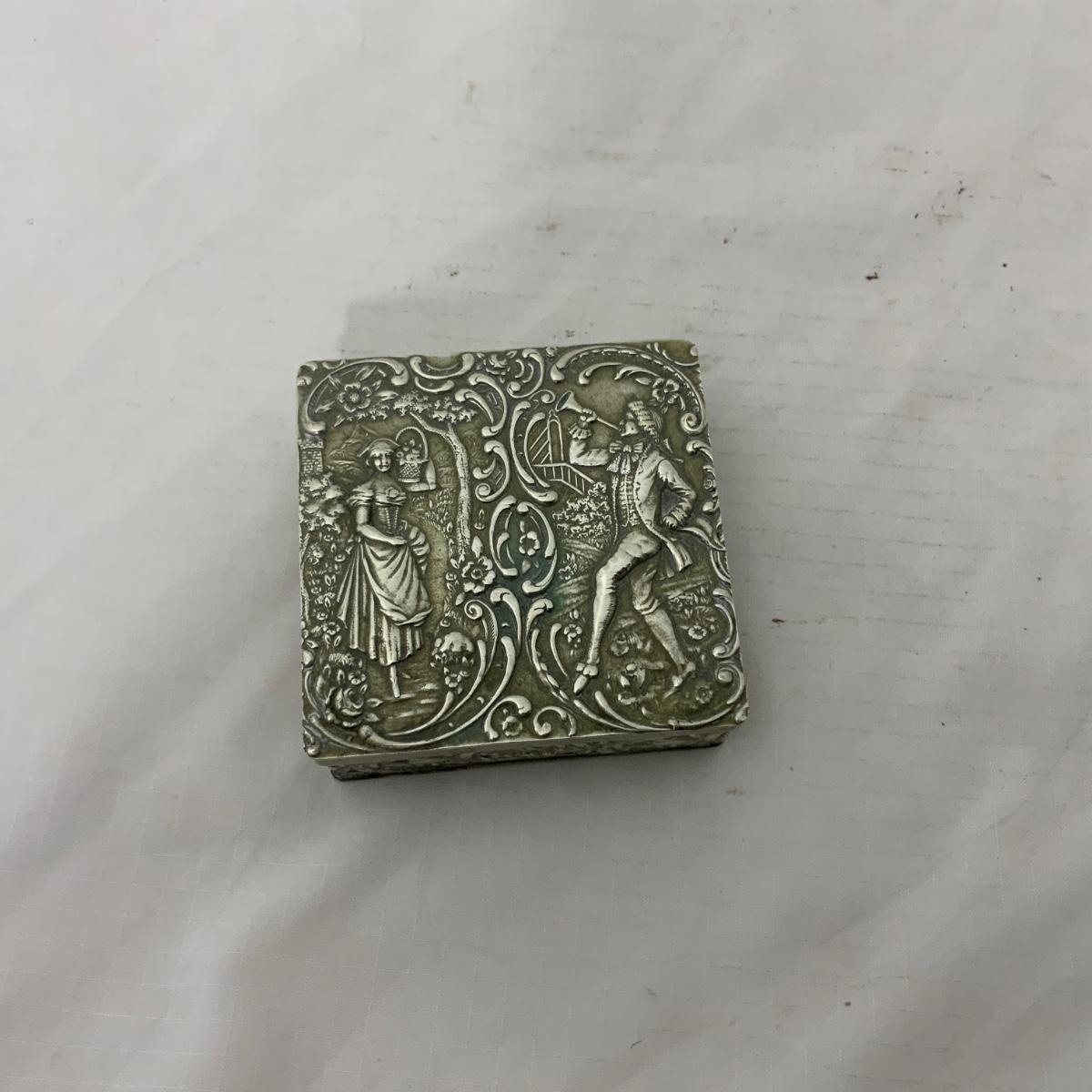 Attractive square Silver trinket Box. TW: 73g. Acid tested. Well taken care of and in nice condition. Please see photos for details and condition. ::: Shipping is available on this lot. If you require shipping you must let us know at the close of the auction. We will coordinate with you after the item has been won. Shipping fees will include insurance up to or exceeding the value of all items being mailed. If you have any questions regarding this lot please contact the auctioneer either via this website, by direct email or by phone. PICK UP TIMES and other important information can be found in the TERMS and DESCRIPTION of the auction. Please take a look for pertinent information. Thanks!