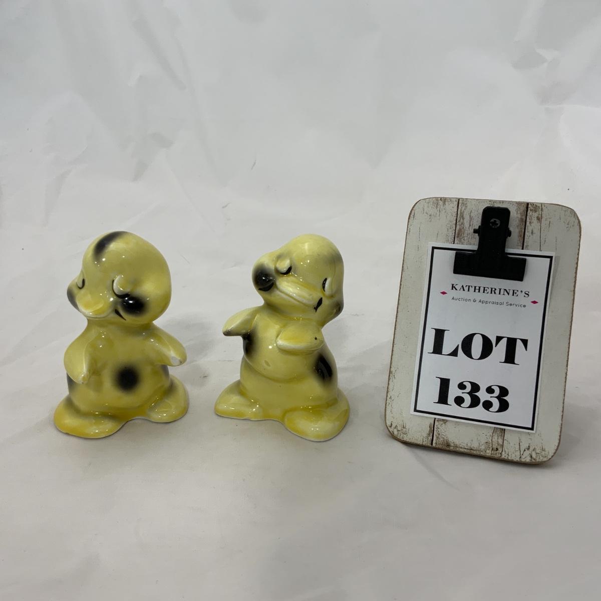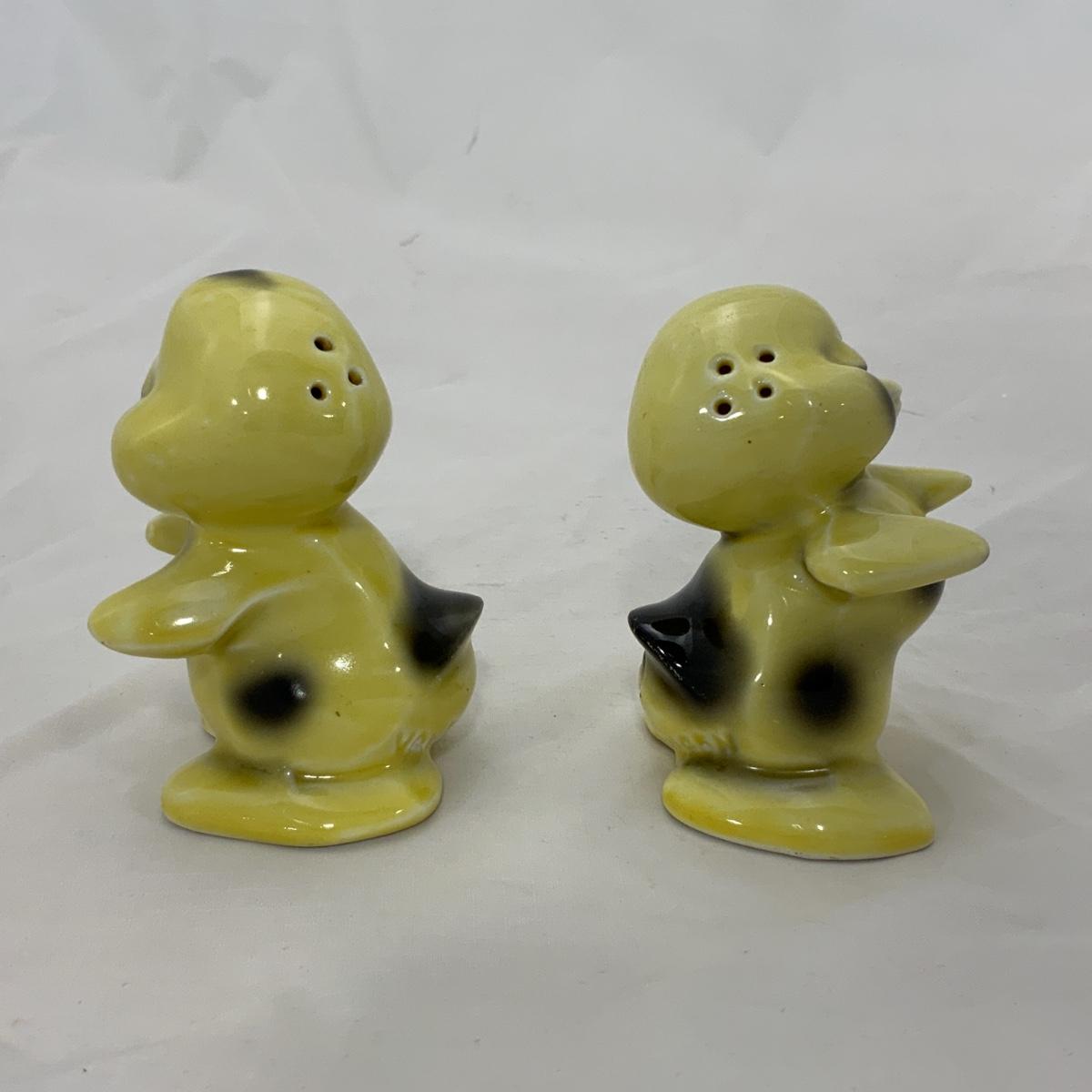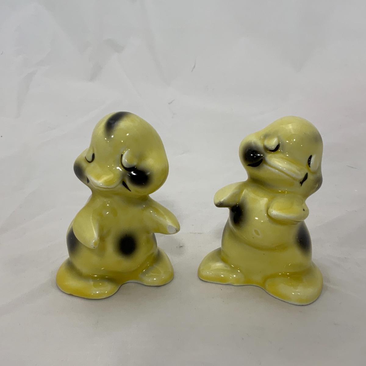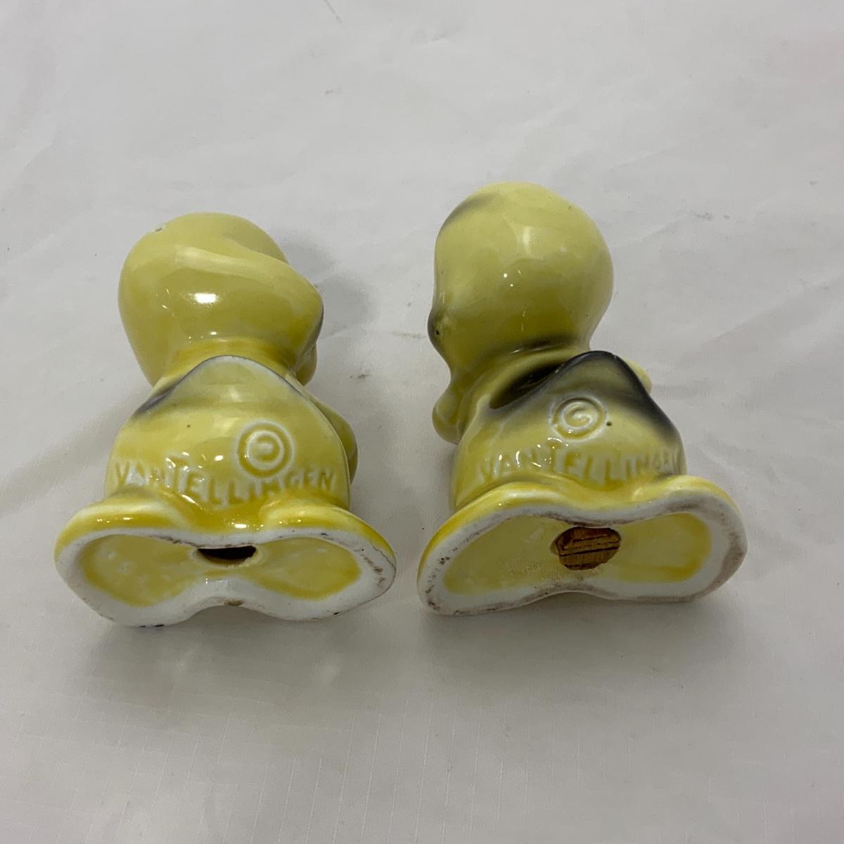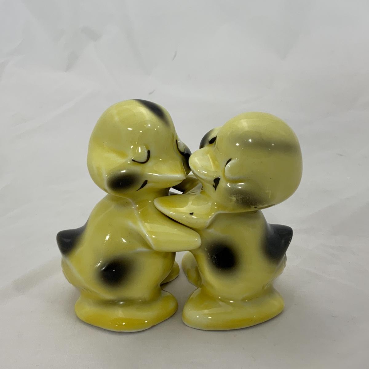 From the Estate of Peter and Alice Radovanovich: Precious set of 1950s Van Tellingen Duck Huggies. One of the ducks has a small chip on his hand. Please see photos for details and condition. ::: Shipping is available on this lot. If you require shipping you must let us know at the close of the auction. We will coordinate with you after the item has been won. Shipping fees will include insurance up to or exceeding the value of all items being mailed. If you have any questions regarding this lot please contact the auctioneer either via this website, by direct email or by phone. PICK UP TIMES and other important information can be found in the TERMS and DESCRIPTION of the auction. Please take a look for pertinent information. Thanks!