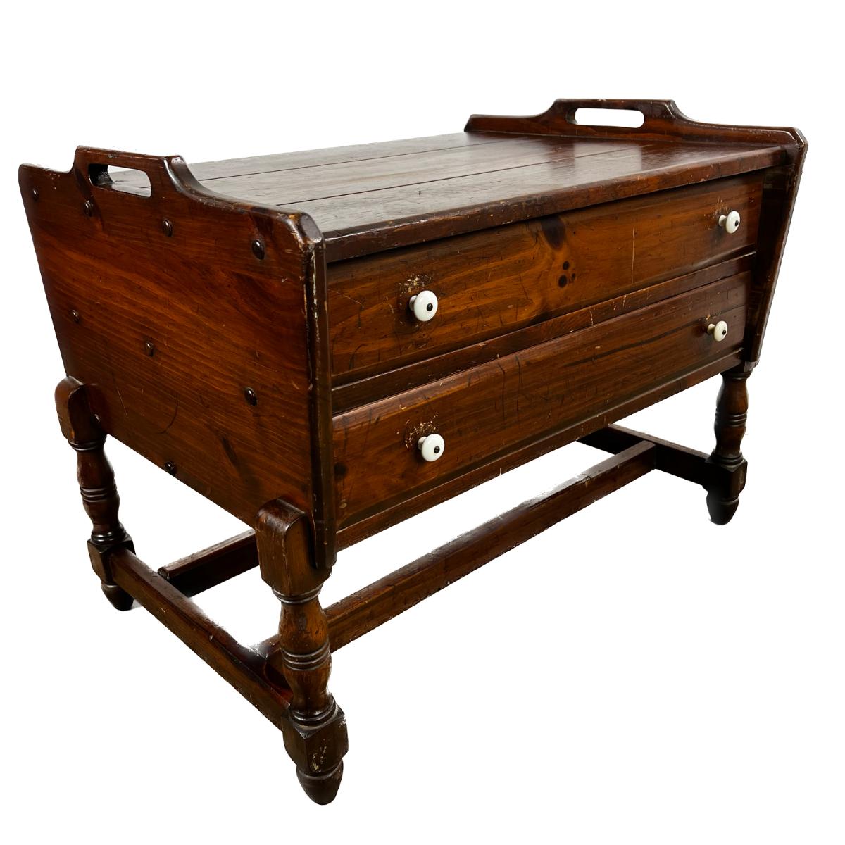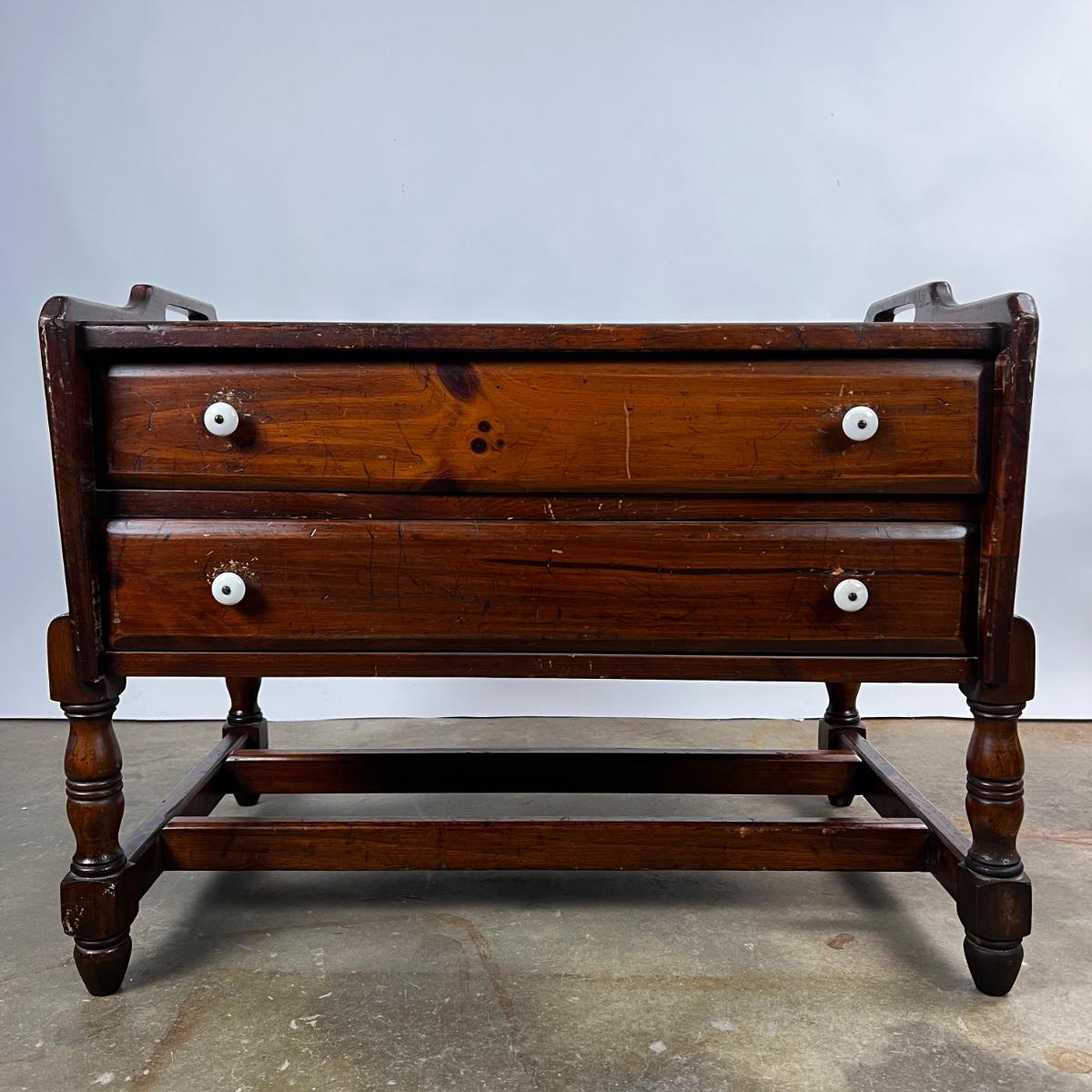 Pine Coffee Table 2 Drawers. Table has two handles and bottom shelving for books/magazines.