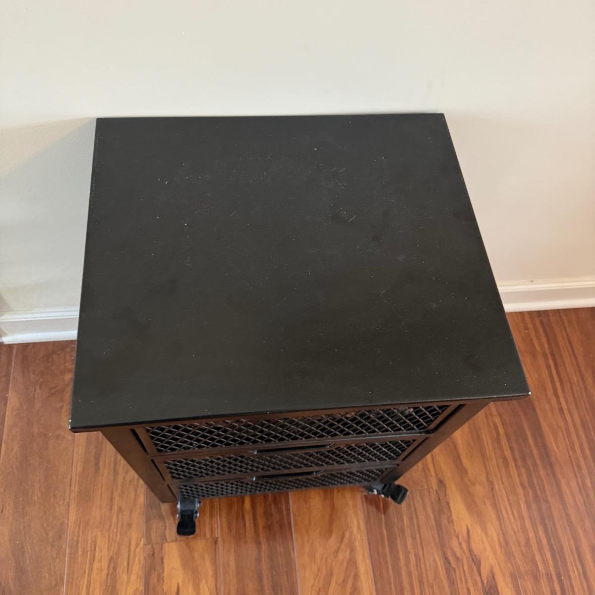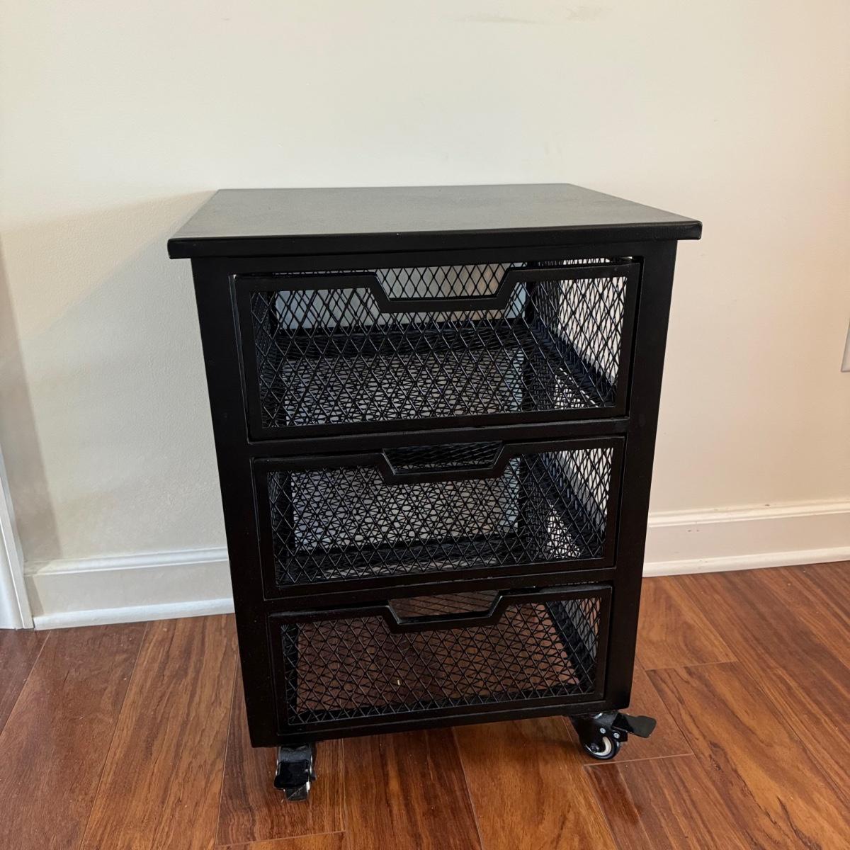 3 pull out drawers with flat top and on wheels, perfect addition to any office for additional storage space. It is 24"H x 18"W x 16"D.