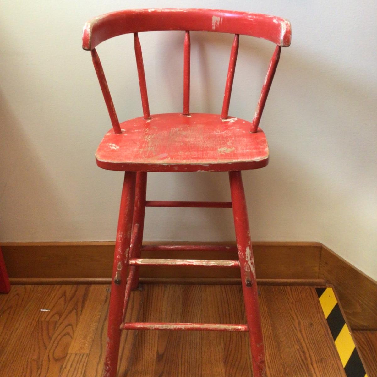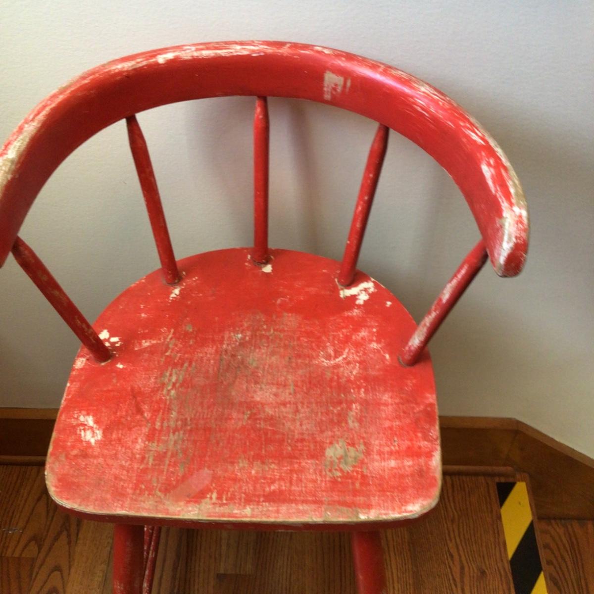 Chair is 31” tall and 13” wide. Signs of use and wear.