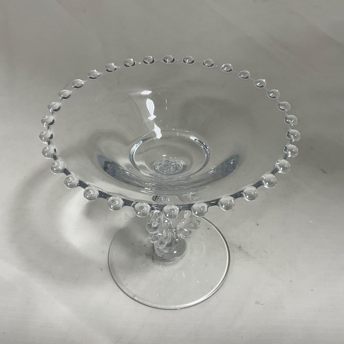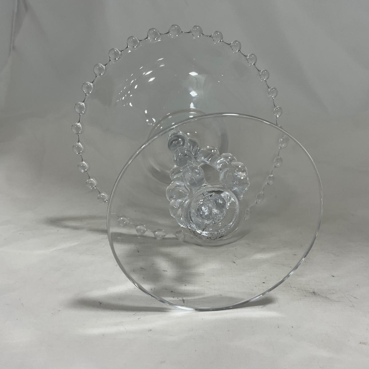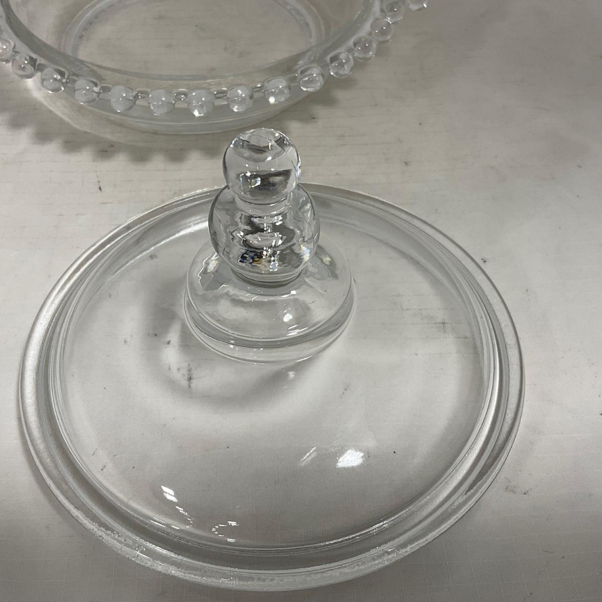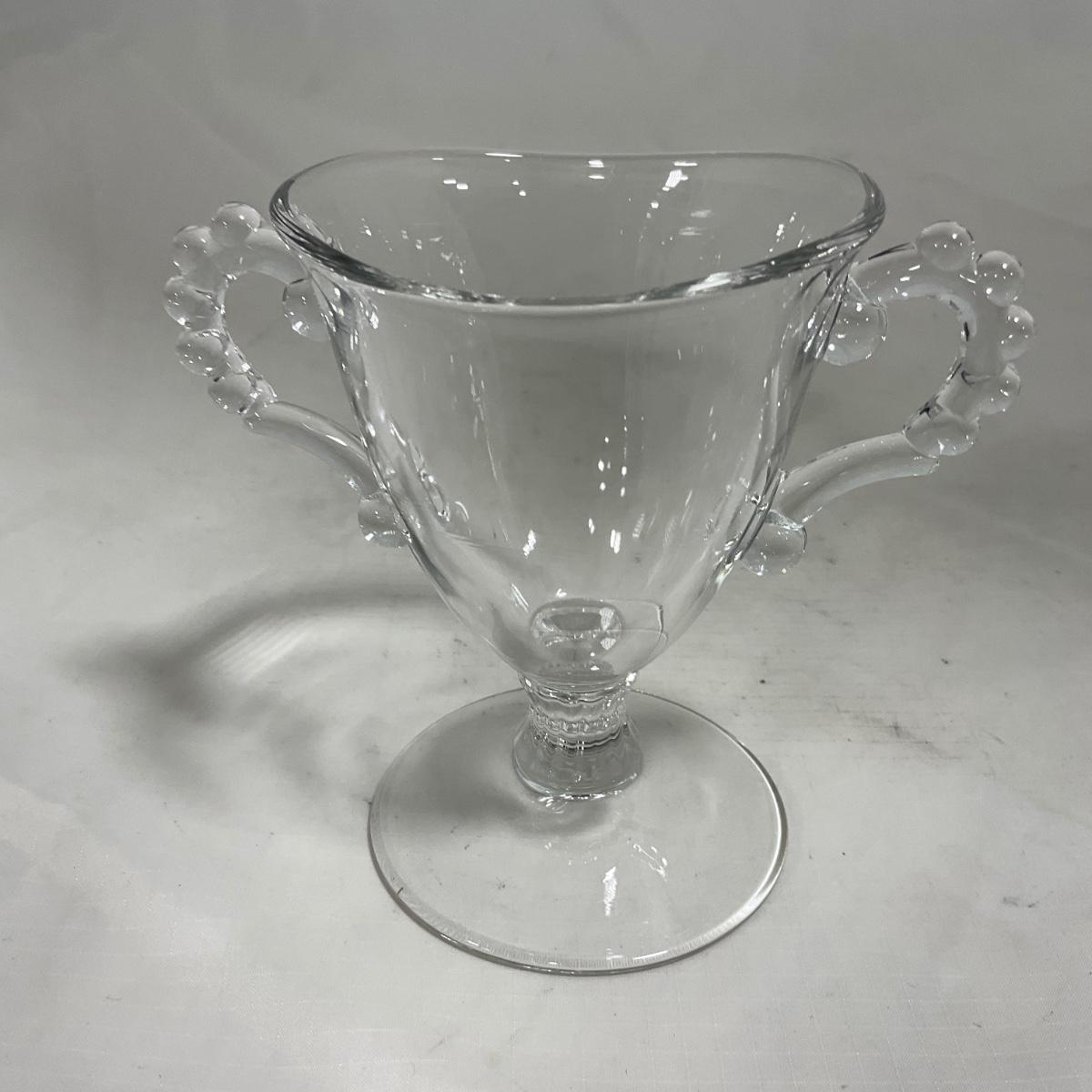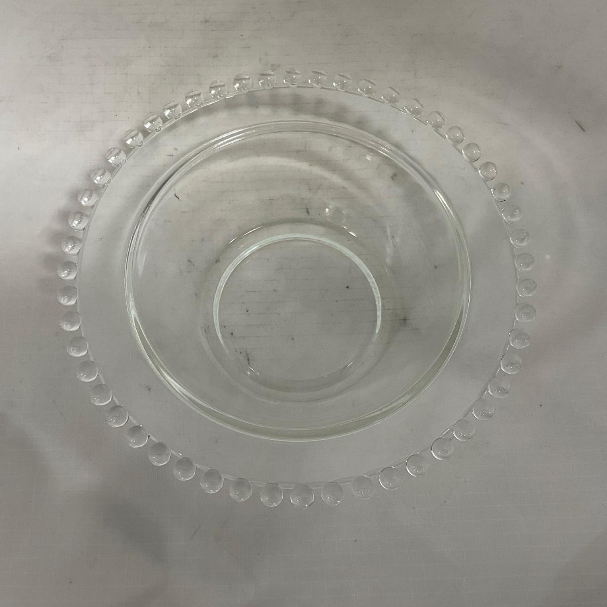 Candlewick styled clear glass set. Includes a larger sized covered butter dish a smaller sized covered butter dish, one pedestal dish, and a creamer and sugar set. This set is in good shape. Please see photos for details and condition. ::: Shipping is available on this lot. If you require shipping you must let us know at the close of the auction. We will coordinate with you after the item has been won. Shipping fees will include insurance up to or exceeding the value of all items being mailed. If you have any questions regarding this lot please contact the auctioneer either via this website, by direct email or by phone. PICK UP TIMES and other important information can be found in the TERMS and DESCRIPTION of the auction. Please take a look for pertinent information. Thanks!