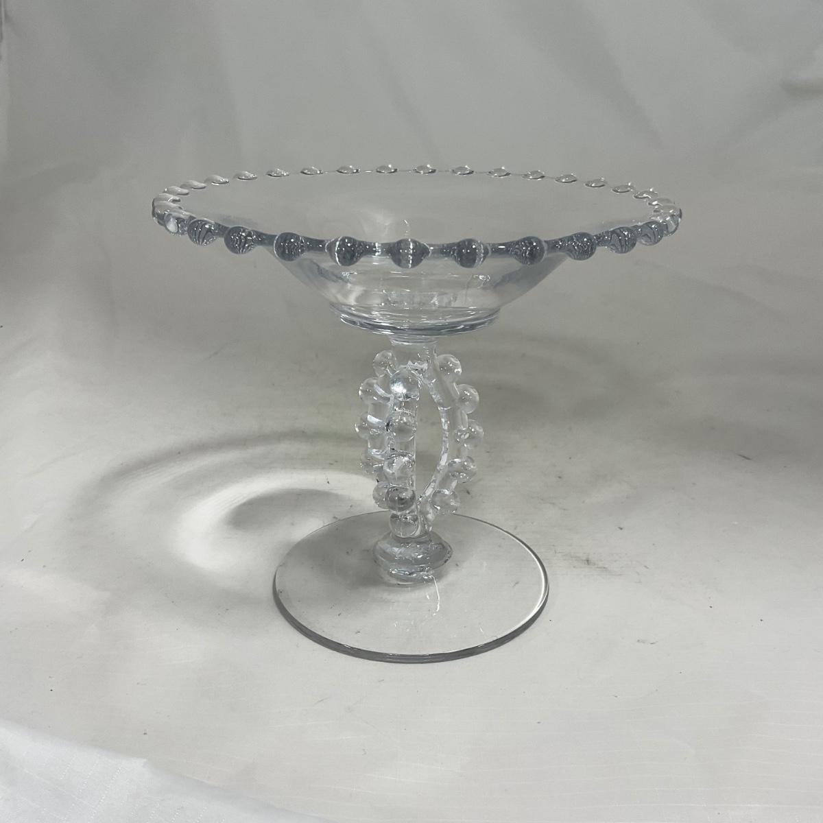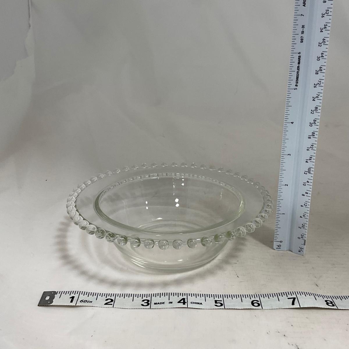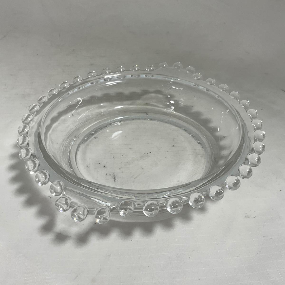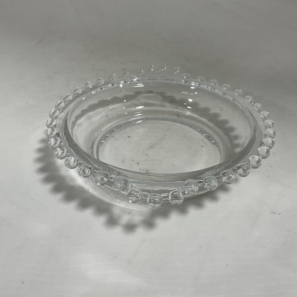 Candlewick styled clear glass set. Includes a larger sized covered butter dish a smaller sized covered butter dish, one pedestal dish, and a creamer and sugar set. This set is in good shape. Please see photos for details and condition. ::: Shipping is available on this lot. If you require shipping you must let us know at the close of the auction. We will coordinate with you after the item has been won. Shipping fees will include insurance up to or exceeding the value of all items being mailed. If you have any questions regarding this lot please contact the auctioneer either via this website, by direct email or by phone. PICK UP TIMES and other important information can be found in the TERMS and DESCRIPTION of the auction. Please take a look for pertinent information. Thanks!