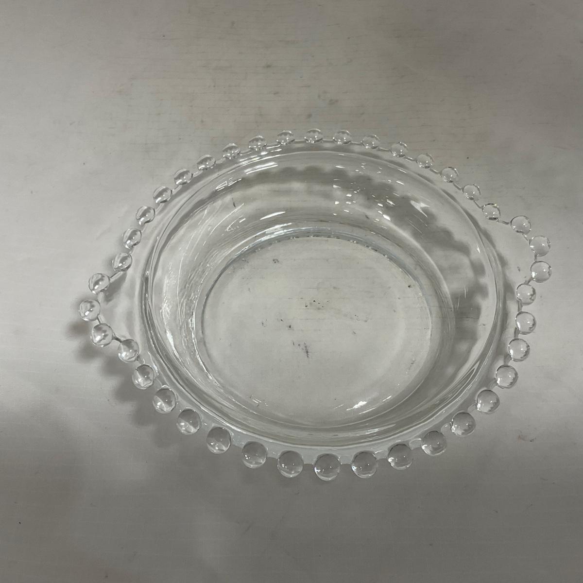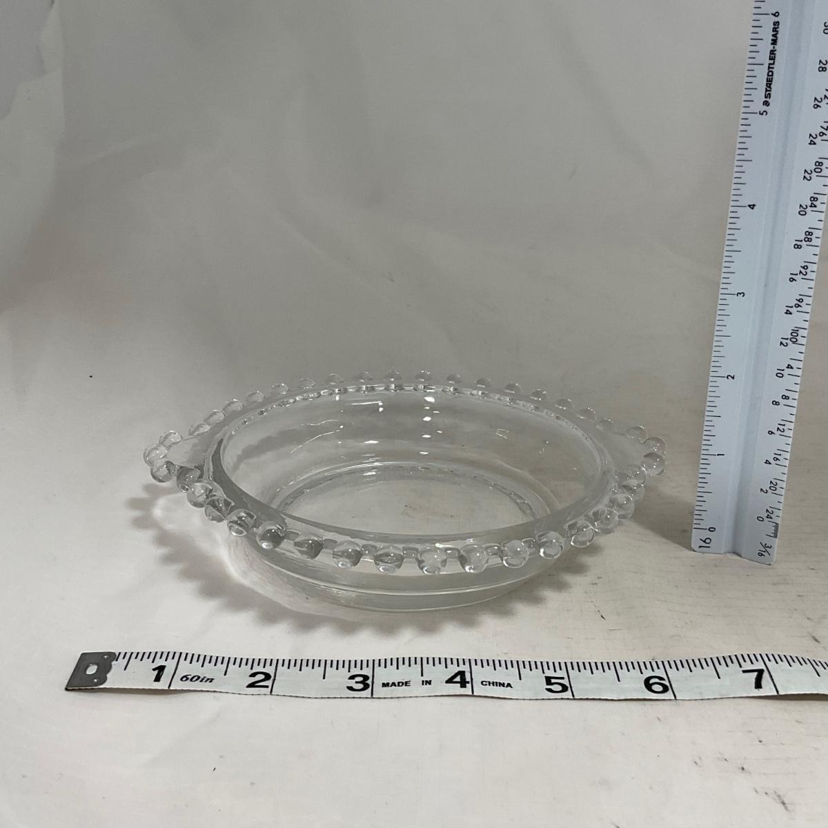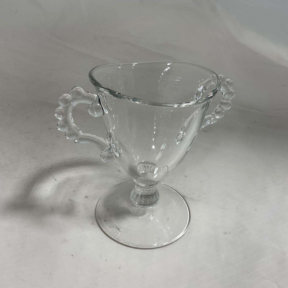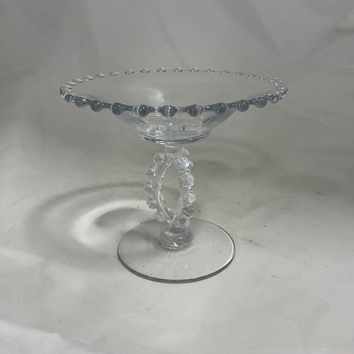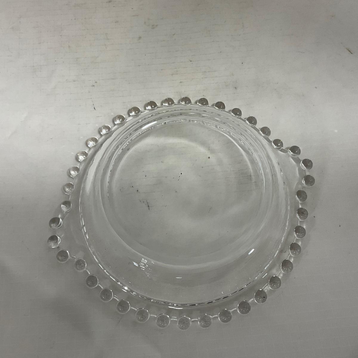 Candlewick styled clear glass set. Includes a larger sized covered butter dish a smaller sized covered butter dish, one pedestal dish, and a creamer and sugar set. This set is in good shape. Please see photos for details and condition. ::: Shipping is available on this lot. If you require shipping you must let us know at the close of the auction. We will coordinate with you after the item has been won. Shipping fees will include insurance up to or exceeding the value of all items being mailed. If you have any questions regarding this lot please contact the auctioneer either via this website, by direct email or by phone. PICK UP TIMES and other important information can be found in the TERMS and DESCRIPTION of the auction. Please take a look for pertinent information. Thanks!