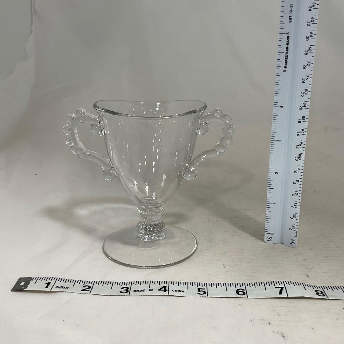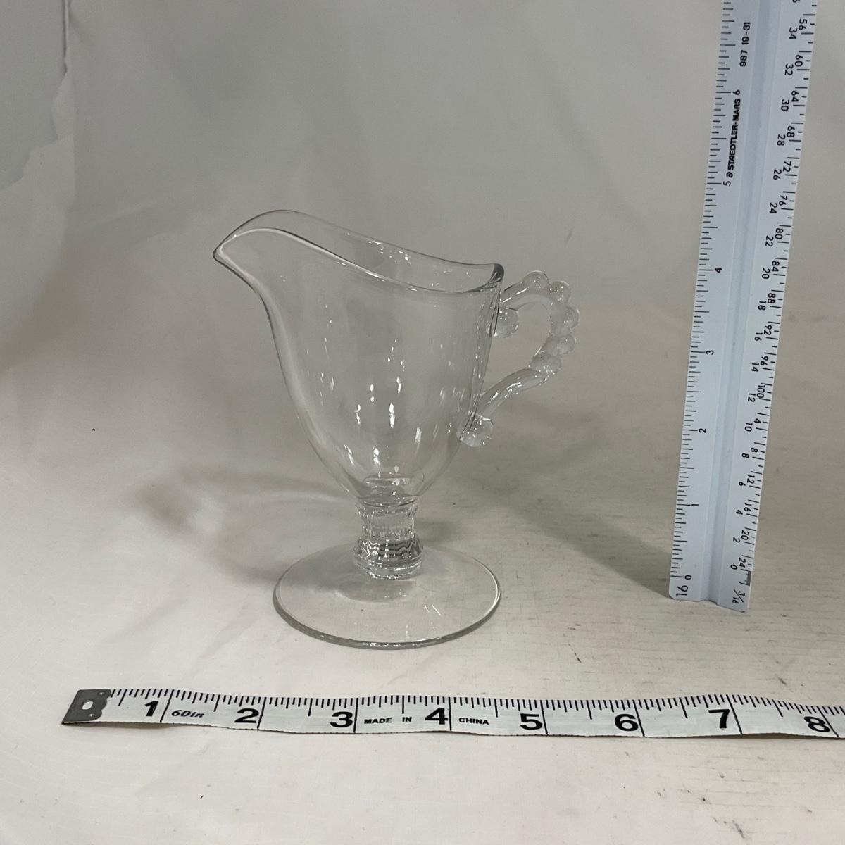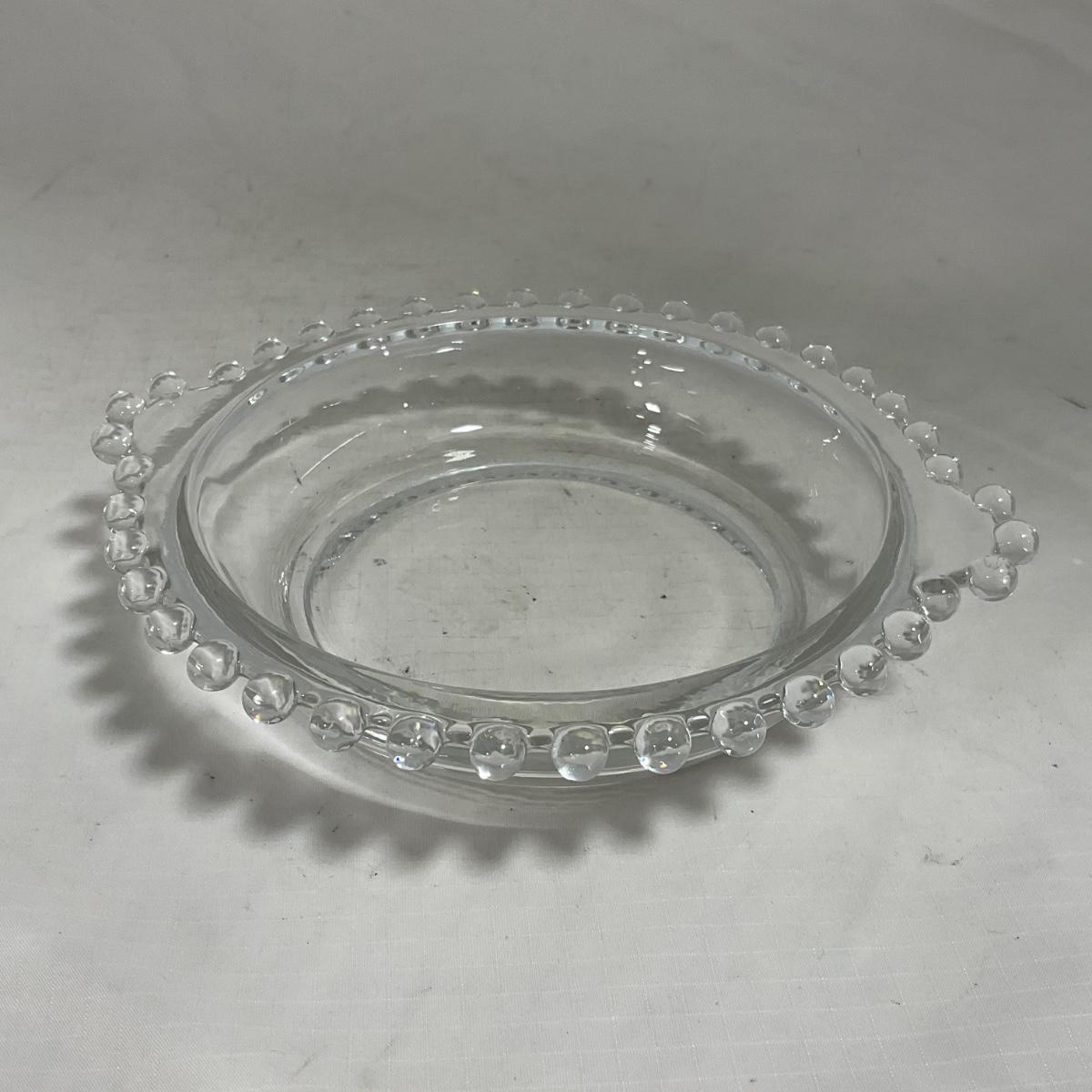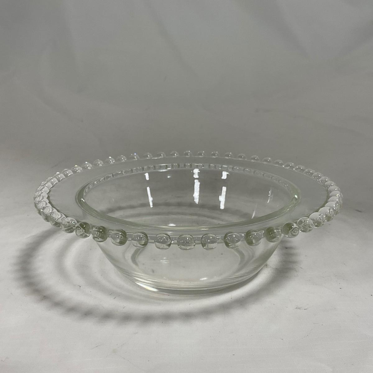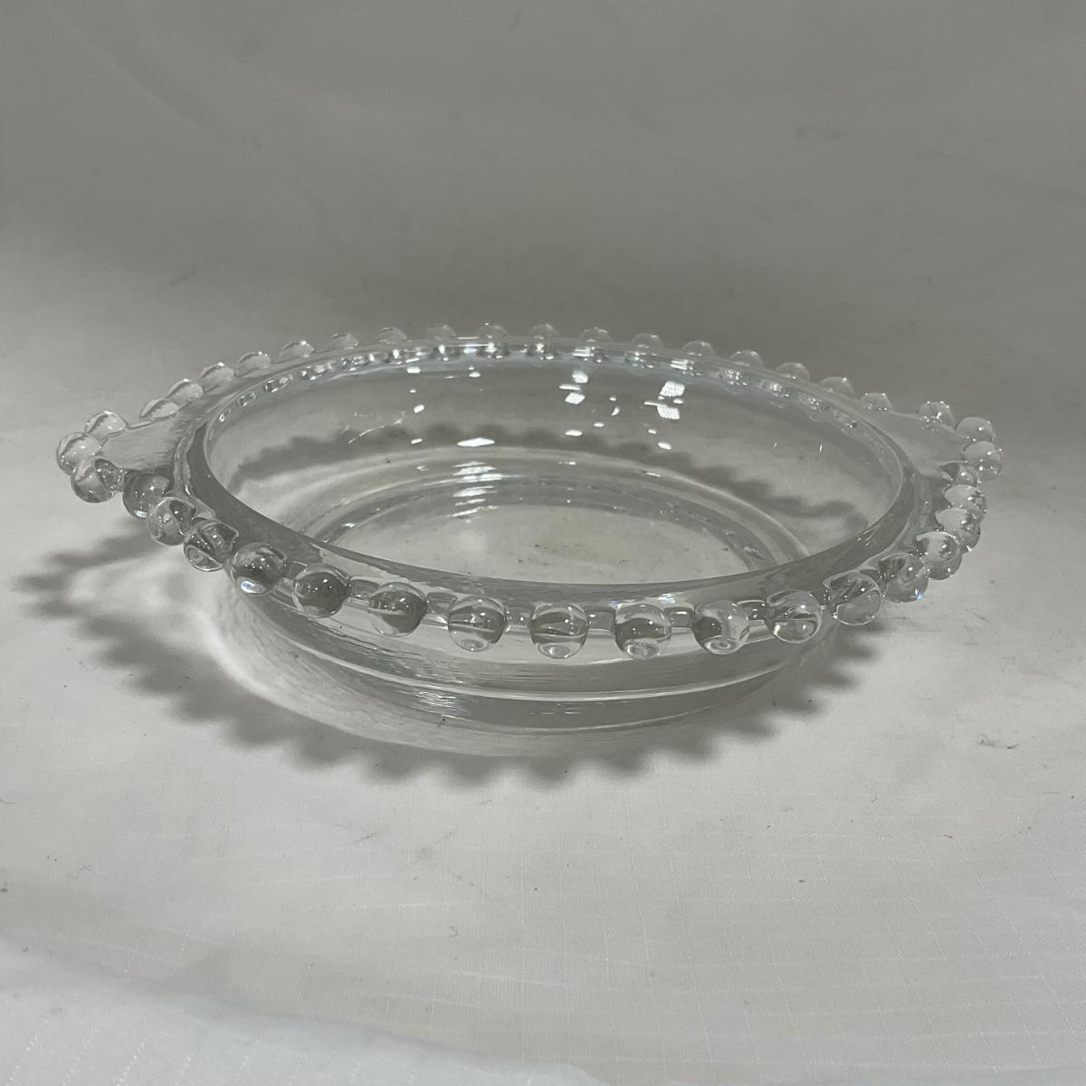 Candlewick styled clear glass set. Includes a larger sized covered butter dish a smaller sized covered butter dish, one pedestal dish, and a creamer and sugar set. This set is in good shape. Please see photos for details and condition. ::: Shipping is available on this lot. If you require shipping you must let us know at the close of the auction. We will coordinate with you after the item has been won. Shipping fees will include insurance up to or exceeding the value of all items being mailed. If you have any questions regarding this lot please contact the auctioneer either via this website, by direct email or by phone. PICK UP TIMES and other important information can be found in the TERMS and DESCRIPTION of the auction. Please take a look for pertinent information. Thanks!