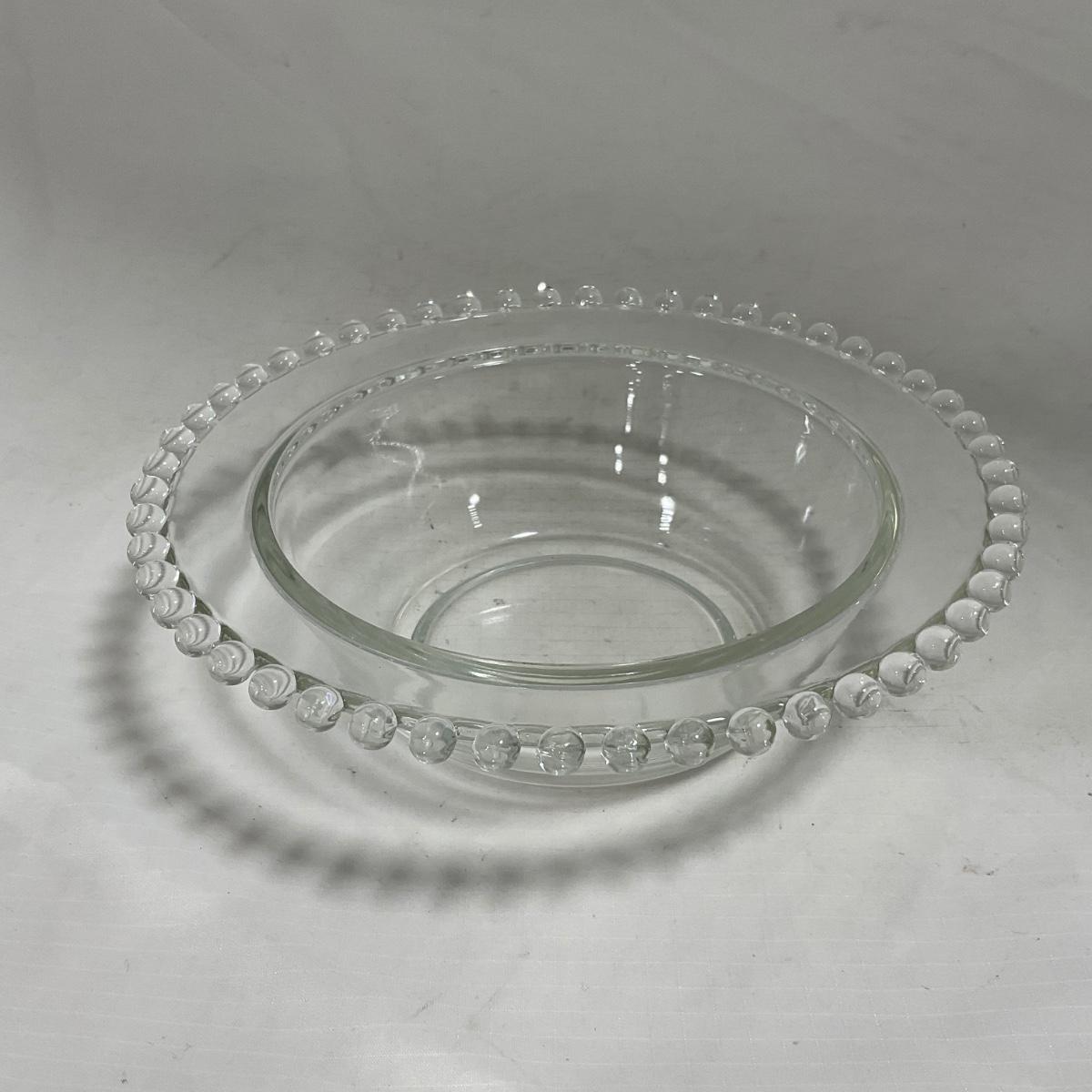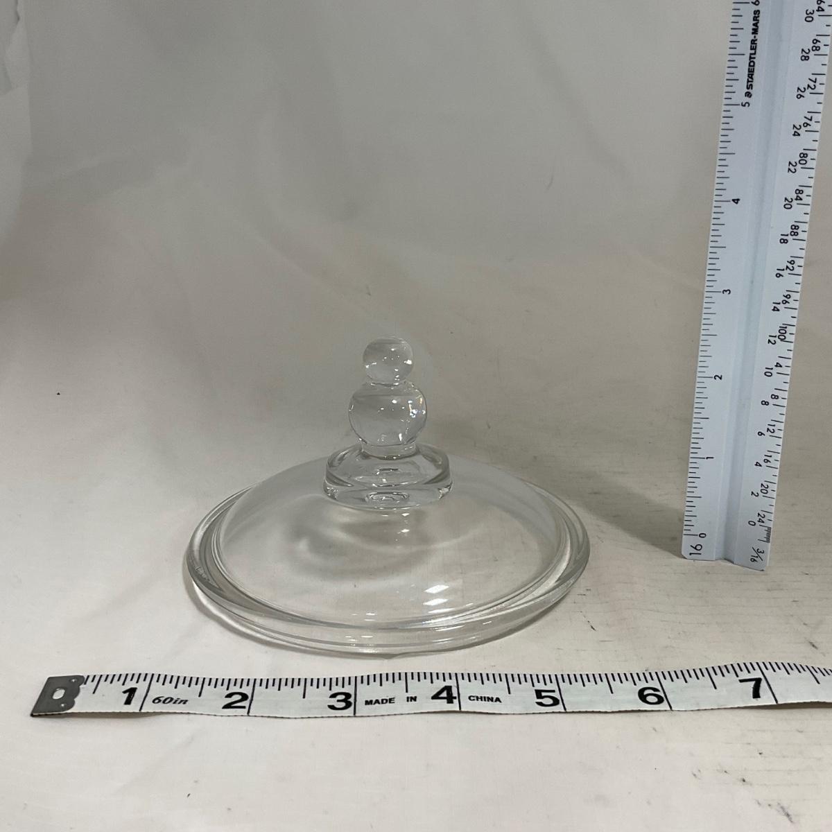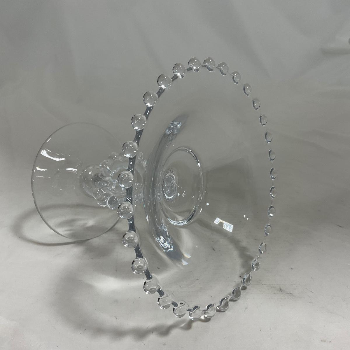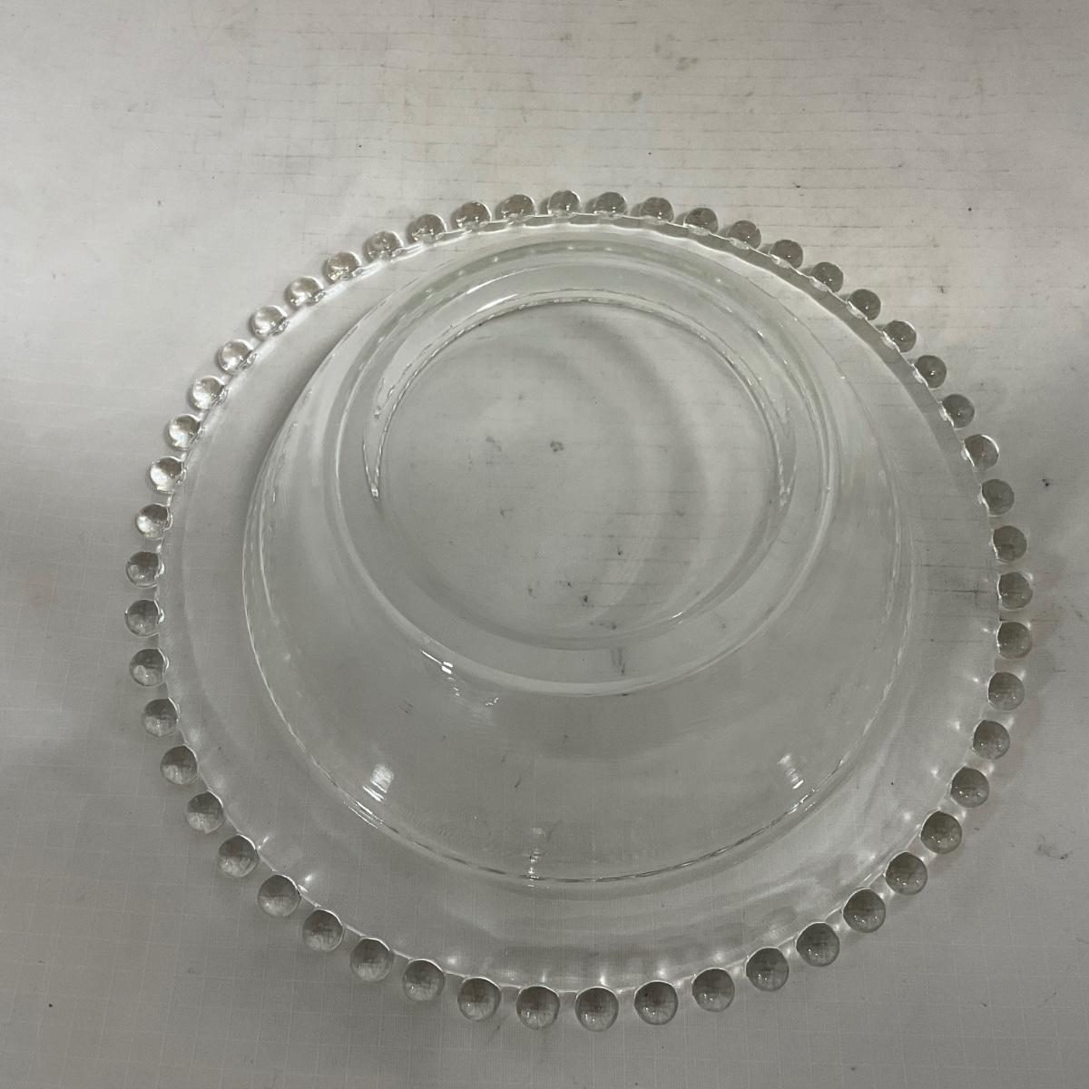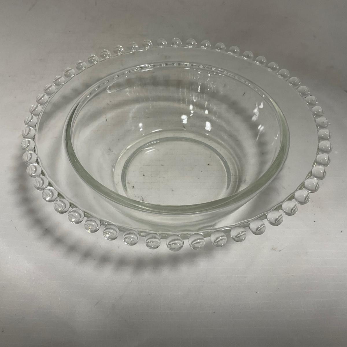 Candlewick styled clear glass set. Includes a larger sized covered butter dish a smaller sized covered butter dish, one pedestal dish, and a creamer and sugar set. This set is in good shape. Please see photos for details and condition. ::: Shipping is available on this lot. If you require shipping you must let us know at the close of the auction. We will coordinate with you after the item has been won. Shipping fees will include insurance up to or exceeding the value of all items being mailed. If you have any questions regarding this lot please contact the auctioneer either via this website, by direct email or by phone. PICK UP TIMES and other important information can be found in the TERMS and DESCRIPTION of the auction. Please take a look for pertinent information. Thanks!