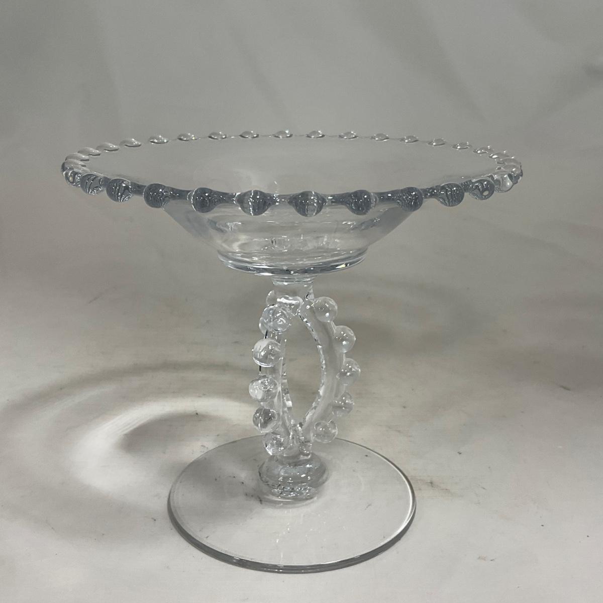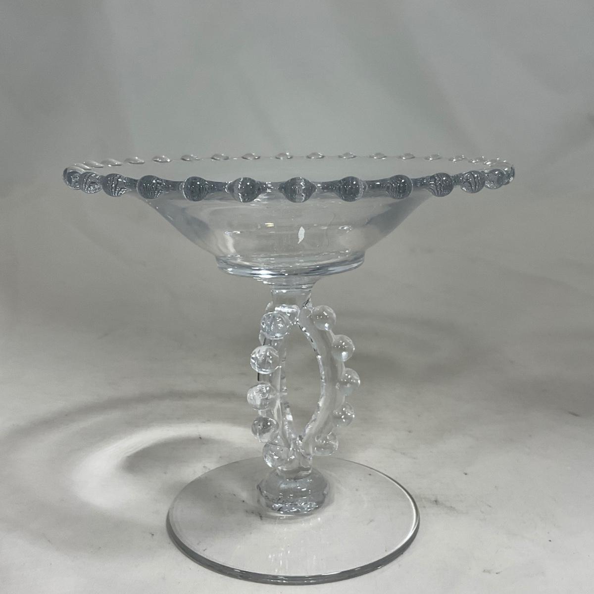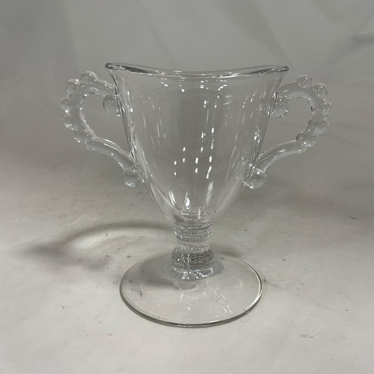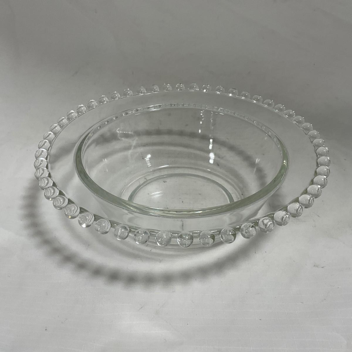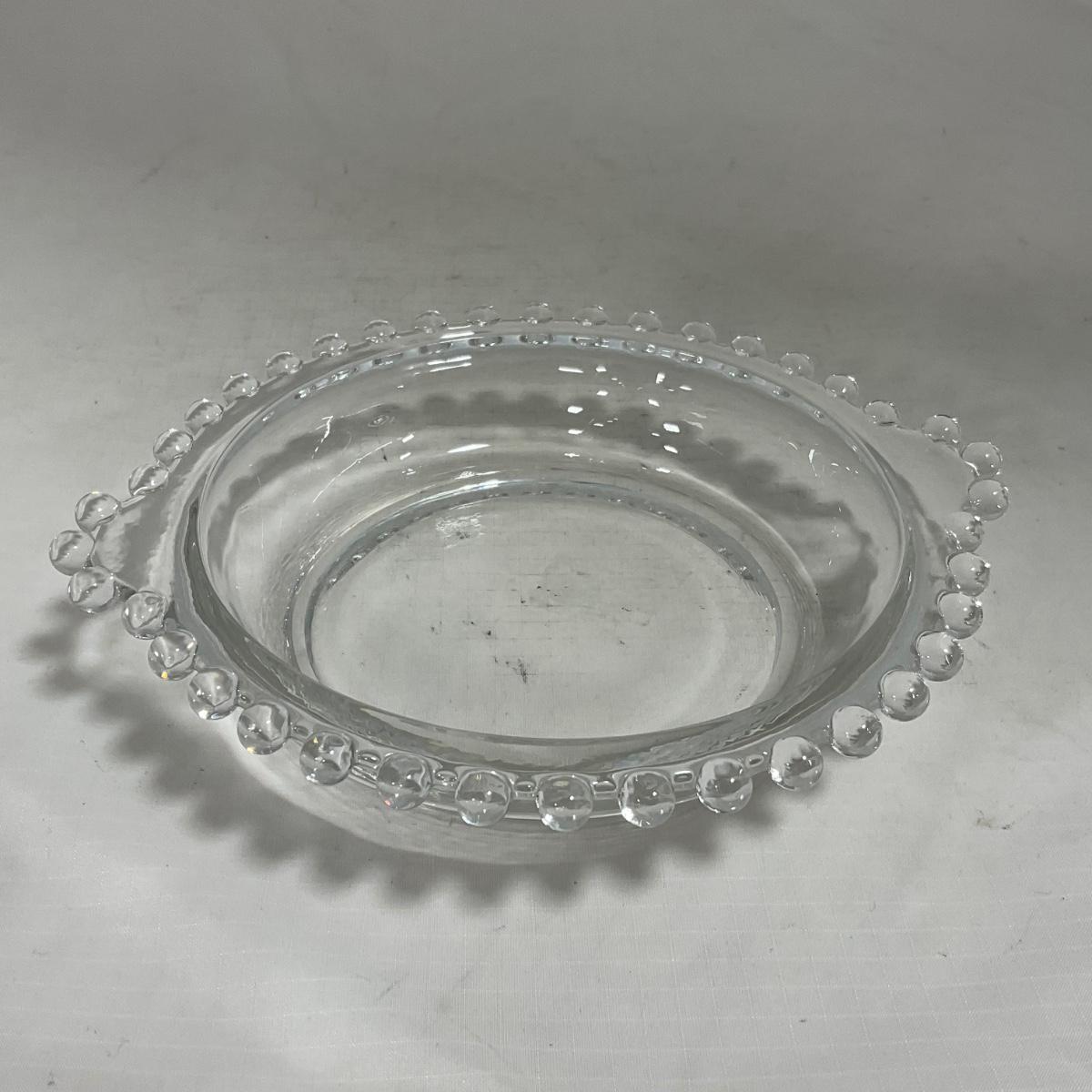 Candlewick styled clear glass set. Includes a larger sized covered butter dish a smaller sized covered butter dish, one pedestal dish, and a creamer and sugar set. This set is in good shape. Please see photos for details and condition. ::: Shipping is available on this lot. If you require shipping you must let us know at the close of the auction. We will coordinate with you after the item has been won. Shipping fees will include insurance up to or exceeding the value of all items being mailed. If you have any questions regarding this lot please contact the auctioneer either via this website, by direct email or by phone. PICK UP TIMES and other important information can be found in the TERMS and DESCRIPTION of the auction. Please take a look for pertinent information. Thanks!