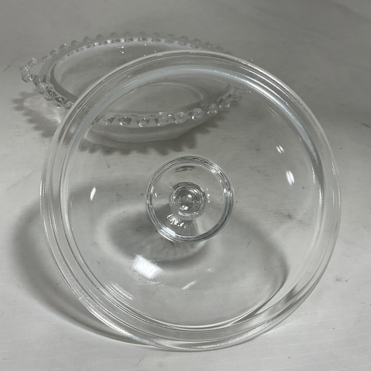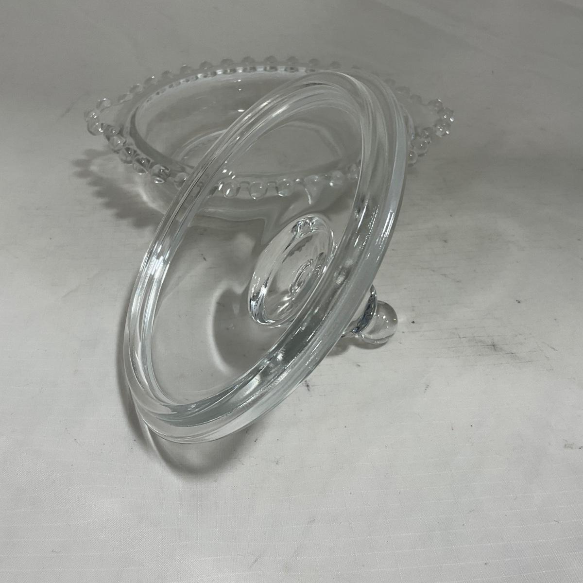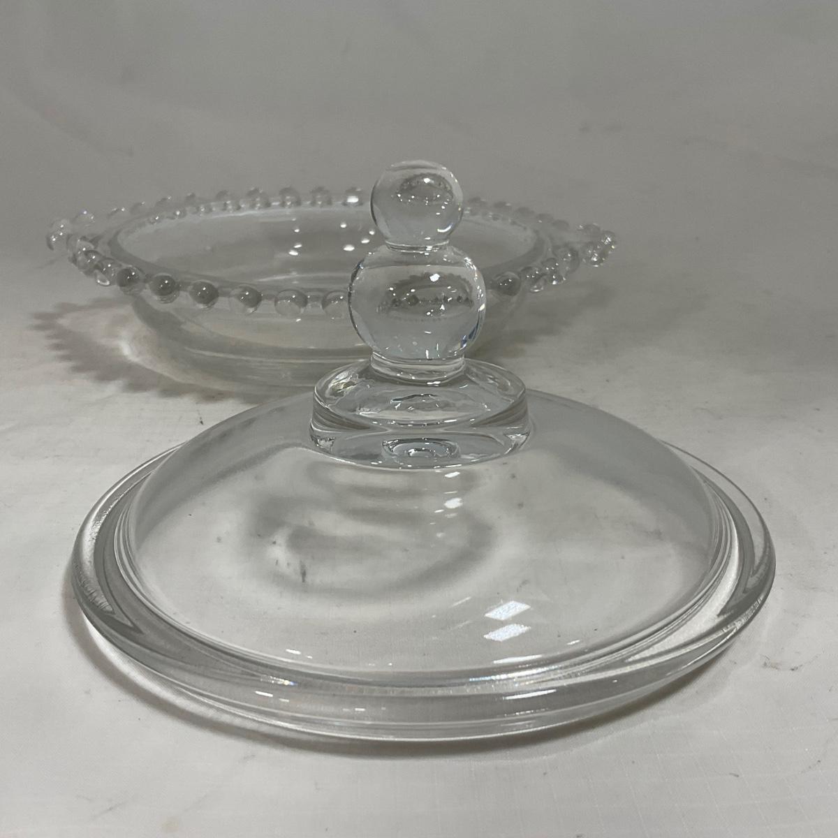 -134- Clear Glass | Candlewick Style | Two Covered Butter Dishes | Pedestal Dish | Creamer & Sugar