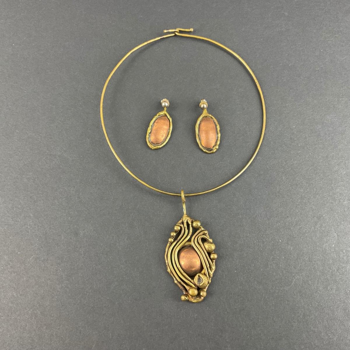 -134- COPPER | Unmarked Unique Necklace & Earrings Set