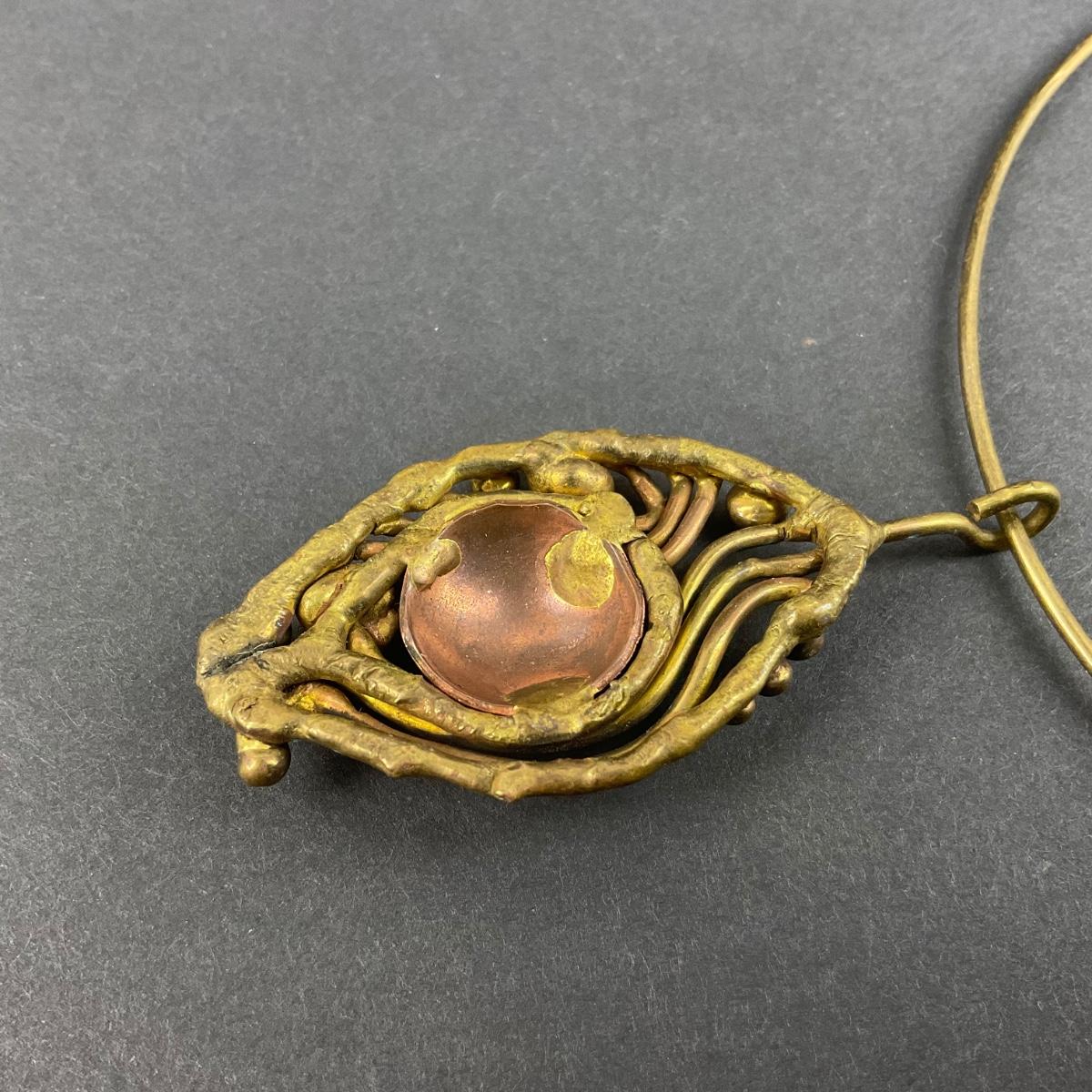 One unmarked believed to be copper unique necklace and earrings set. Please see photos for details and condition. Any condition statement is given as a courtesy to a client, is an opinion, and should not be treated as a statement of fact. Reference to condition written, oral or within a condition report shall not be regarded as a full account of condition and may not include all defects, alterations, or restorations. Absence of a condition report does not imply a lot is flawless or lacking imperfections or damage. Katherine’s Auction & Appraisal Service shall have no responsibility for any error or omission. Returns shall not be accepted on the basis of condition. ::: Shipping is available on this lot. If you require shipping you must let us know at the close of the auction. We will coordinate with you after the item has been won. Shipping fees will include insurance up to or exceeding the value of all items being mailed. If you have any questions regarding this lot please contact the auctioneer either via this website, by direct email or by phone. PICK UP TIMES and other important information can be found in the TERMS and DESCRIPTION of the auction. Please take a look for pertinent information. Thanks!