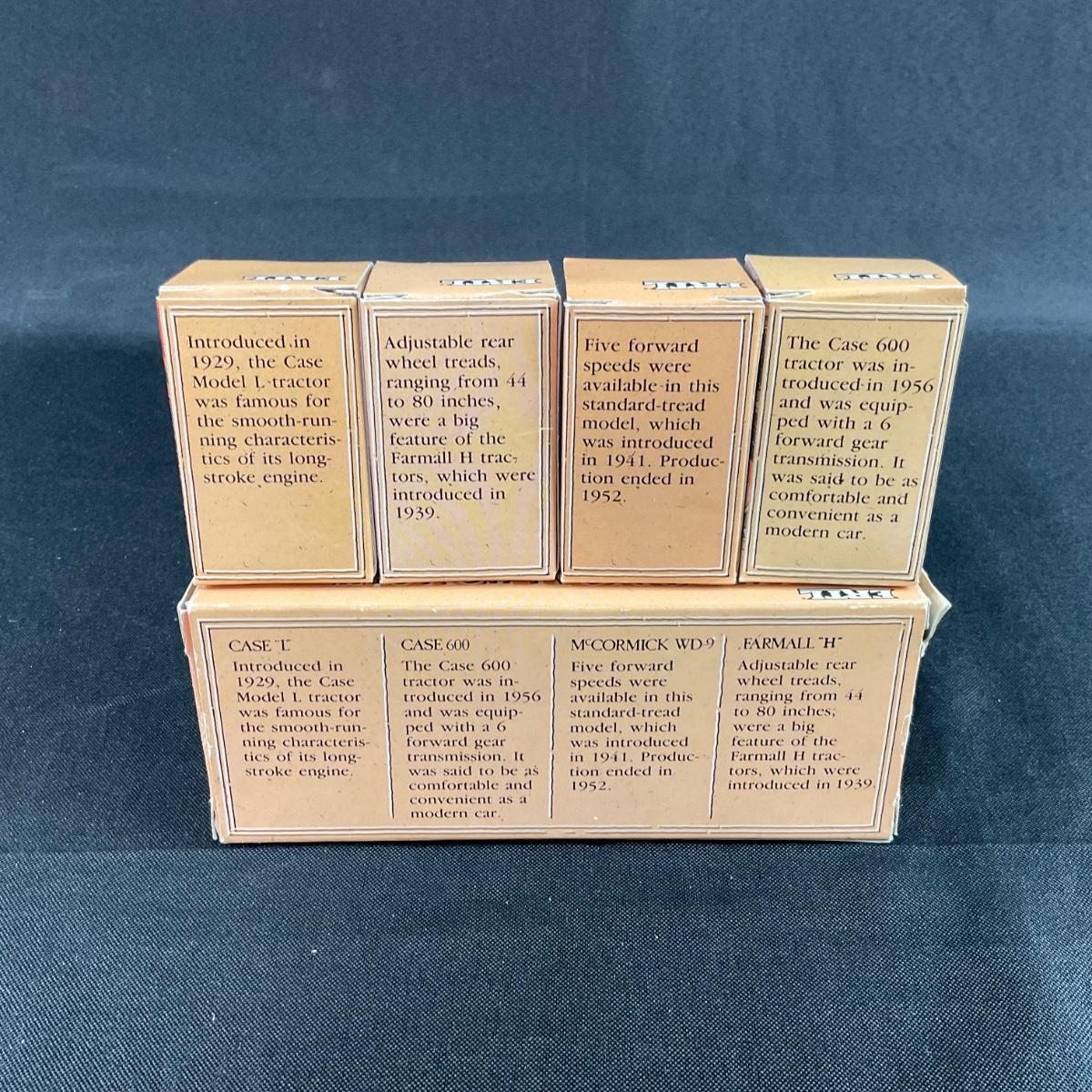 One set of Ertl 1/64 scale new in the boxes historical toy tractor set models included in this set are Case 600, McCormick WD-9, Farmall H, and Case L. Please see photos for details and condition. Any condition statement is given as a courtesy to a client, is an opinion, and should not be treated as a statement of fact. Reference to condition written, oral or within a condition report shall not be regarded as a full account of condition and may not include all defects, alterations, or restorations. Absence of a condition report does not imply a lot is flawless or lacking imperfections or damage. Katherine’s Auction & Appraisal Service shall have no responsibility for any error or omission. Returns shall not be accepted on the basis of condition. ::: Shipping is available on this lot. If you require shipping you must let us know at the close of the auction. We will coordinate with you after the item has been won. Shipping fees will include insurance up to or exceeding the value of all items being mailed. If you have any questions regarding this lot please contact the auctioneer either via this website, by direct email or by phone. PICK UP TIMES and other important information can be found in the TERMS and DESCRIPTION of the auction. Please take a look for pertinent information. Thanks!