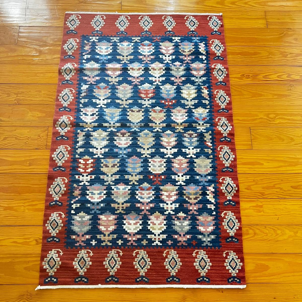 134 Hand Woven Mongol Kilim Geometric Floral Wool Rug
