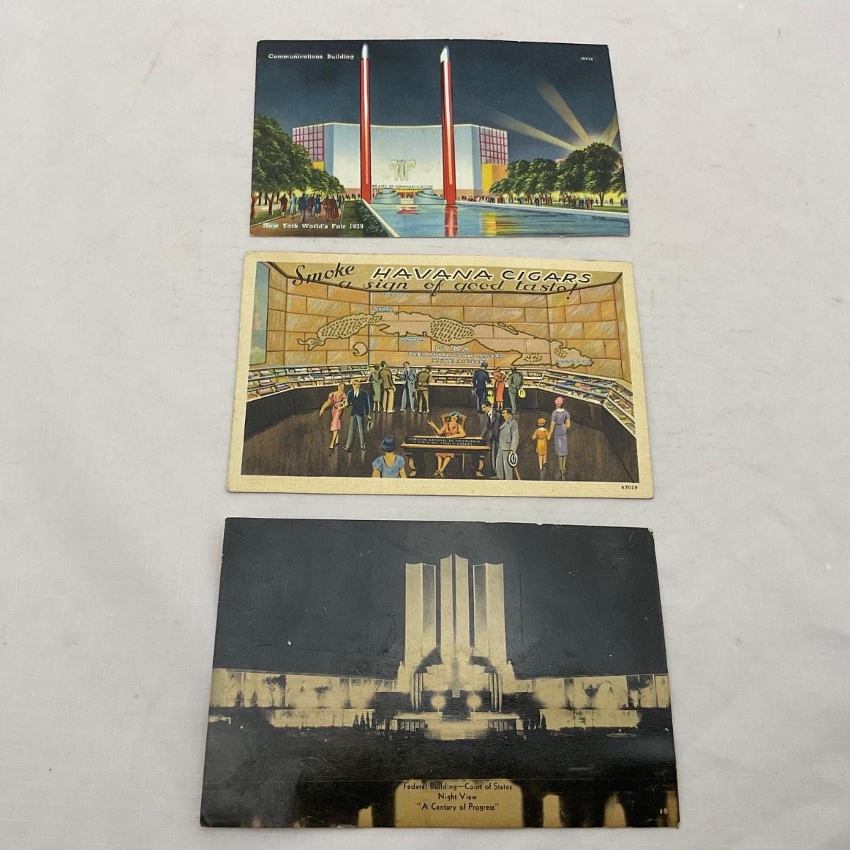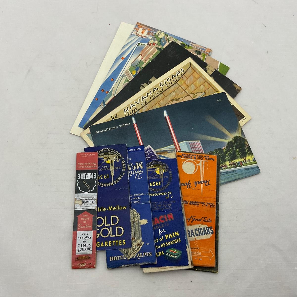 Worlds fair collectibles which includes postcards, and matchbook covers. Please see photos for details and condition. ::: Shipping is available on this lot. If you require shipping you must let us know at the close of the auction. We will coordinate with you after the item has been won. Shipping fees will include insurance up to or exceeding the value of all items being mailed. If you have any questions regarding this lot please contact the auctioneer either via this website, by direct email or by phone. PICK UP TIMES and other important information can be found in the TERMS and DESCRIPTION of the auction. Please take a look for pertinent information. Thanks!