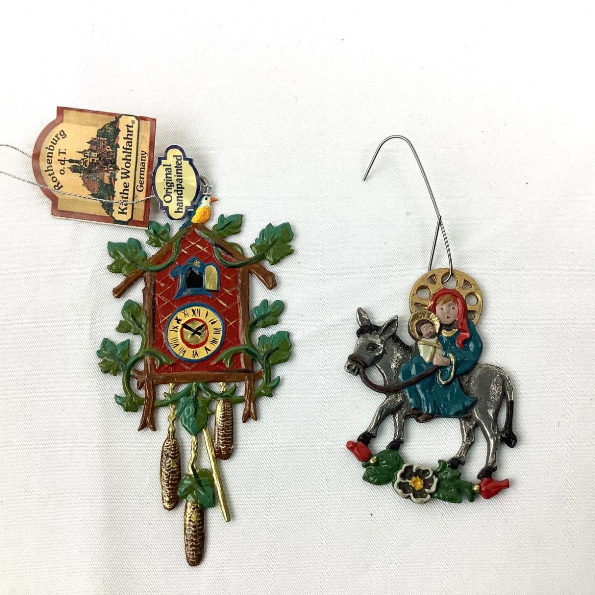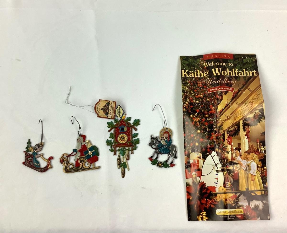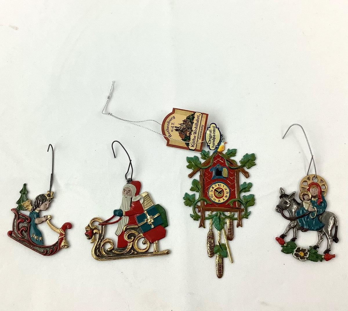The ornaments are made in Germany, designed by Kathe Wohlfahrt, there are 4 ornaments and they measure 2.5" - 3" tall.