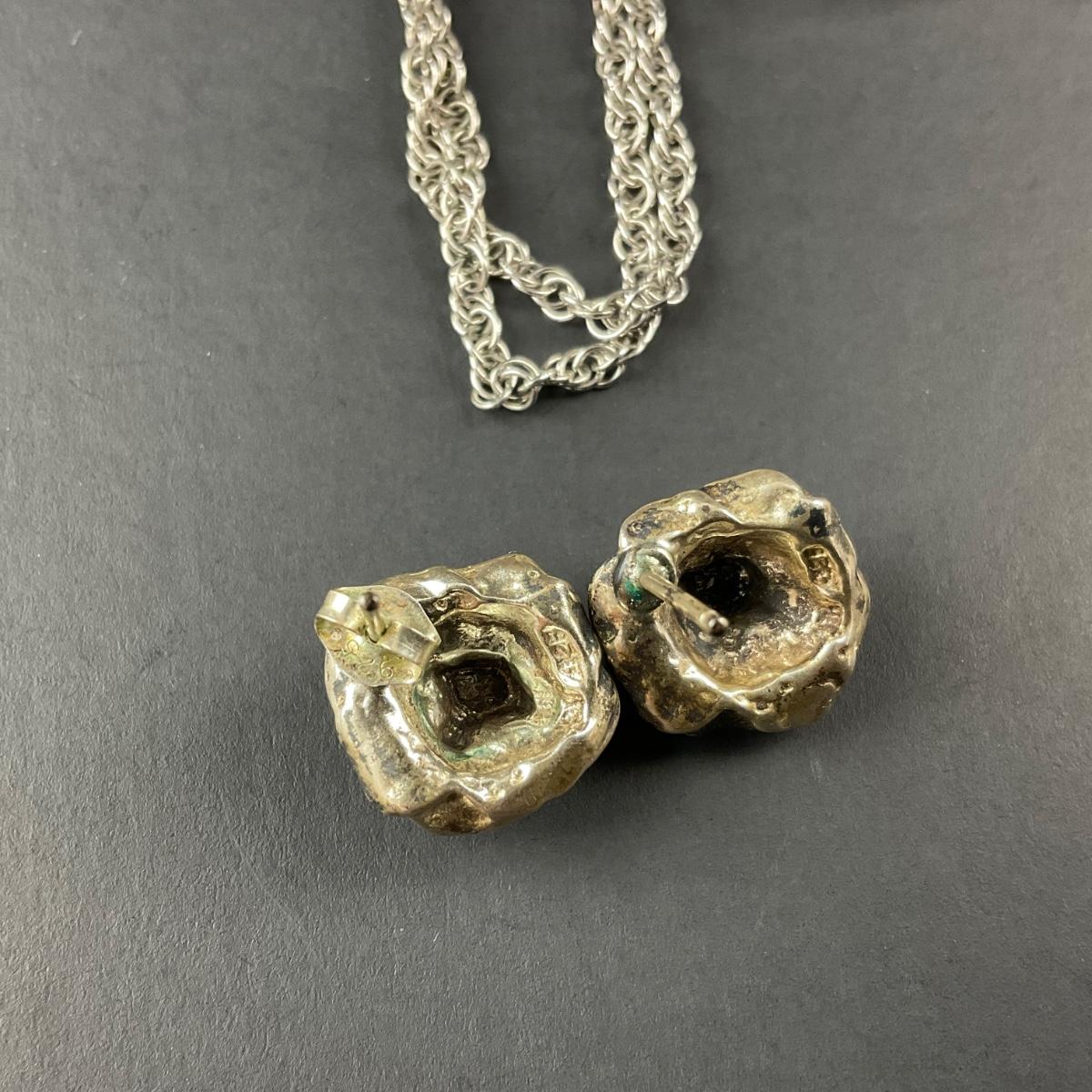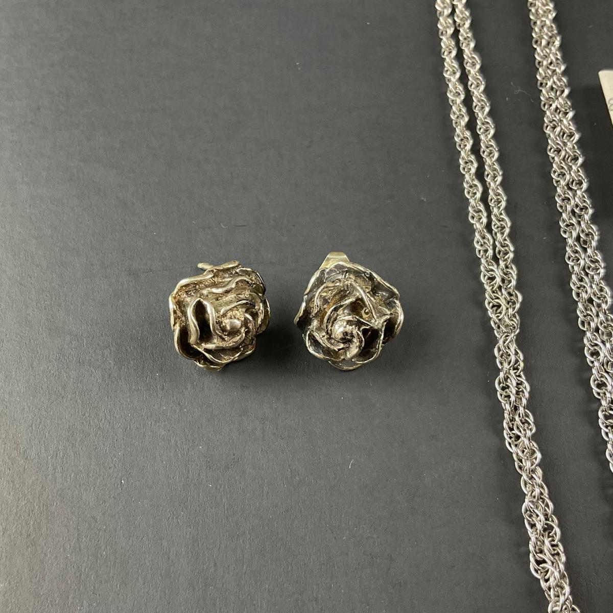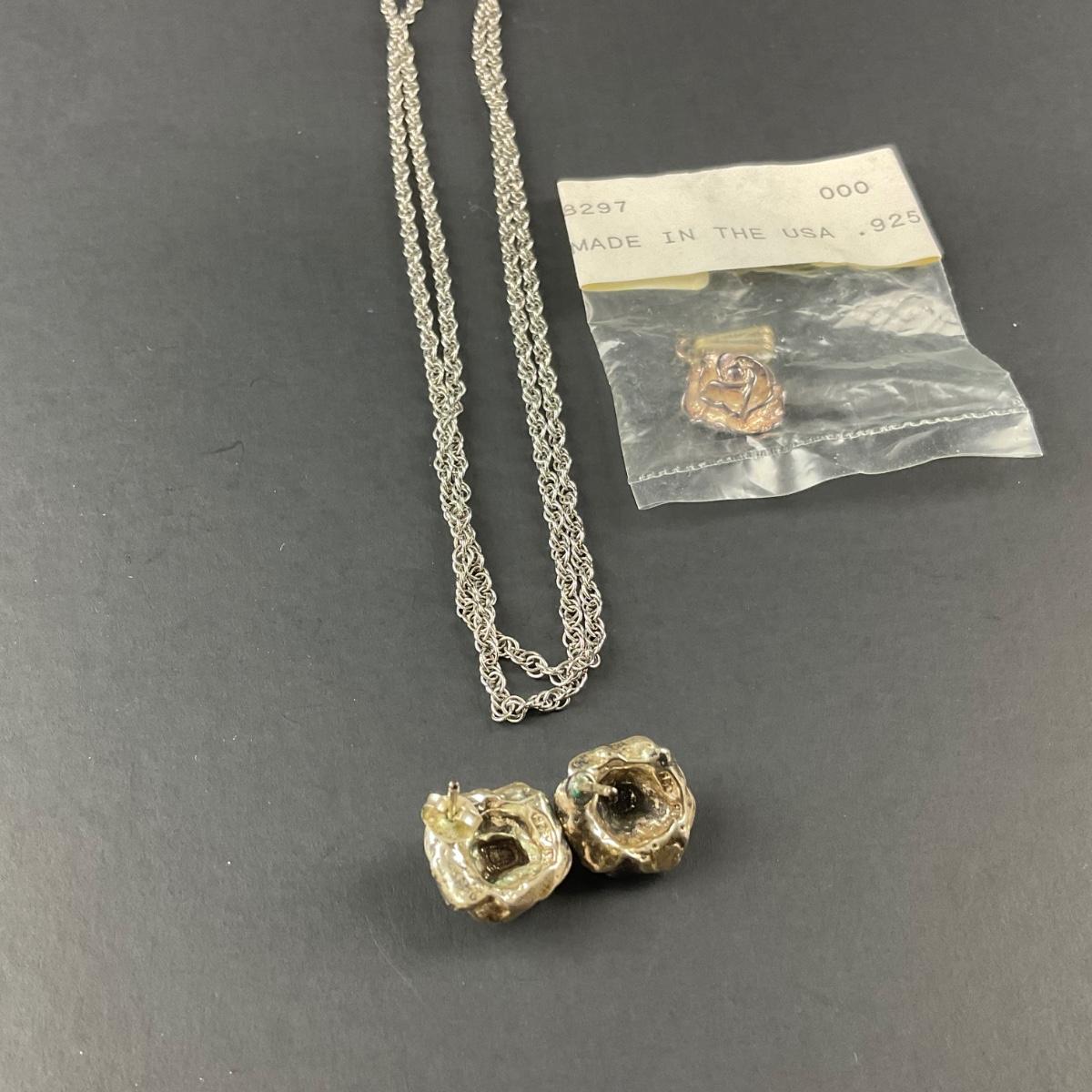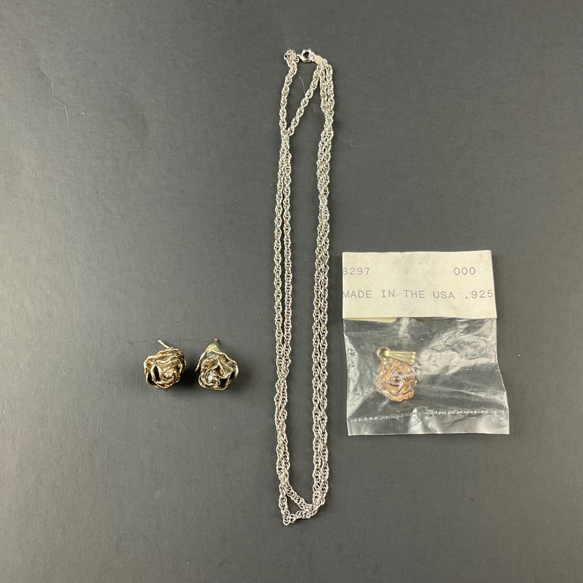 -134- SILVER | Sterling Silver Rose Earrings & Pendant | Marked